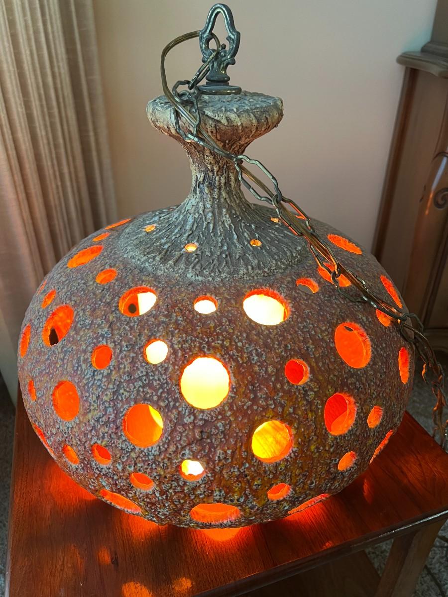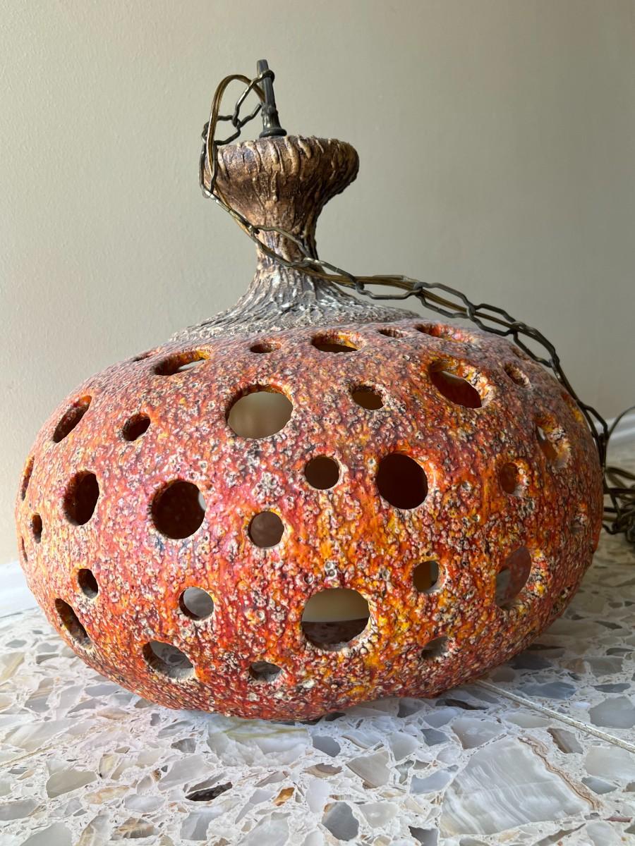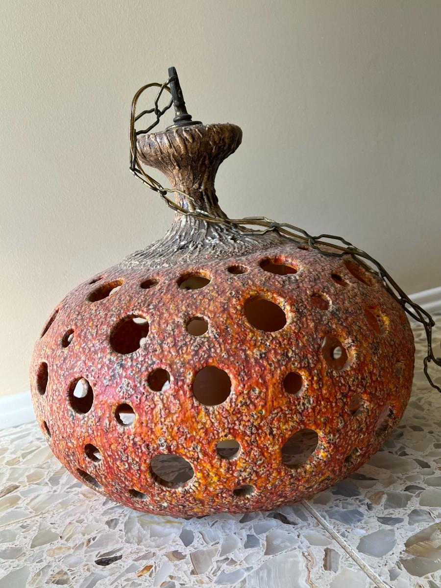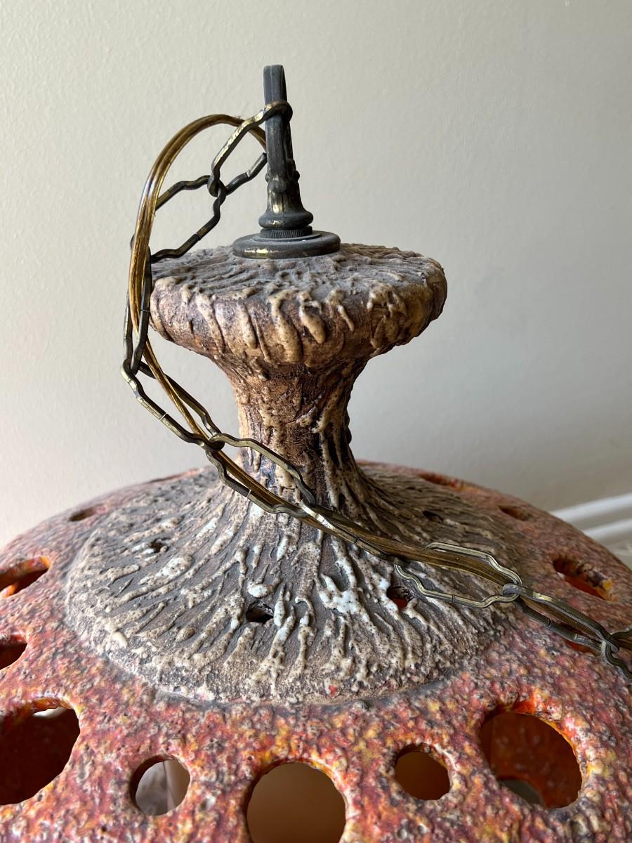 Vintage Ceramic Art Orange Stemmed Textured Design Swag Hanging Chain Lamp