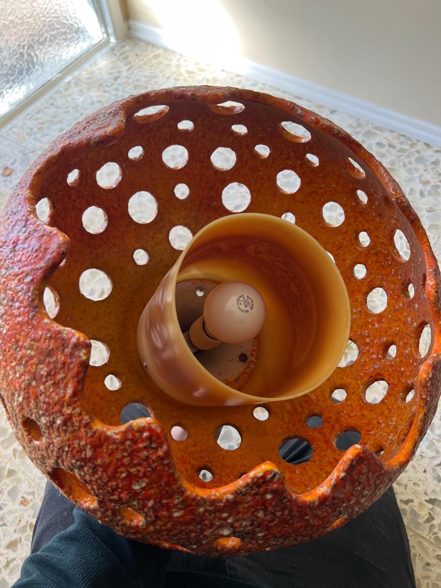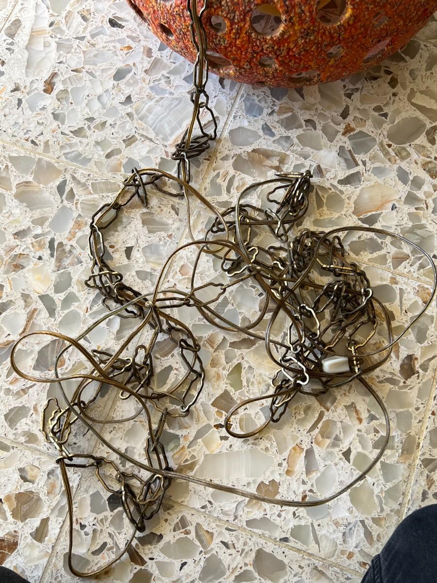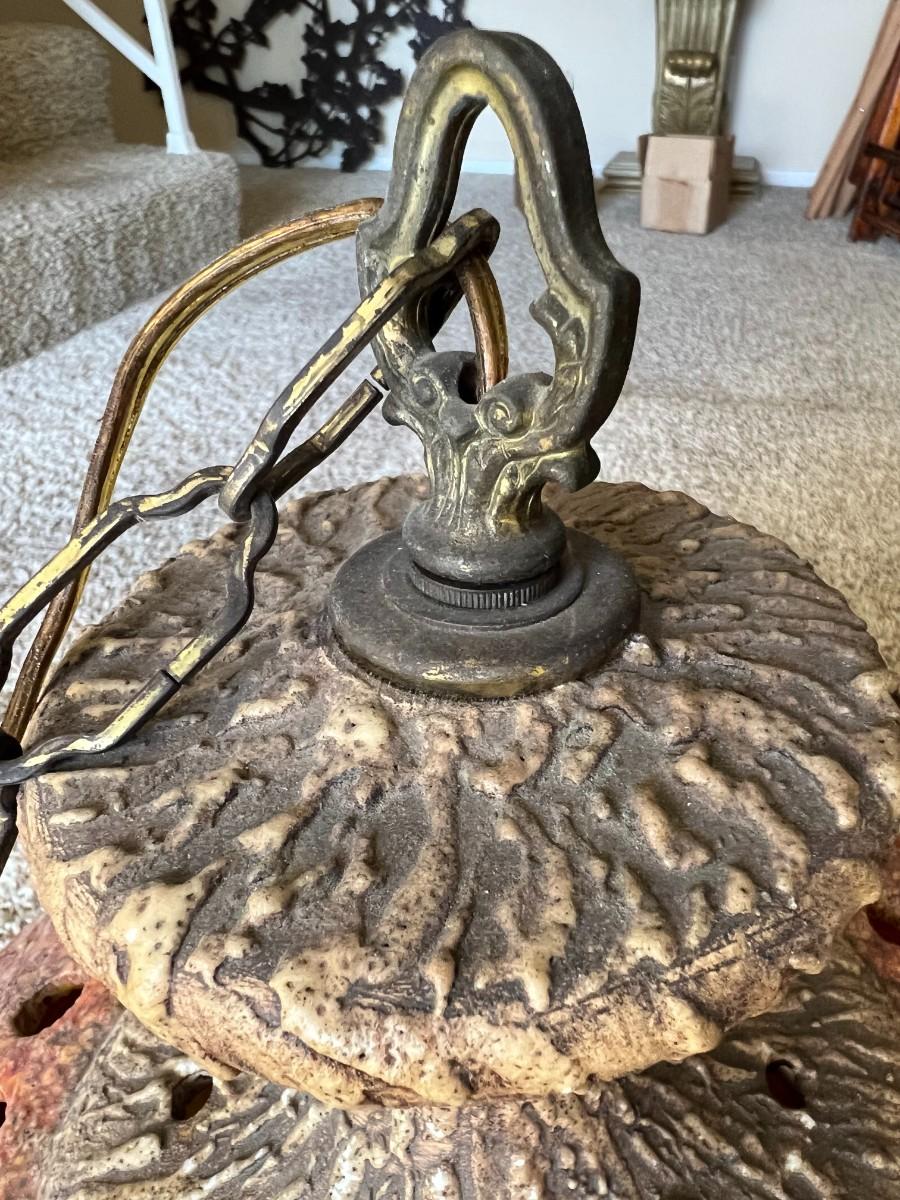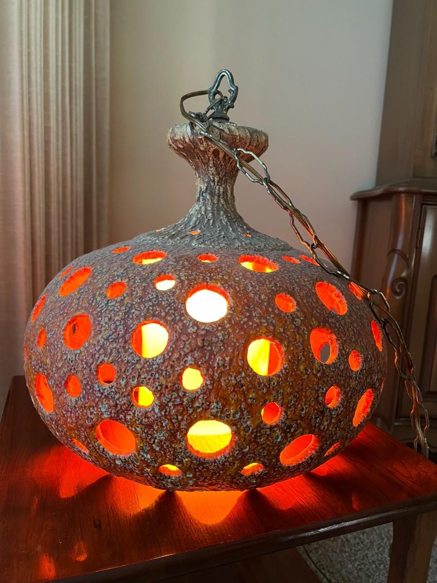 Vintage Ceramic Art Orange Stemmed Textured Design Swag Hanging Chain Lamp