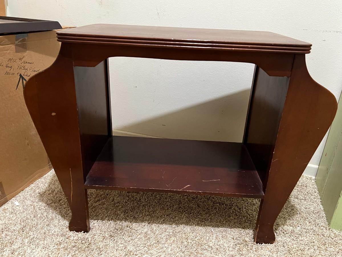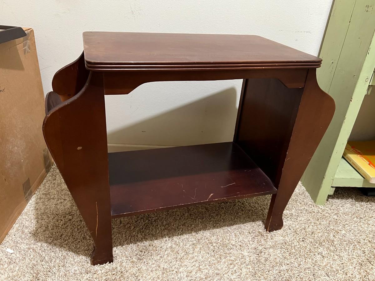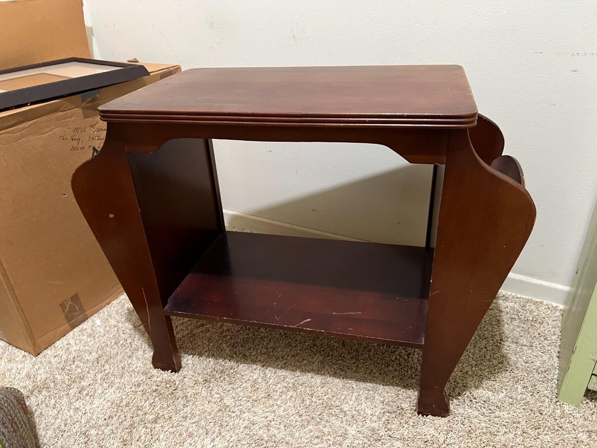 Vintage Wooden End Side Table Magazine Rack Cabinet