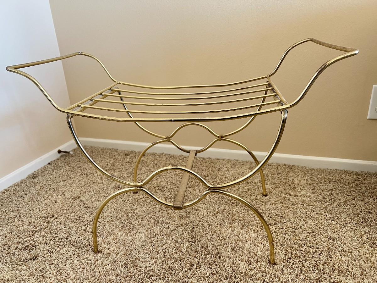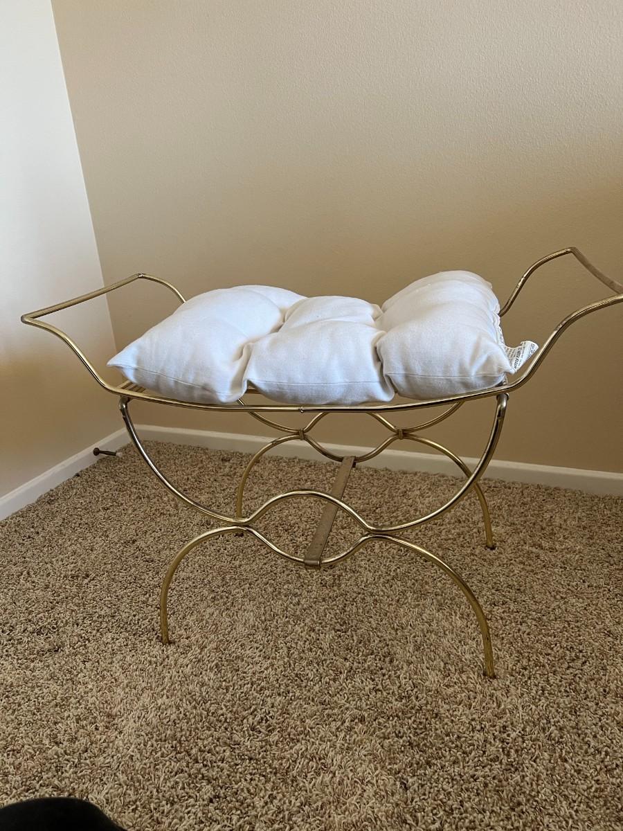 Retro Small Gold Metal French Style Vanity Bench