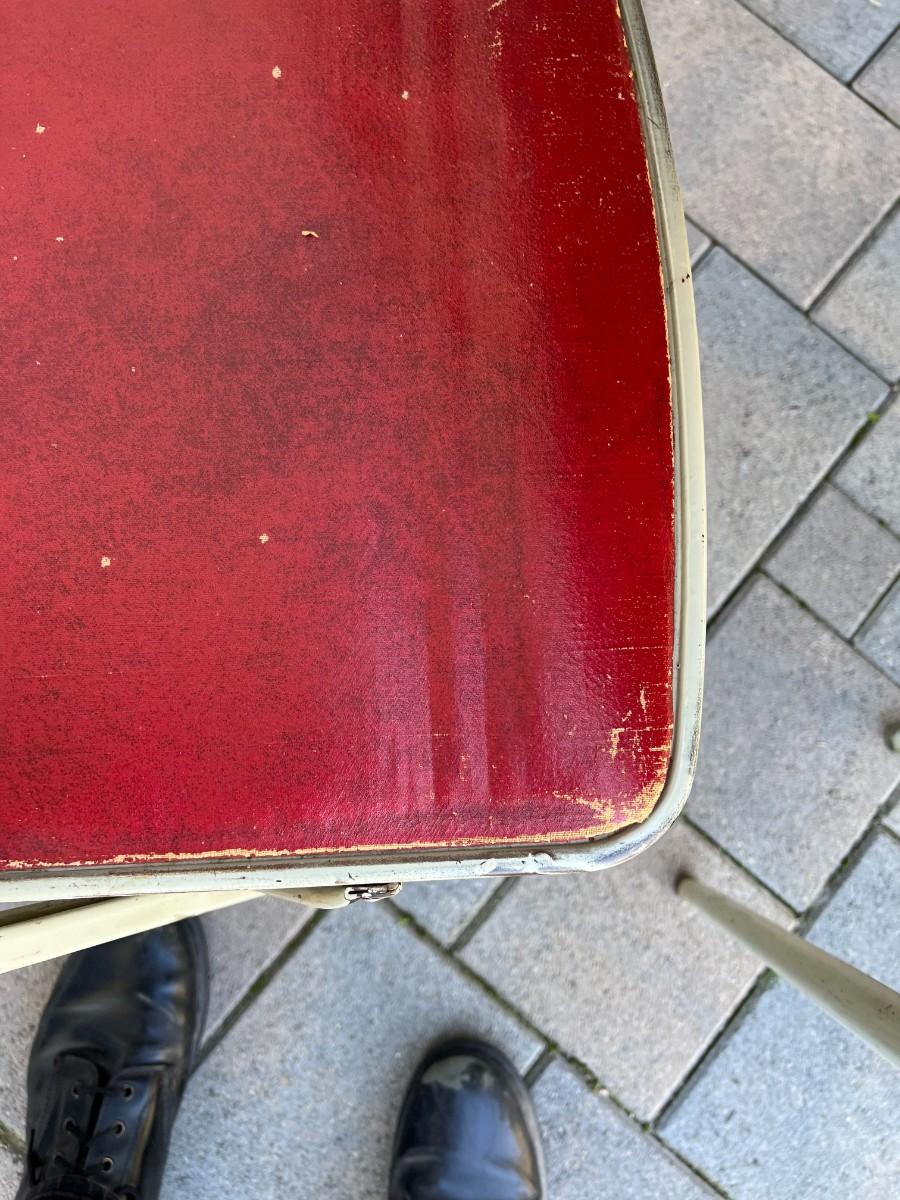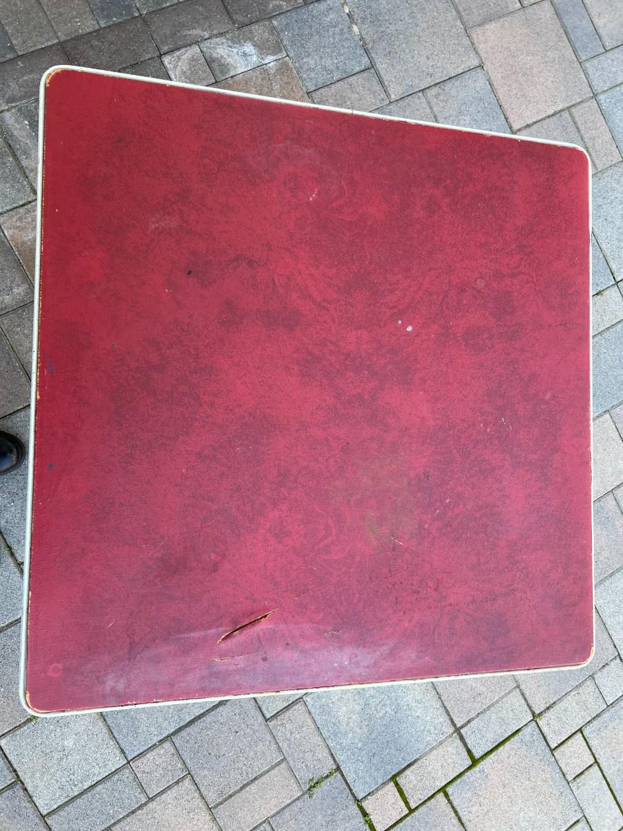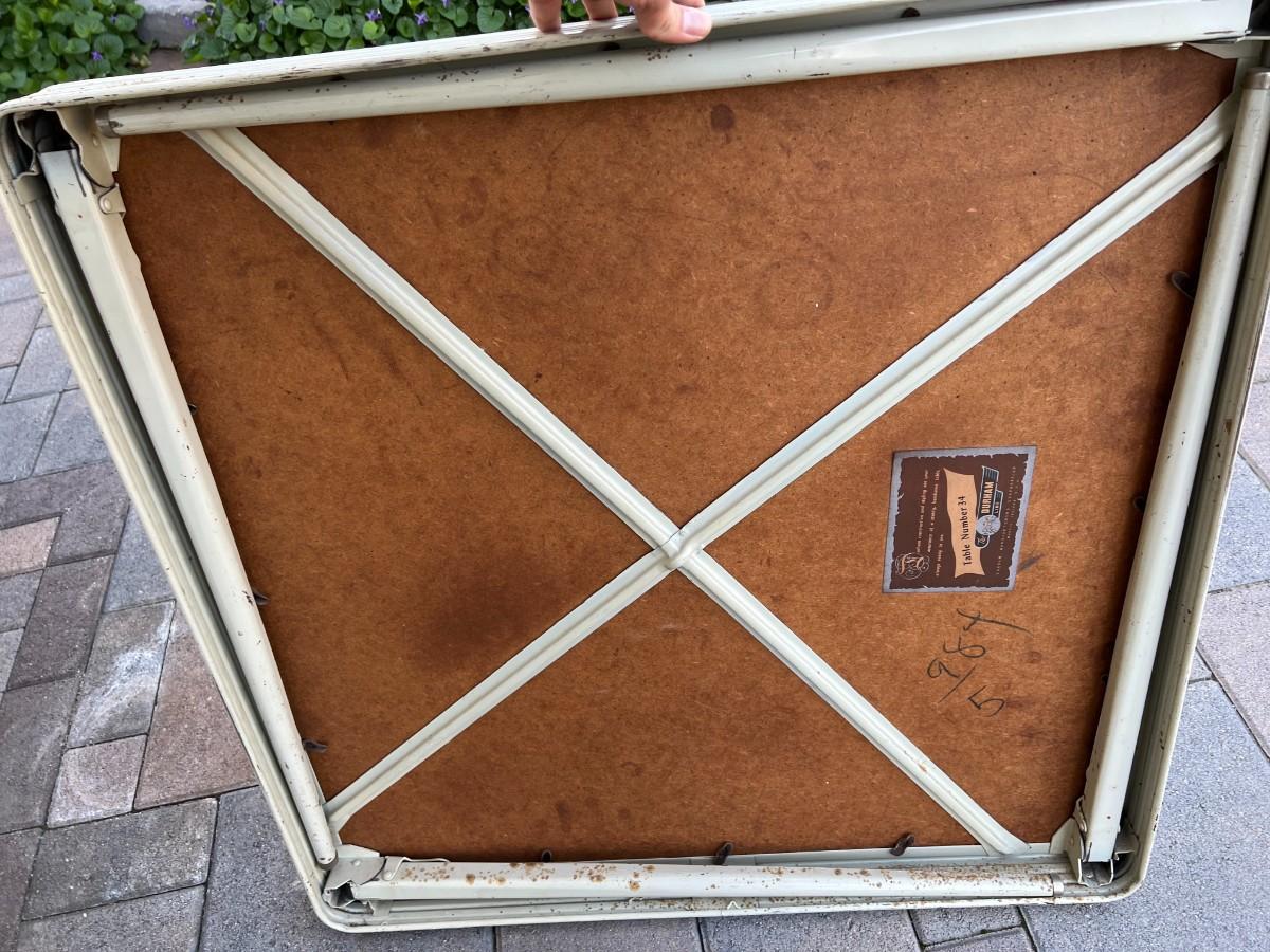 Vintage The Durham Line Table Number 34 Red Motif Metal Folding Card Table & Matching Chairs Set
