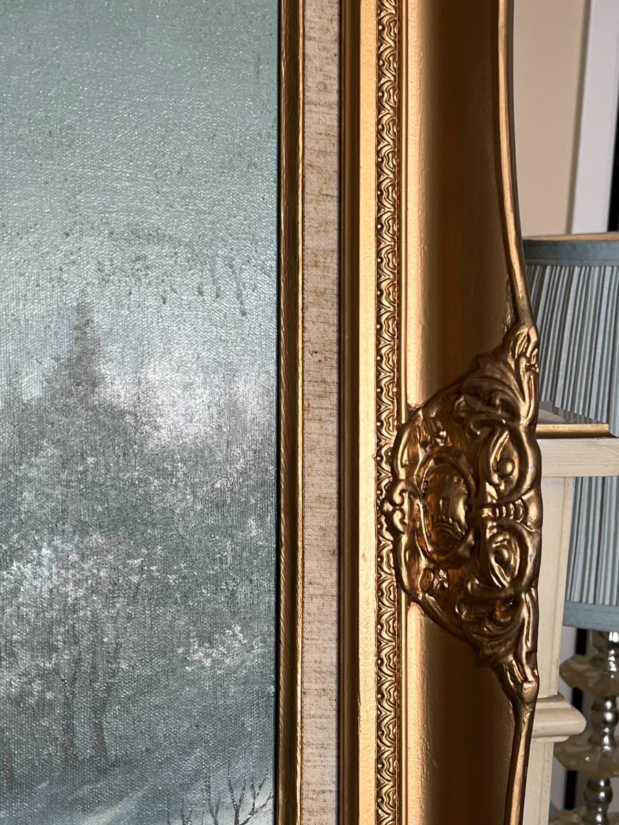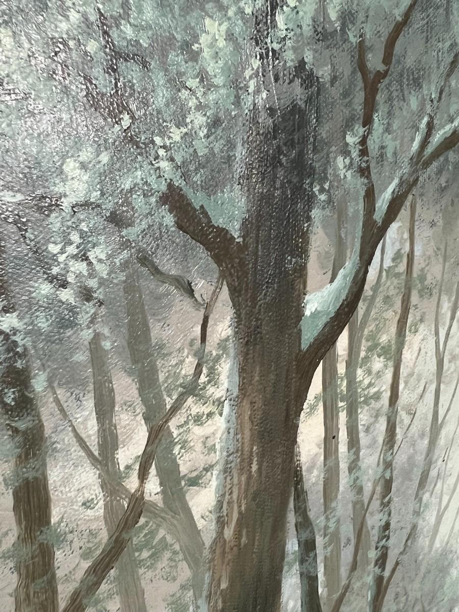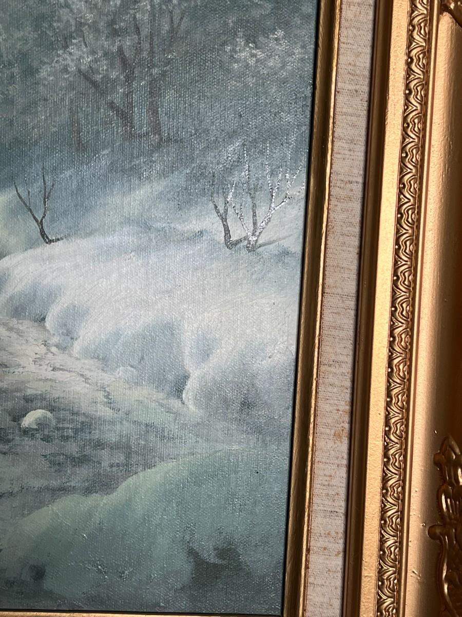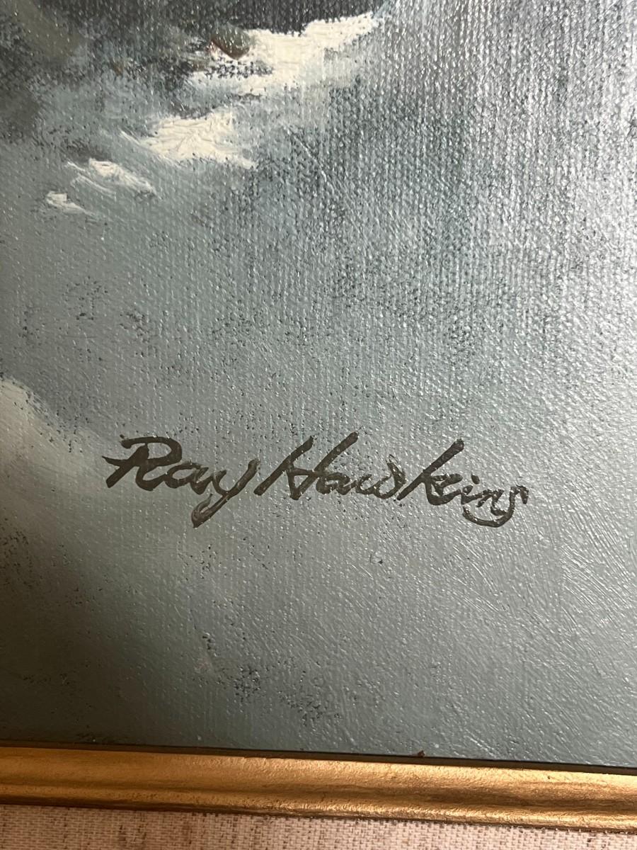Vintage Framed Original Oil Painting Desolate Winter Snow Forest Artist Ray Hawkins