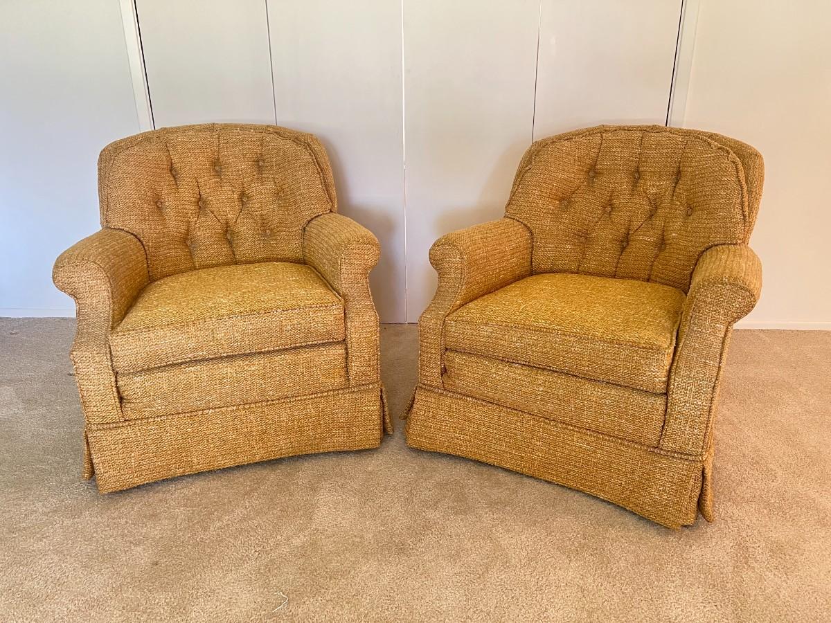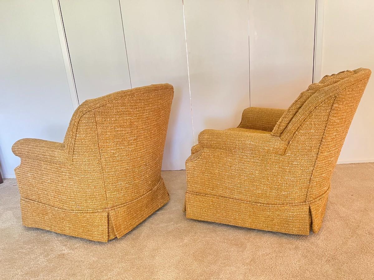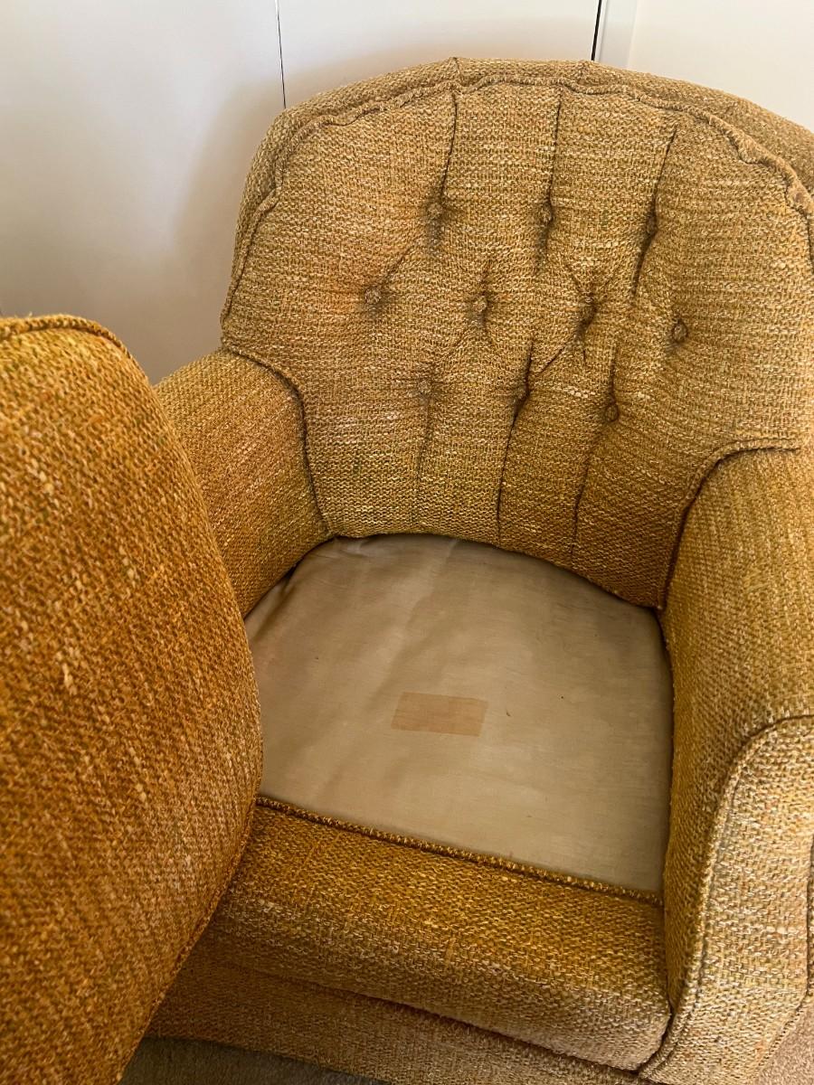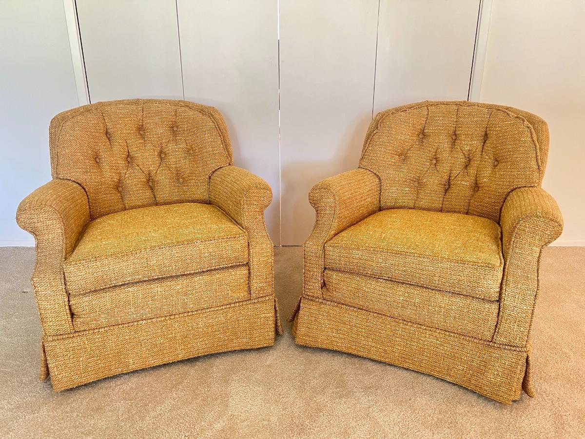 Pair of Vintage Funky Retro Gold Yellow Upholstered Club Chairs Armchairs - ARCADIA