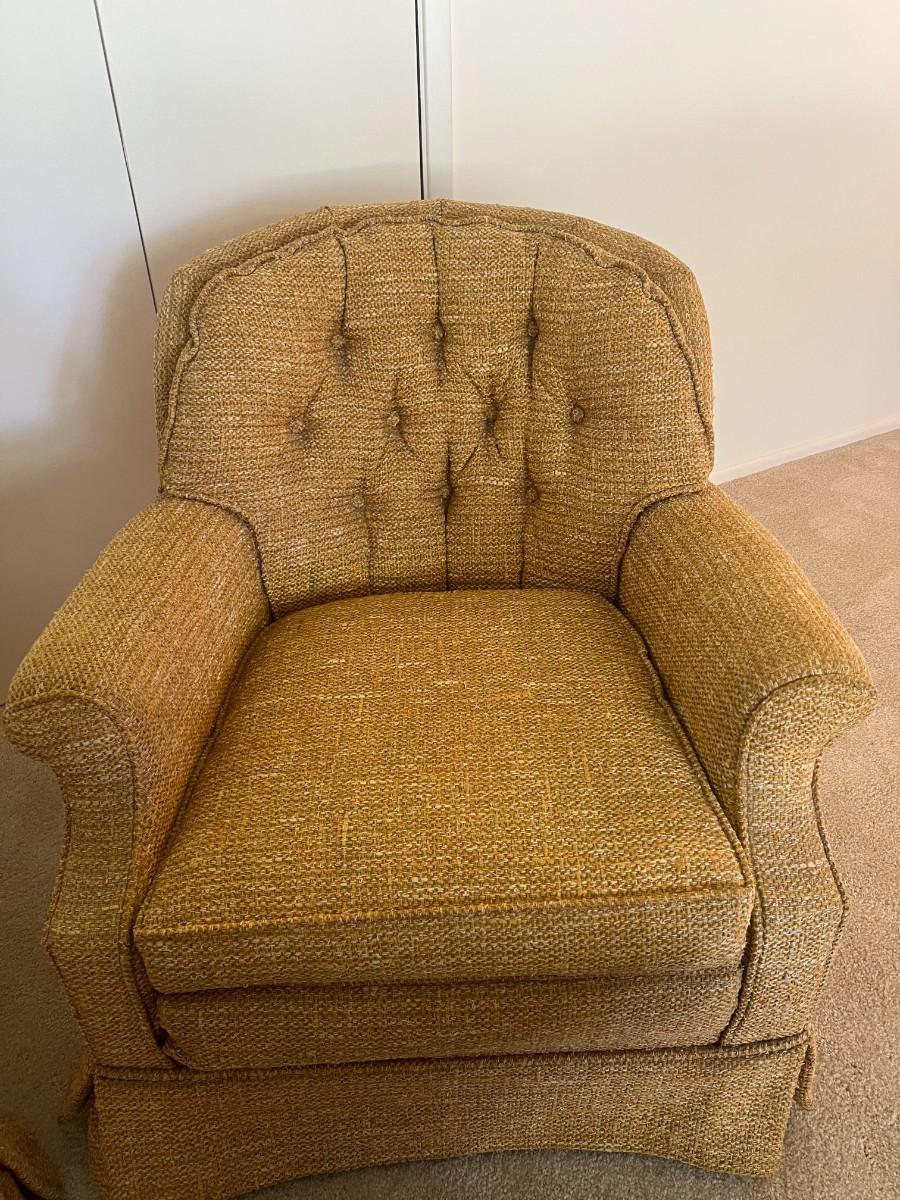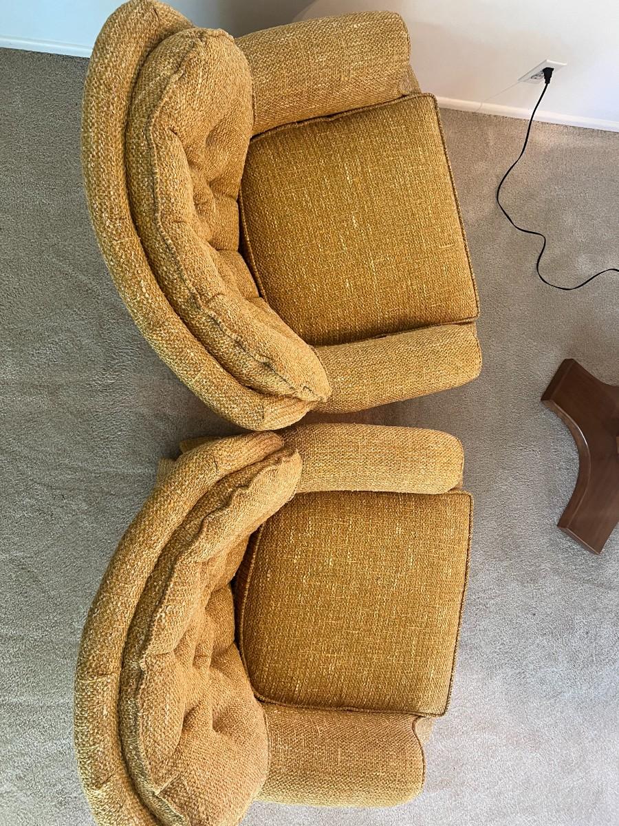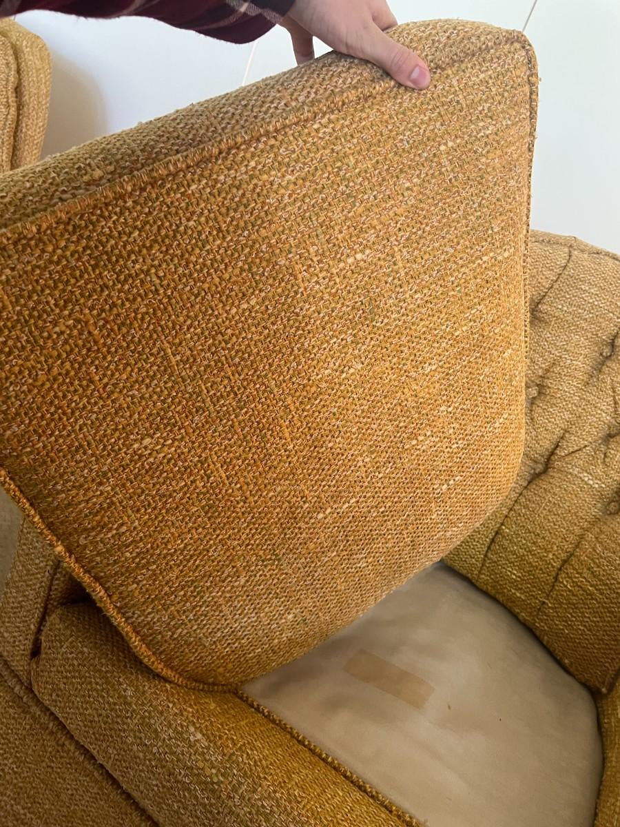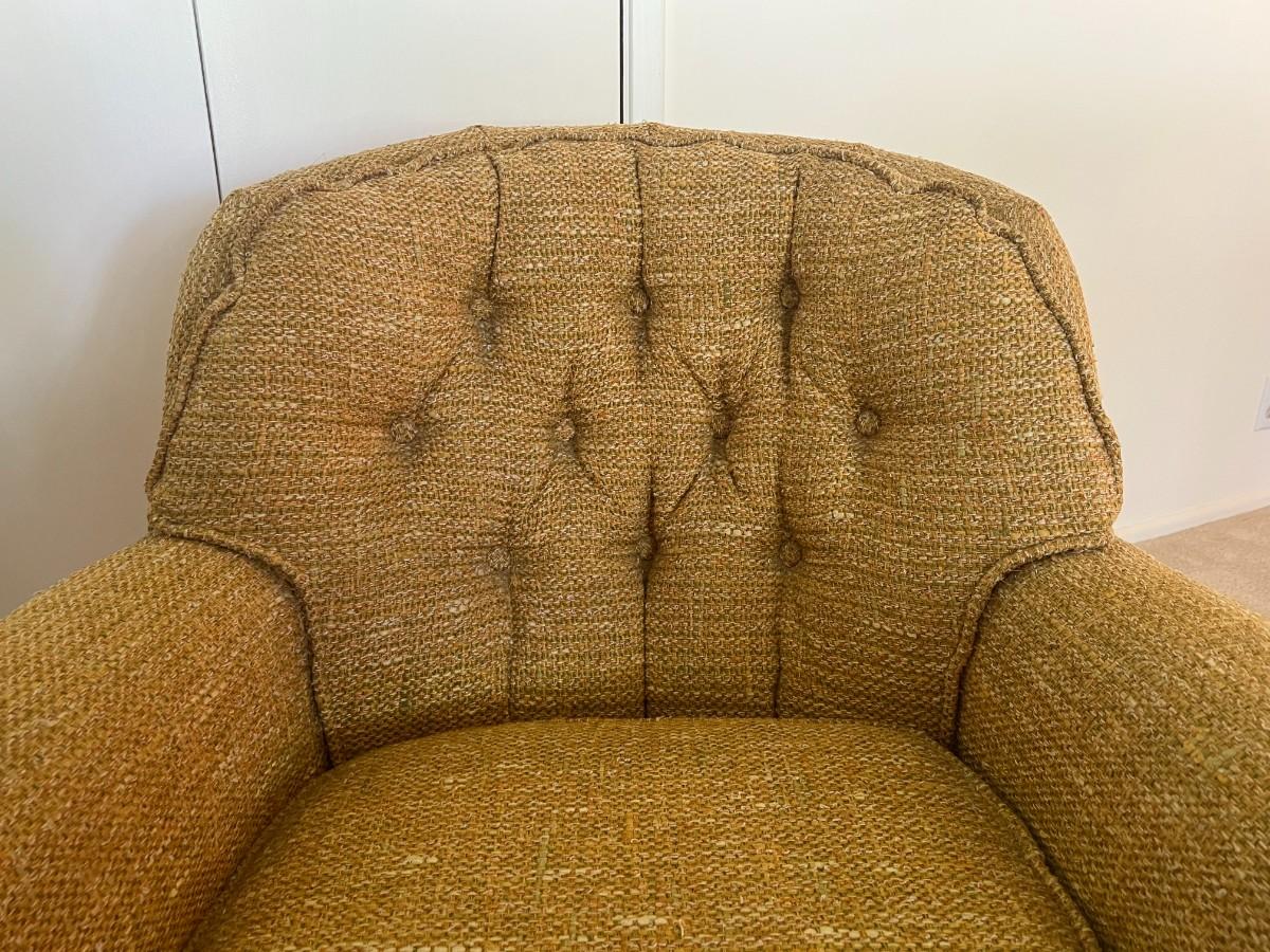 Pair of Vintage Funky Retro Gold Yellow Upholstered Club Chairs Armchairs - ARCADIA