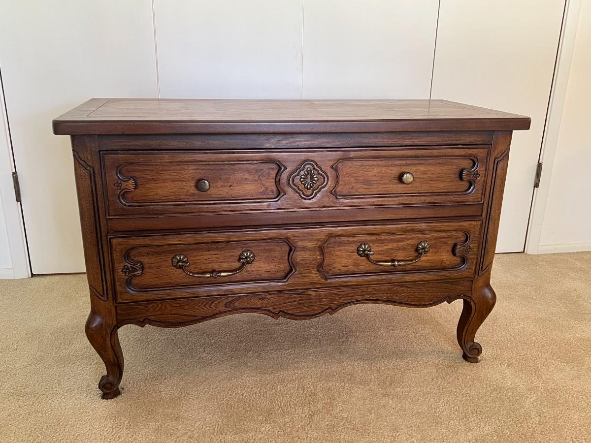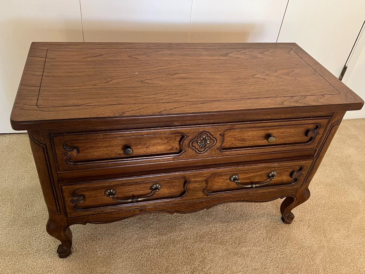 Vintage Mount Airy Mantle and Table Co. Oak Wood Two Drawer Small Dresser Buffet Sideboard Cabinet - ARCADIA