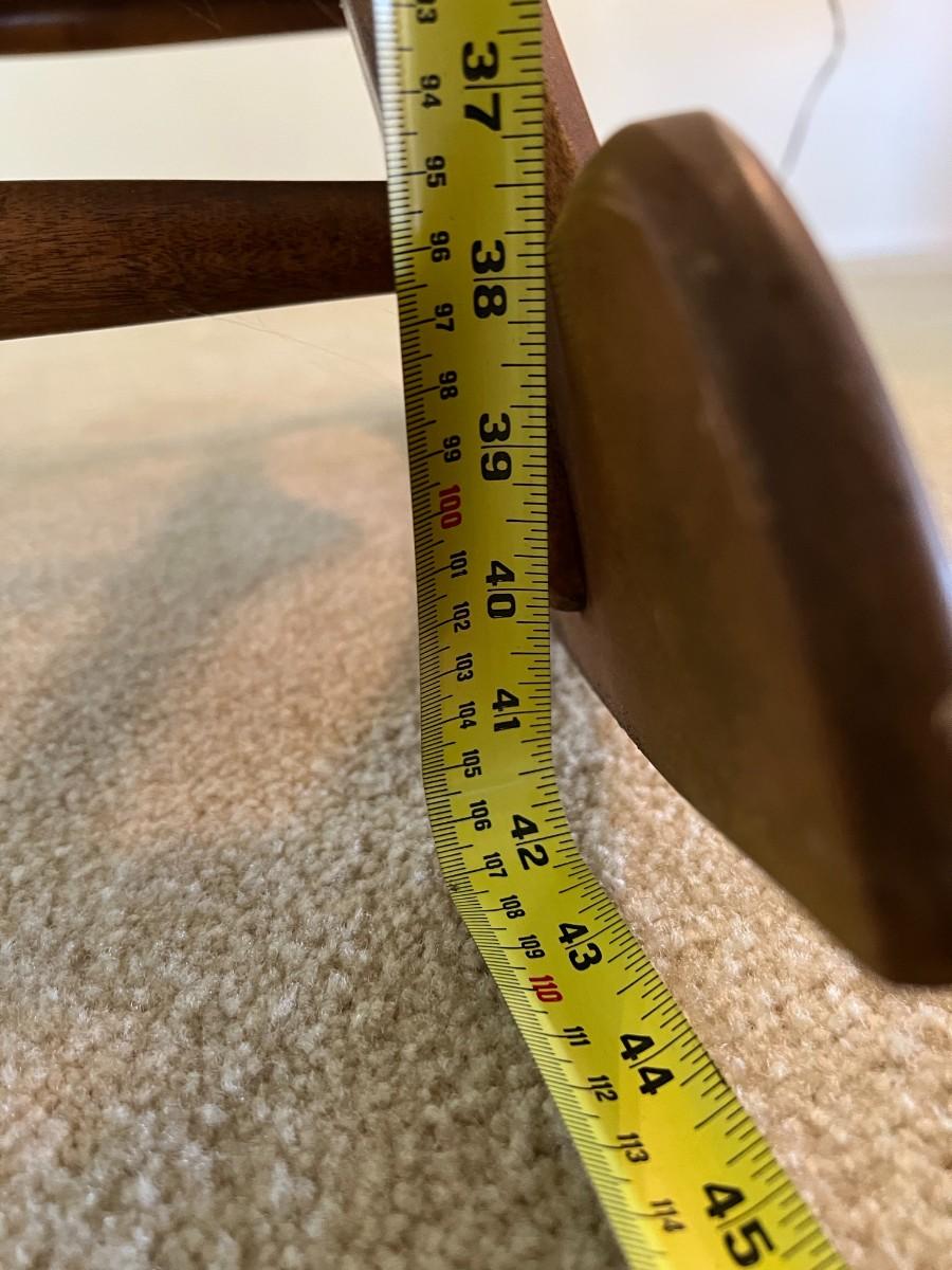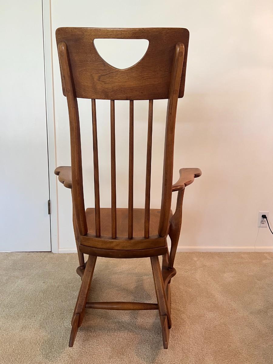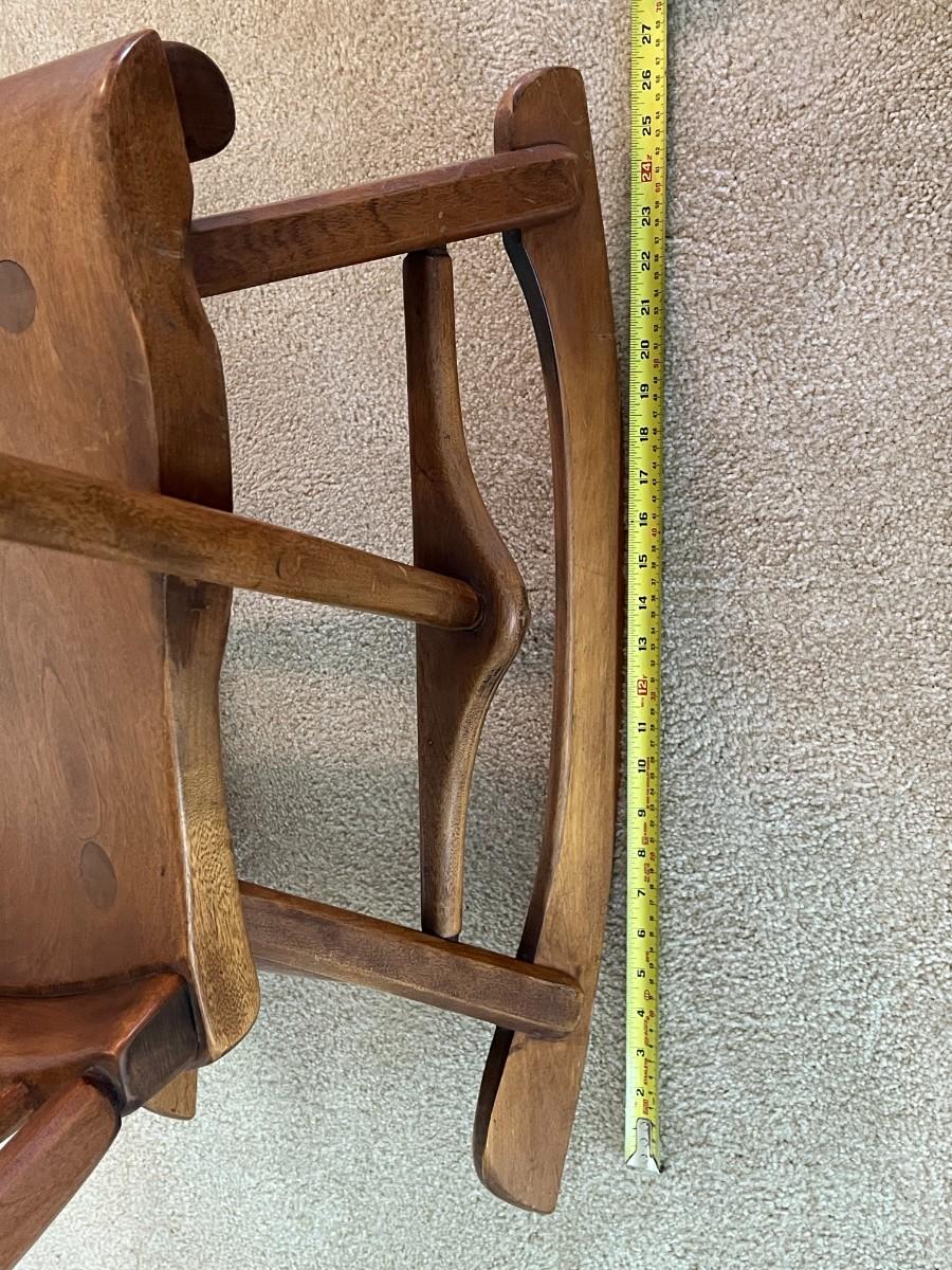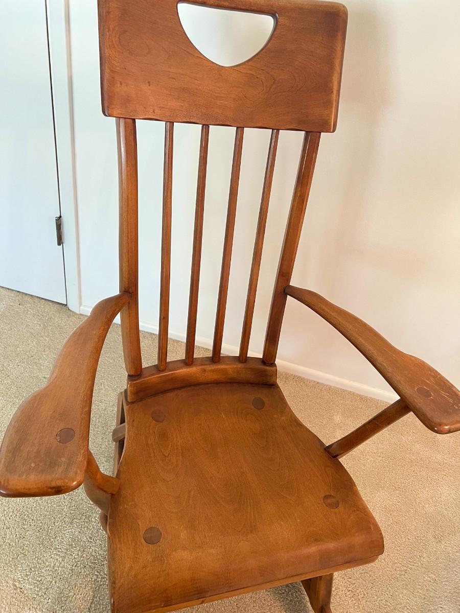 Vintage Tall Wood Rocking Chair. Label identifies the manufacturer as the Sikes Company of Buffalo NY. Overall height is 42", rockers measure 26" long. In very good, solid condition. *PICK UP IN ARCADIA SATURDAY MARCH 25TH BETWEEN 9am & 11am*