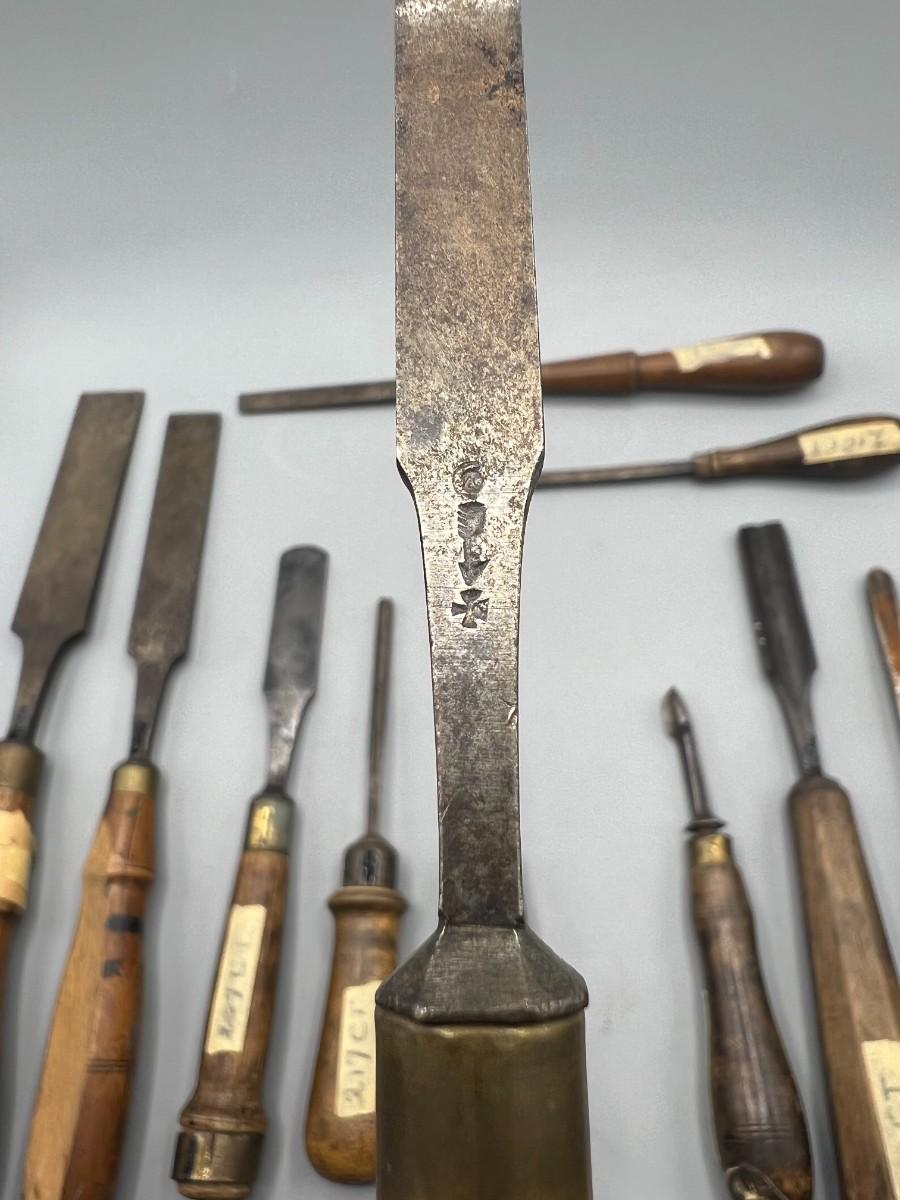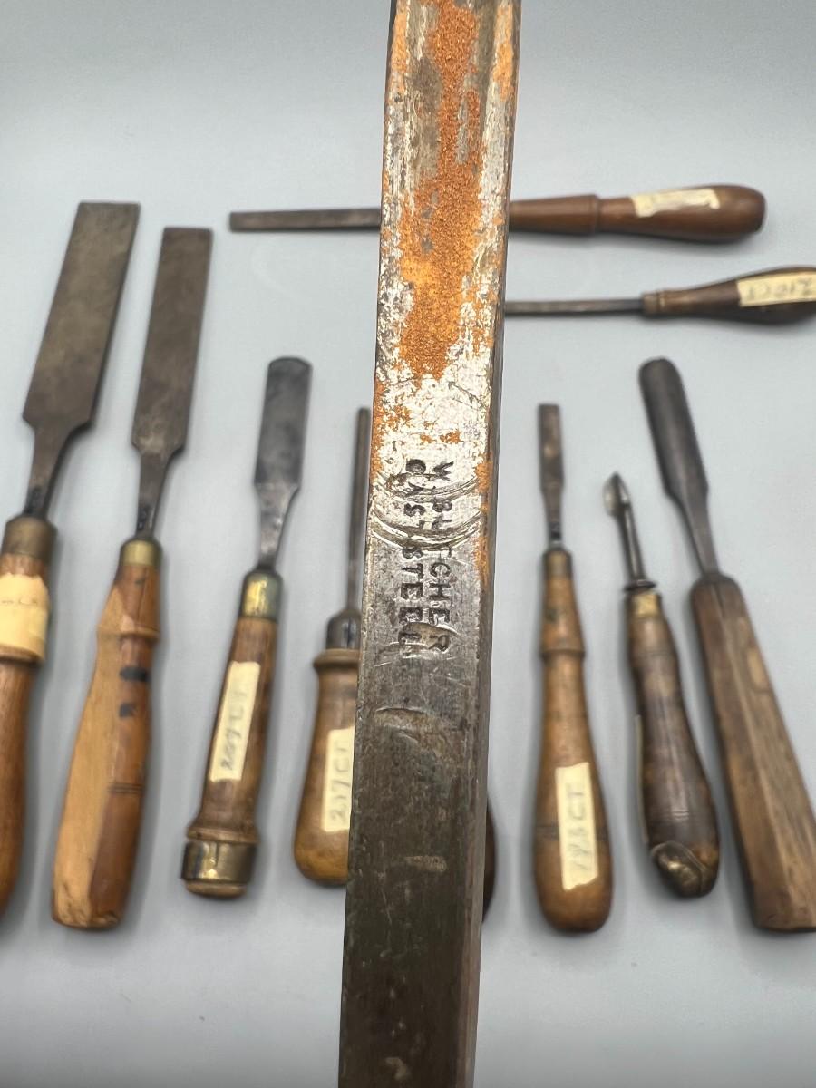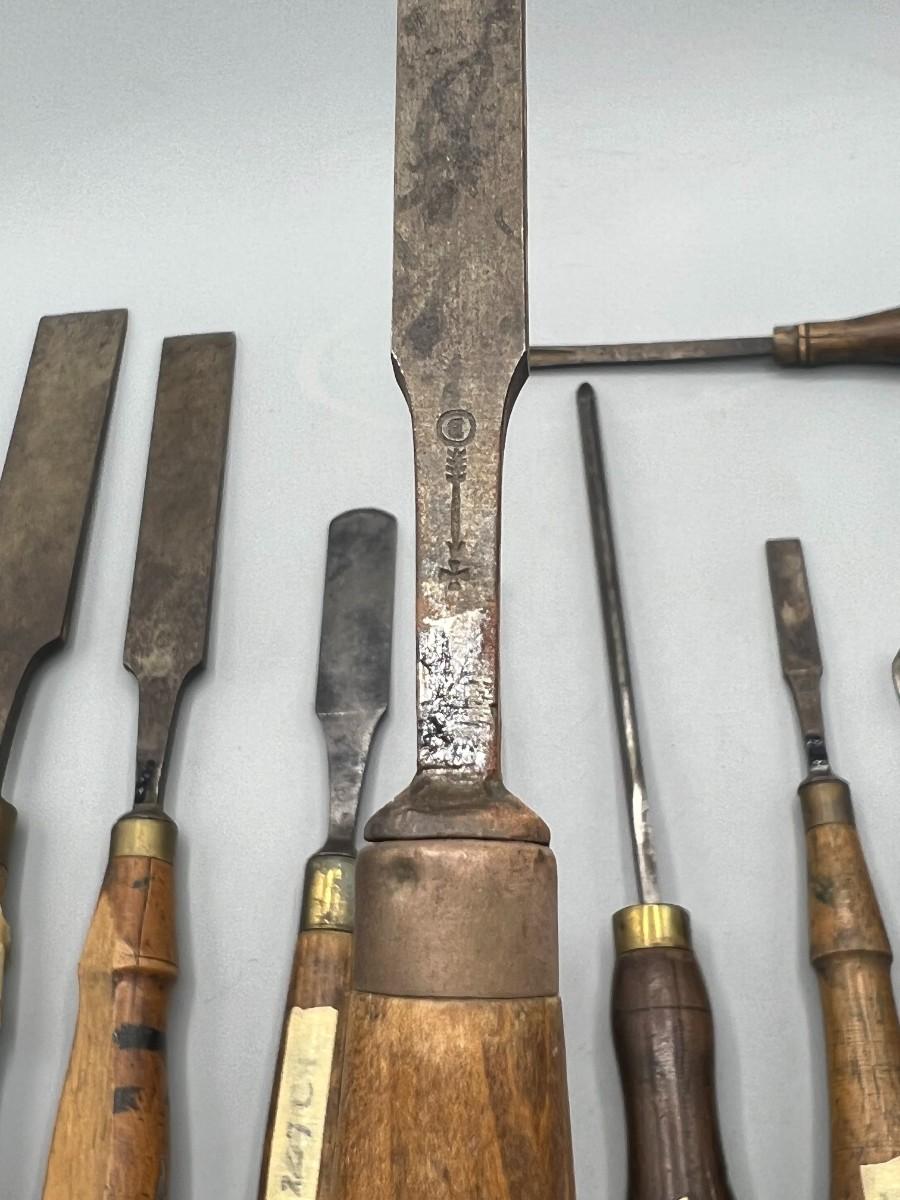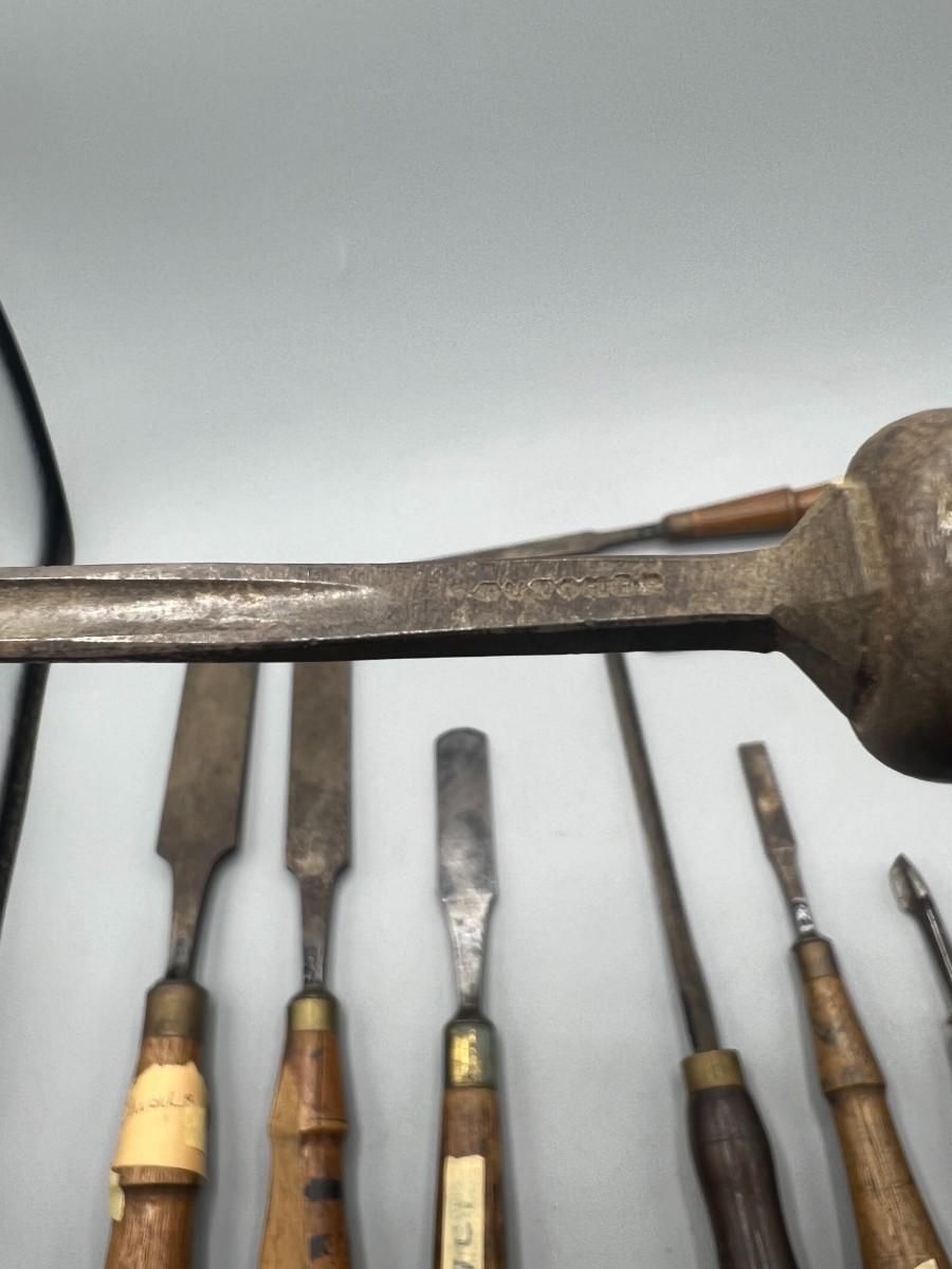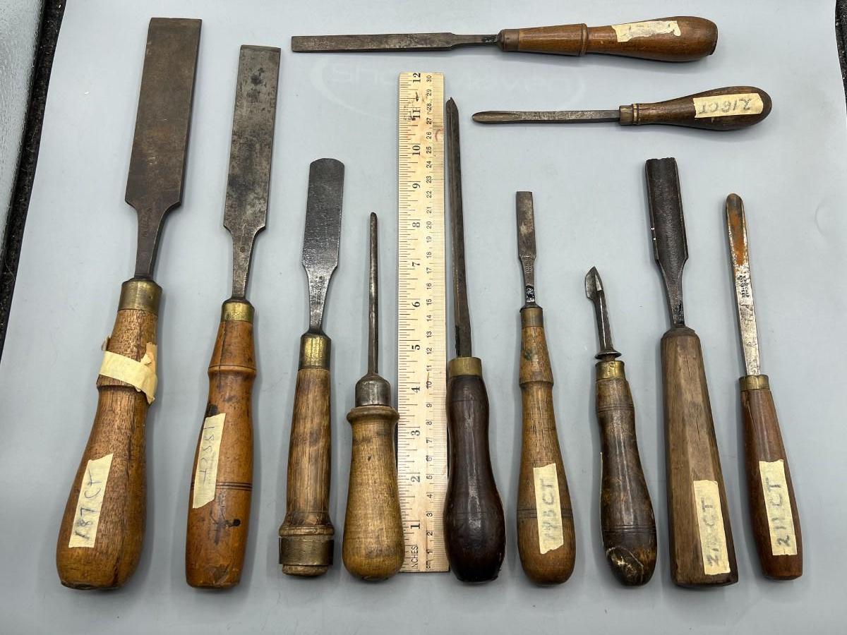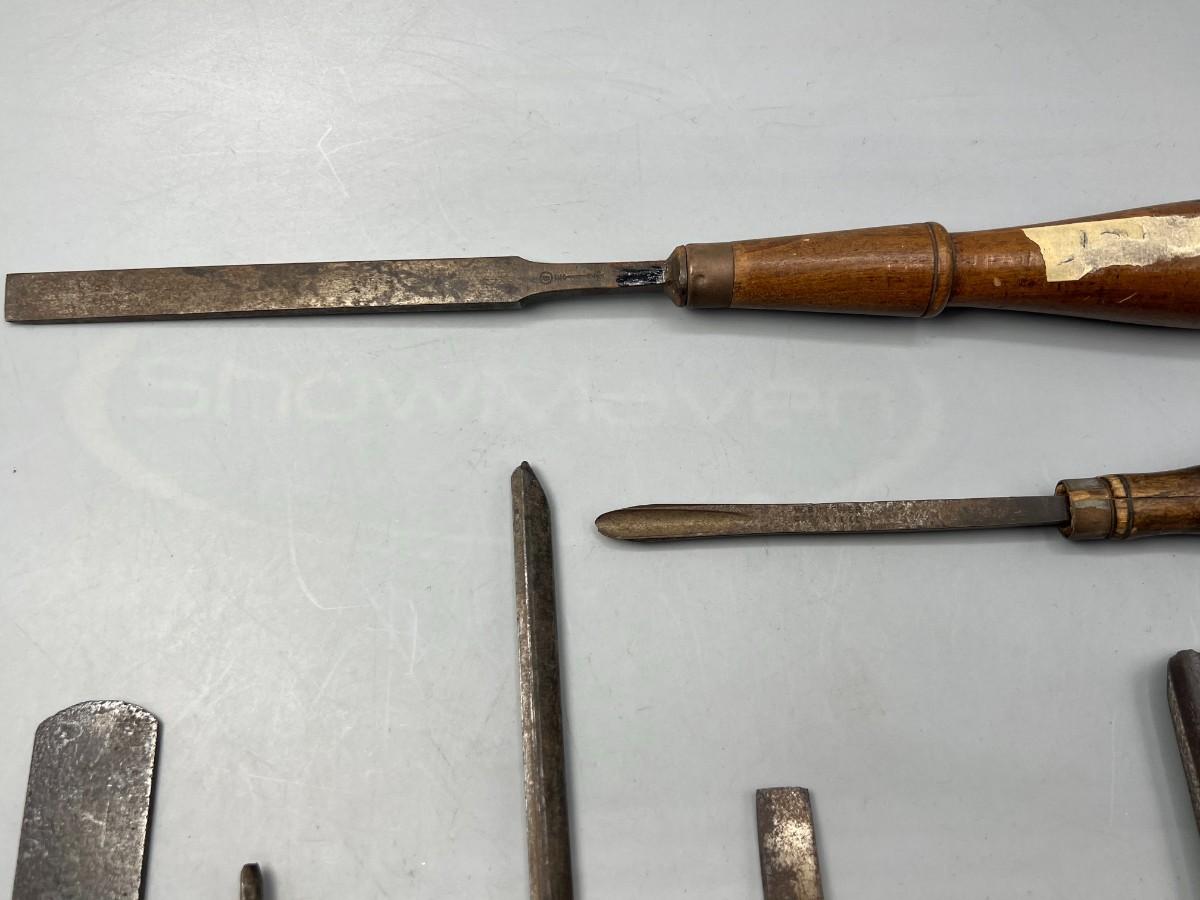 Antique 19th Century Lot of Cast Steel Carpenter Chisel Gouges Makers Mark Museum Pieces Tools
