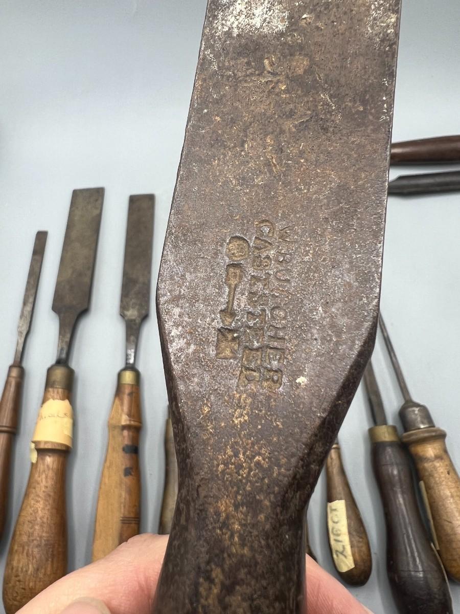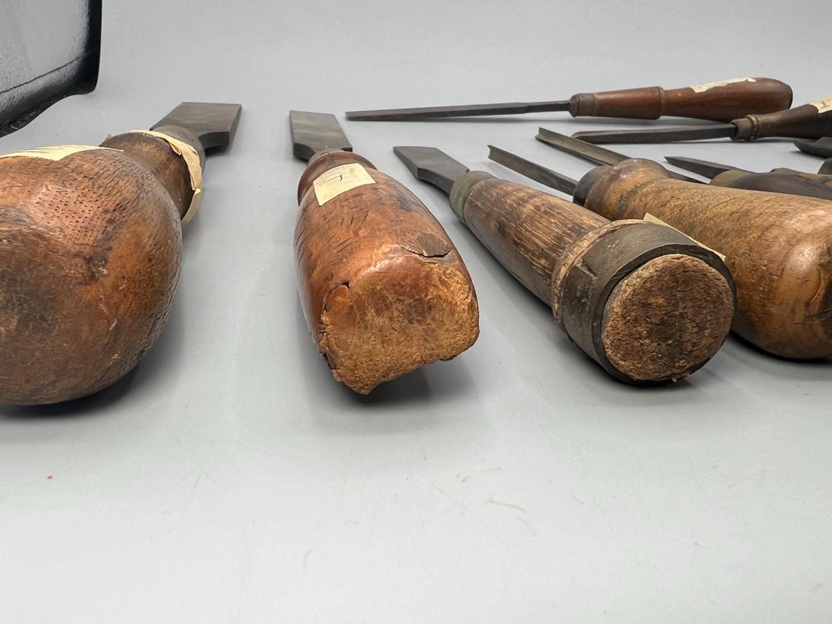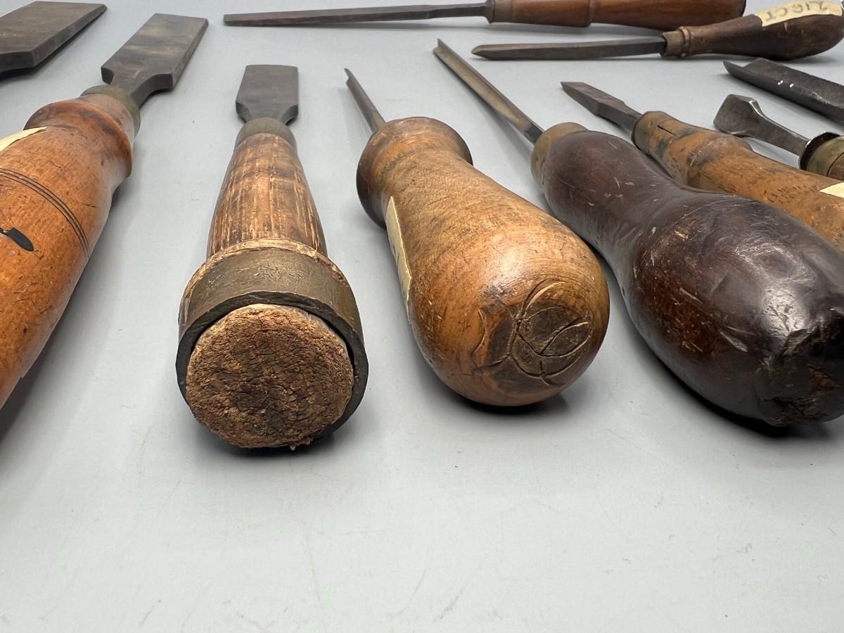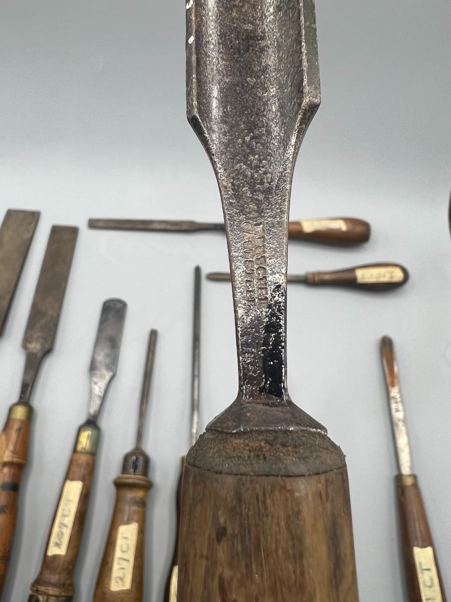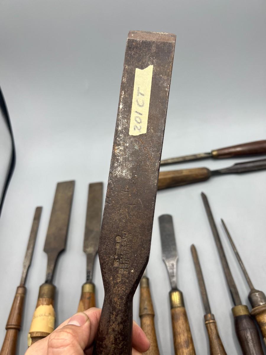 Antique 19th Century Lot of Cast Steel Carpenter Chisel Gouges Makers Mark Museum Pieces Tools