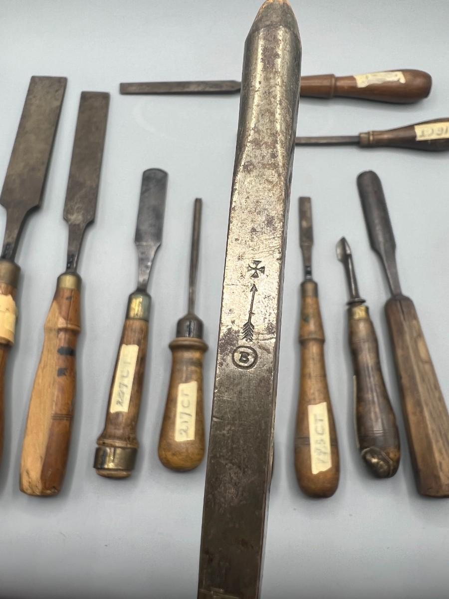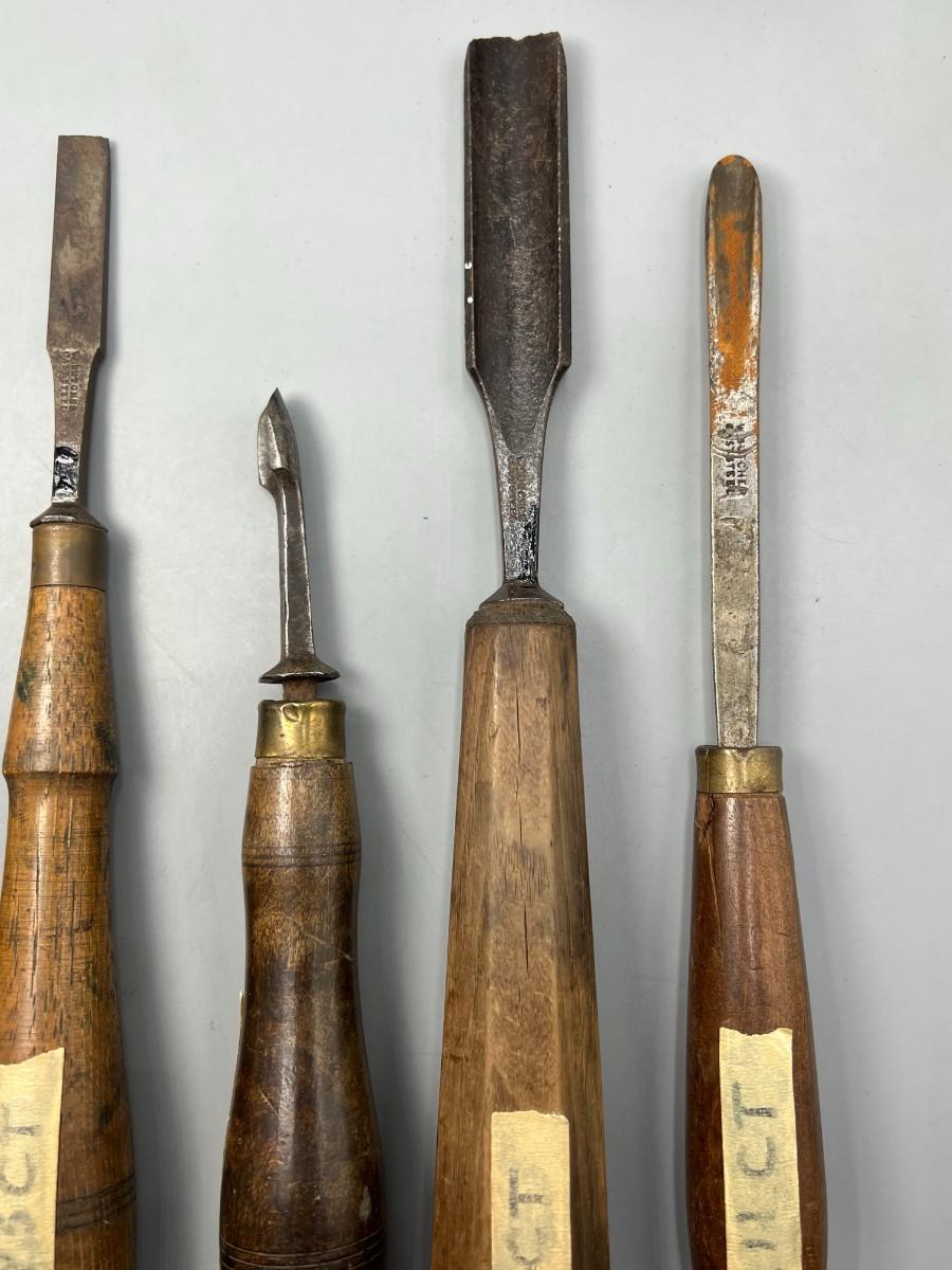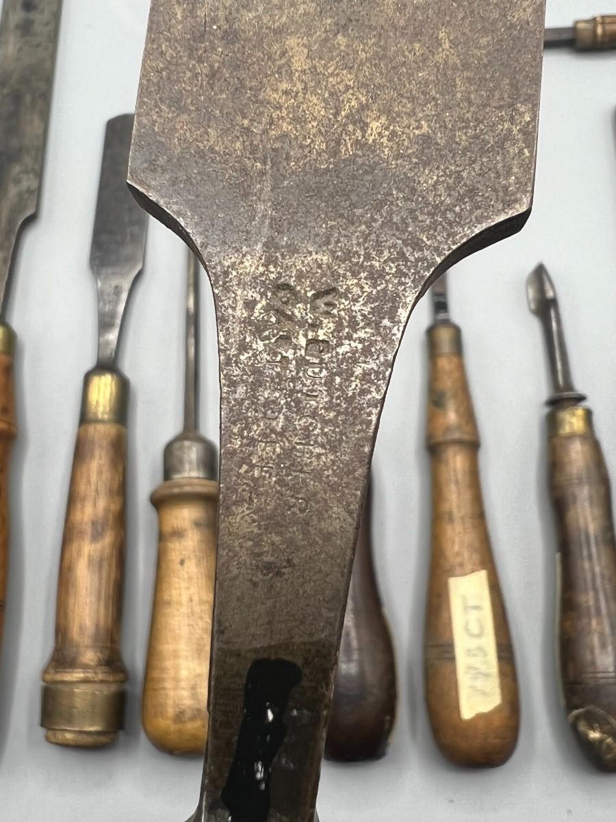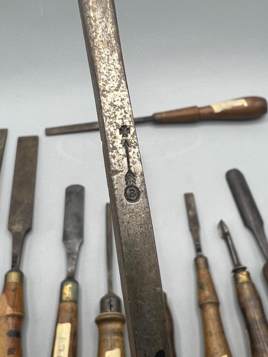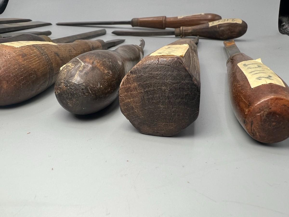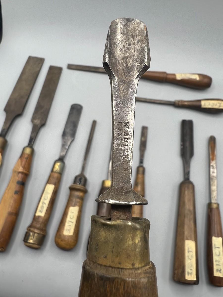 Antique 19th Century Lot of Cast Steel Carpenter Chisel Gouges Makers Mark Museum Pieces Tools