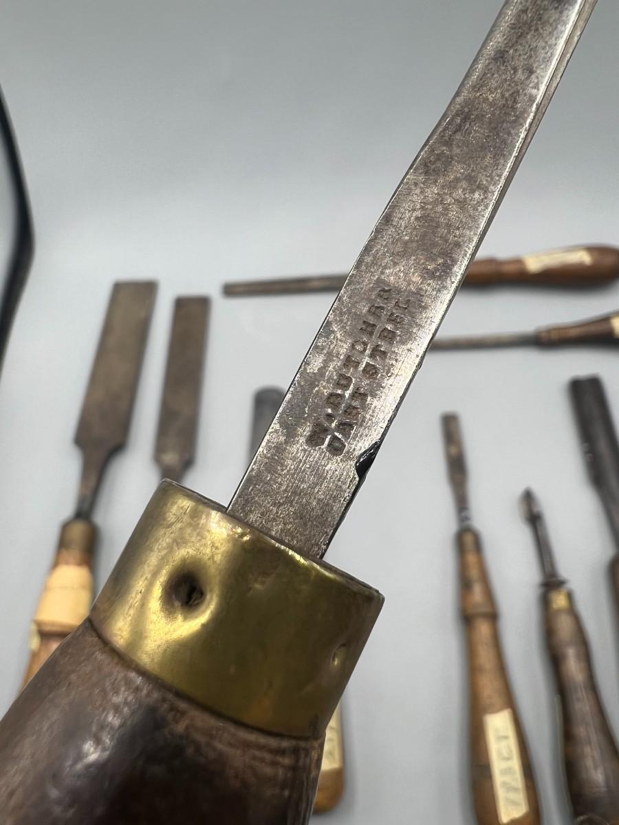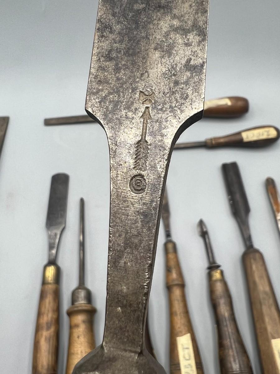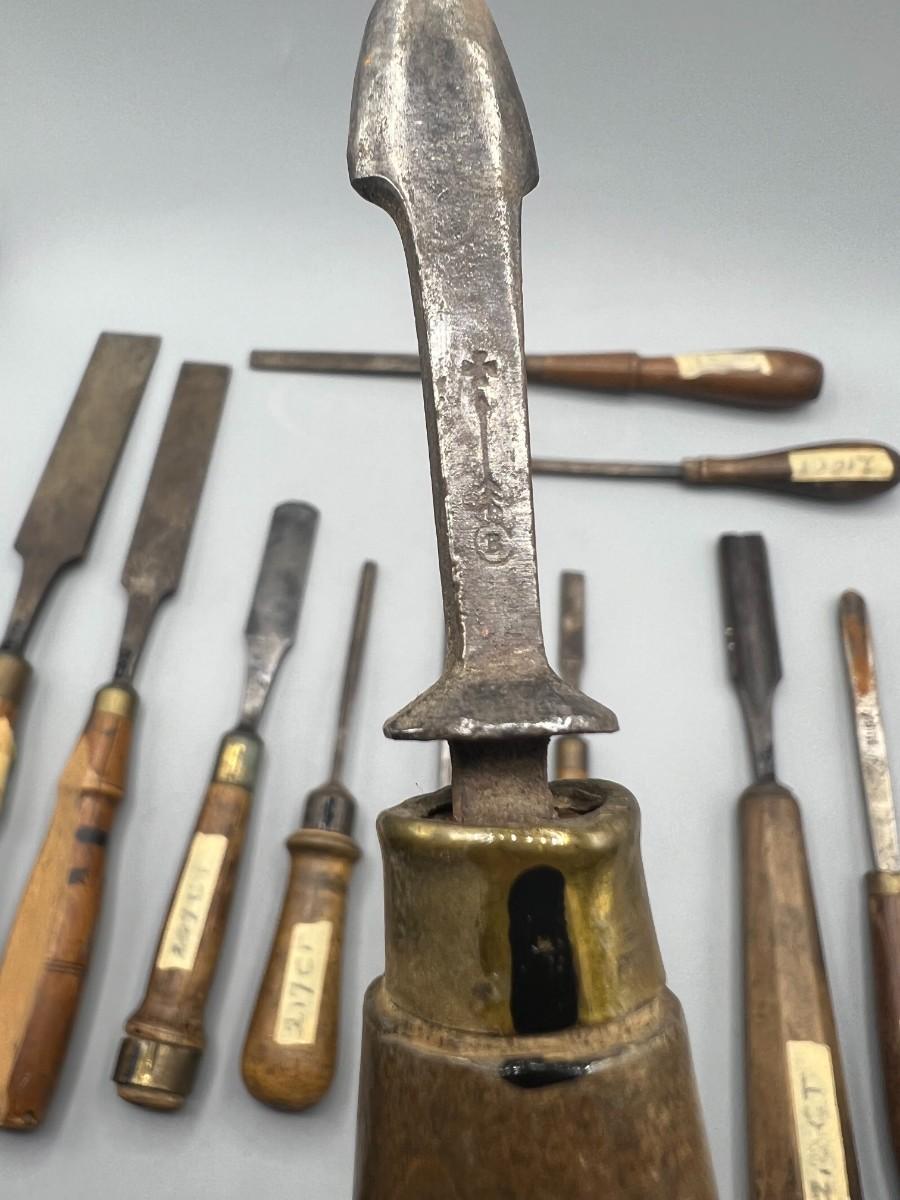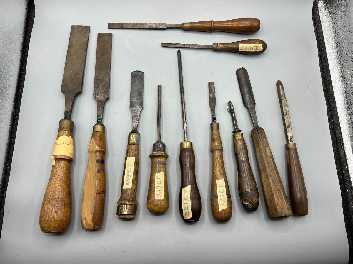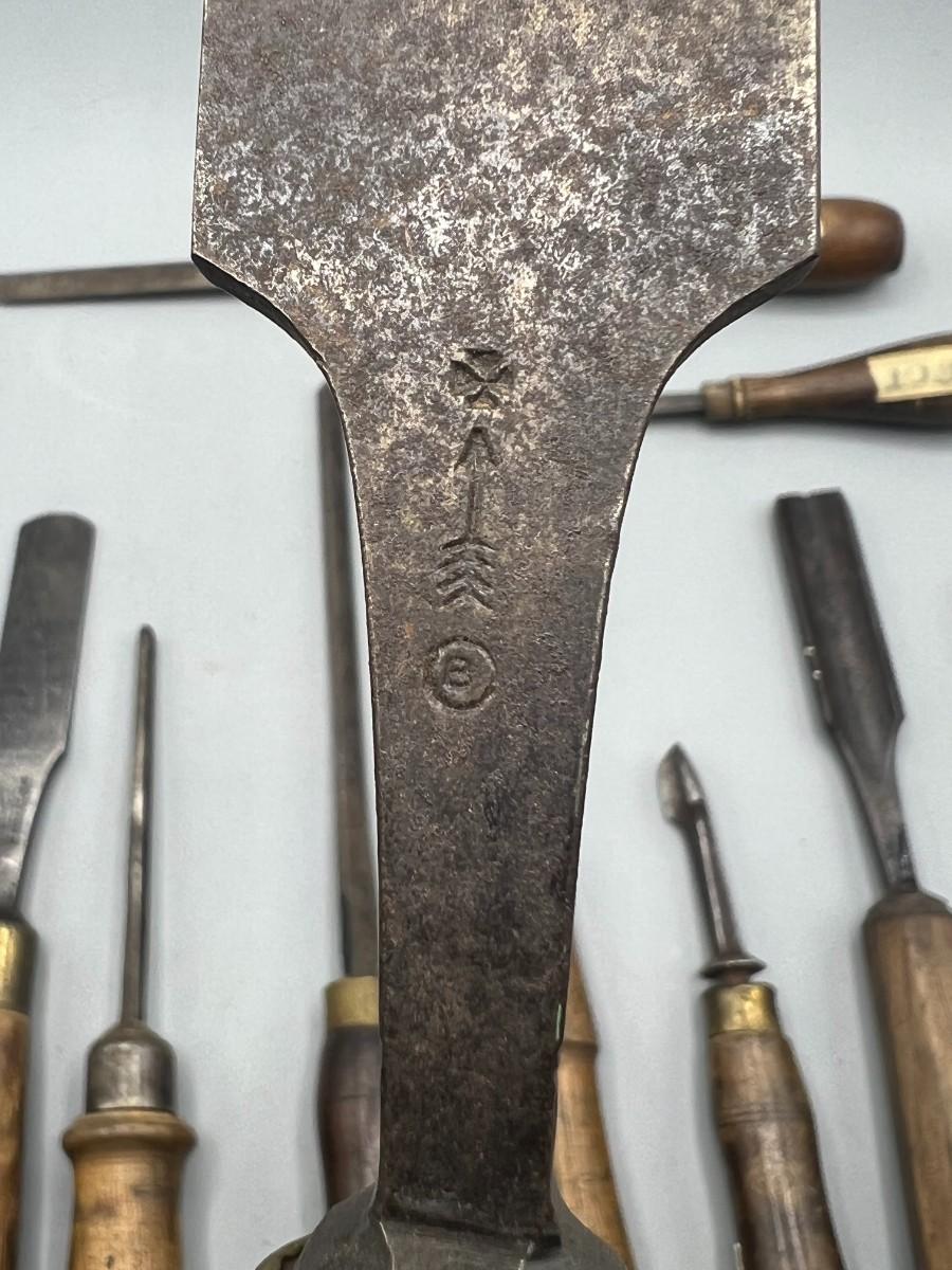 Antique 19th Century Lot of Cast Steel Carpenter Chisel Gouges Makers Mark Museum Pieces Tools