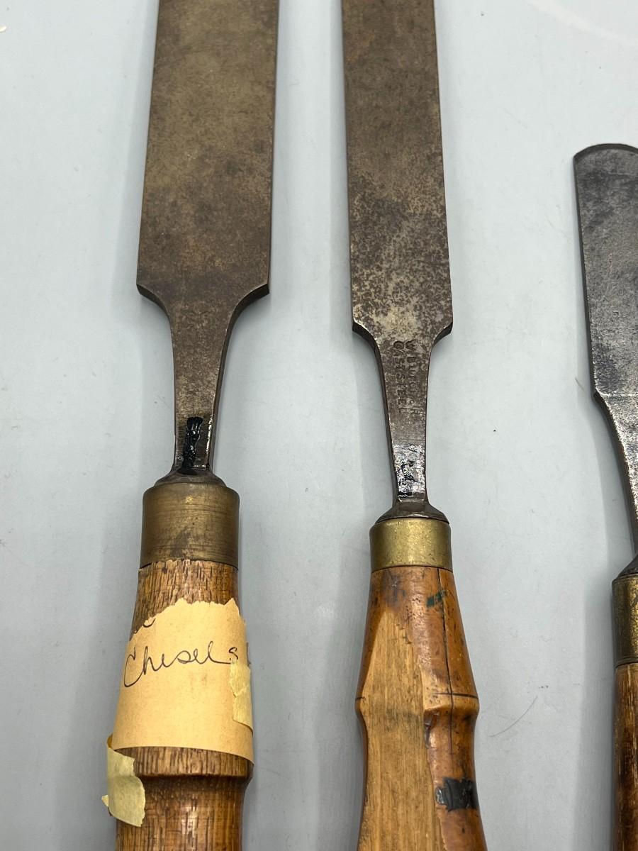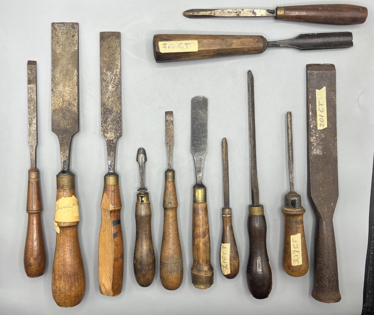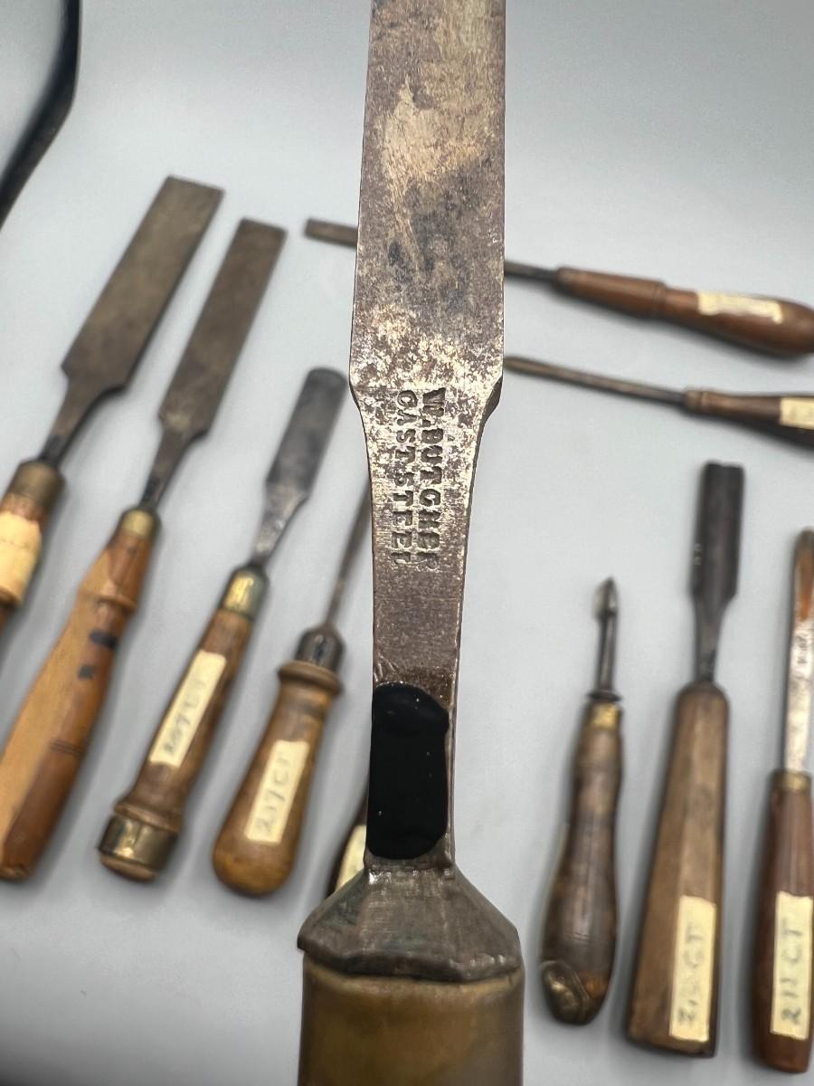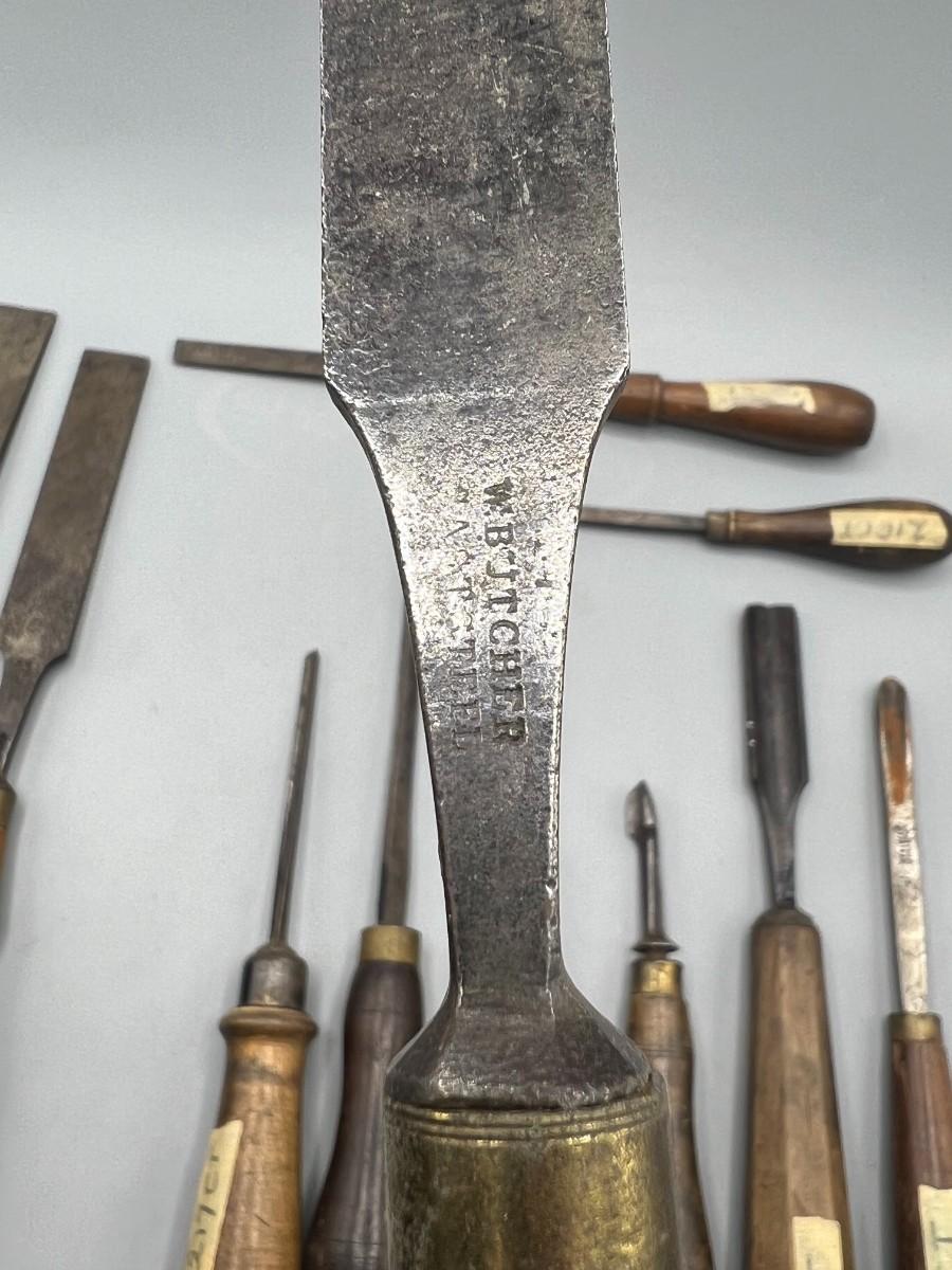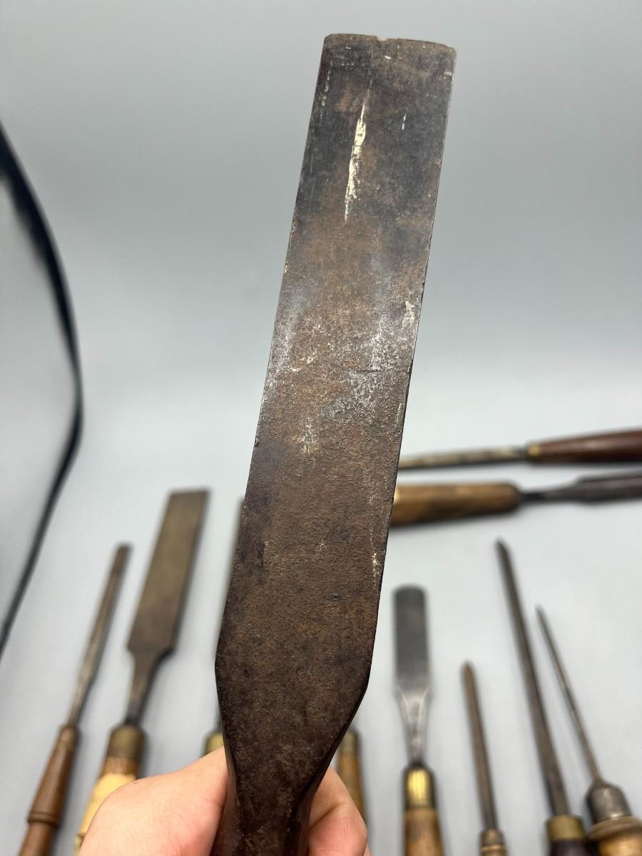 Antique 19th Century Lot of Cast Steel Carpenter Chisel Gouges Makers Mark Museum Pieces Tools