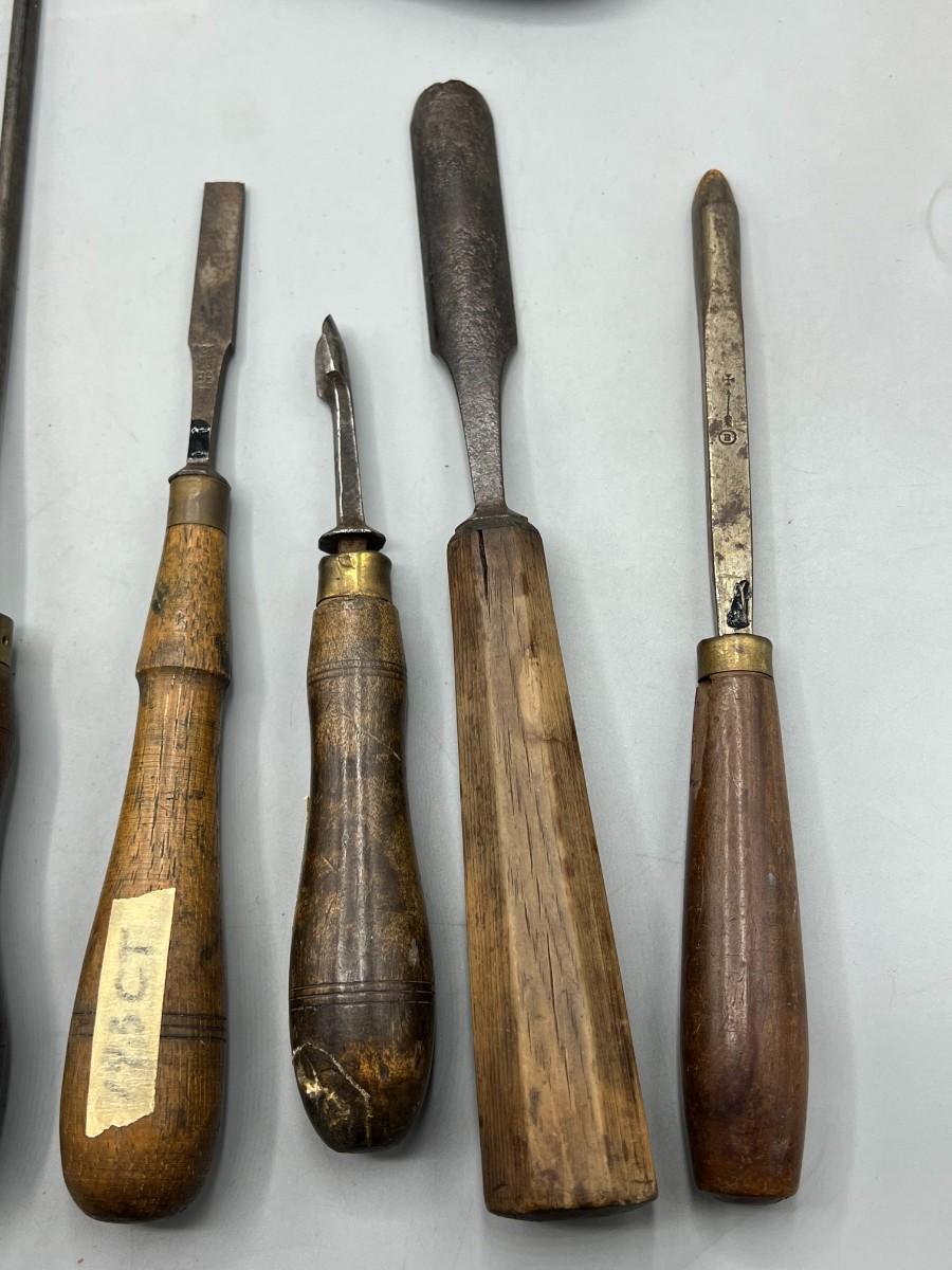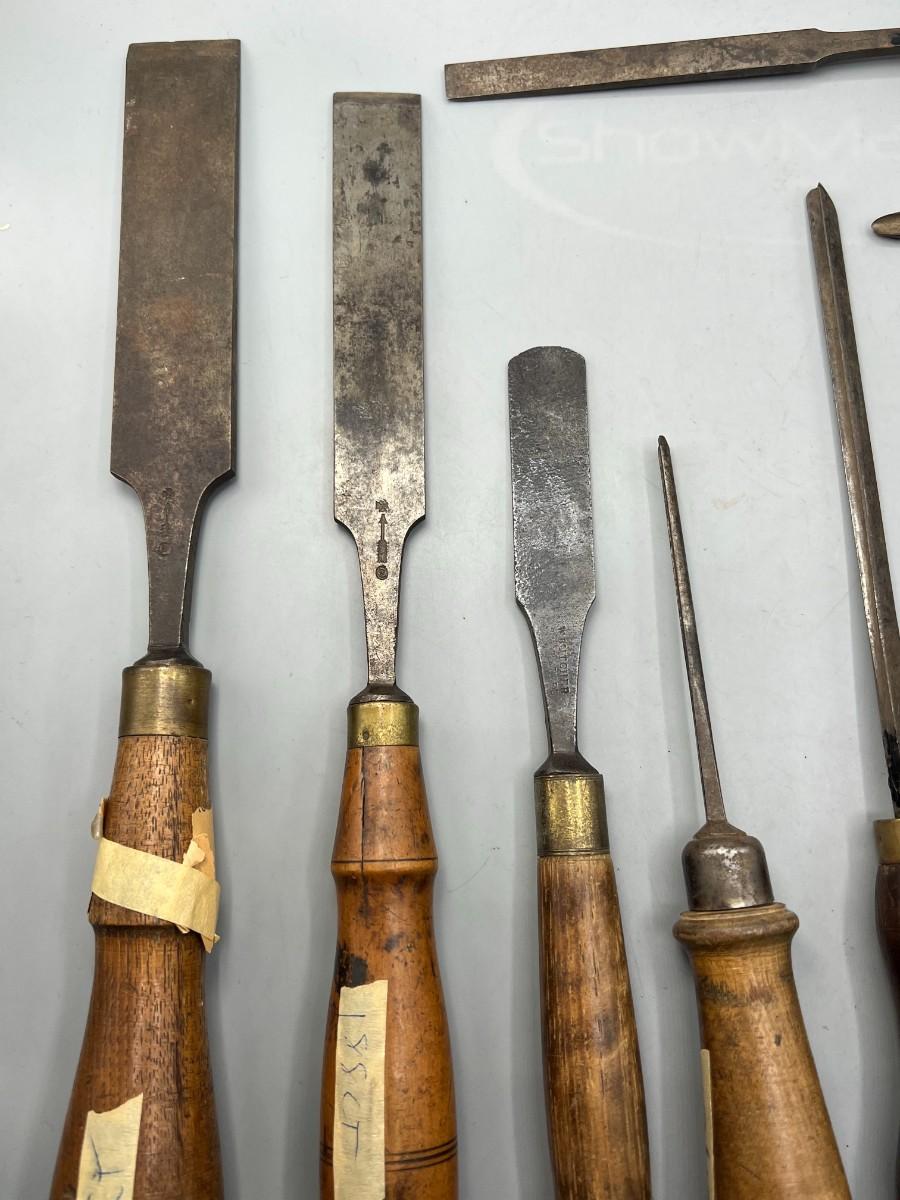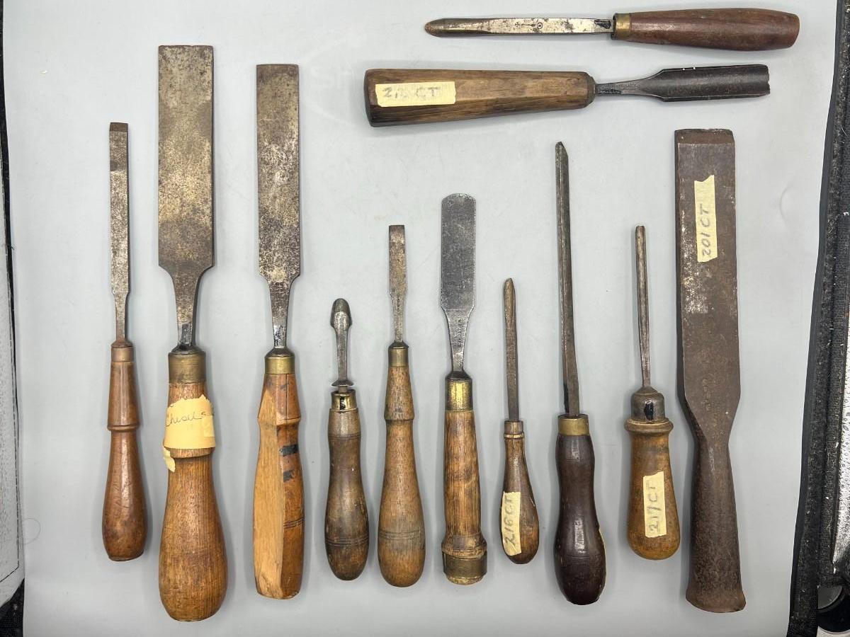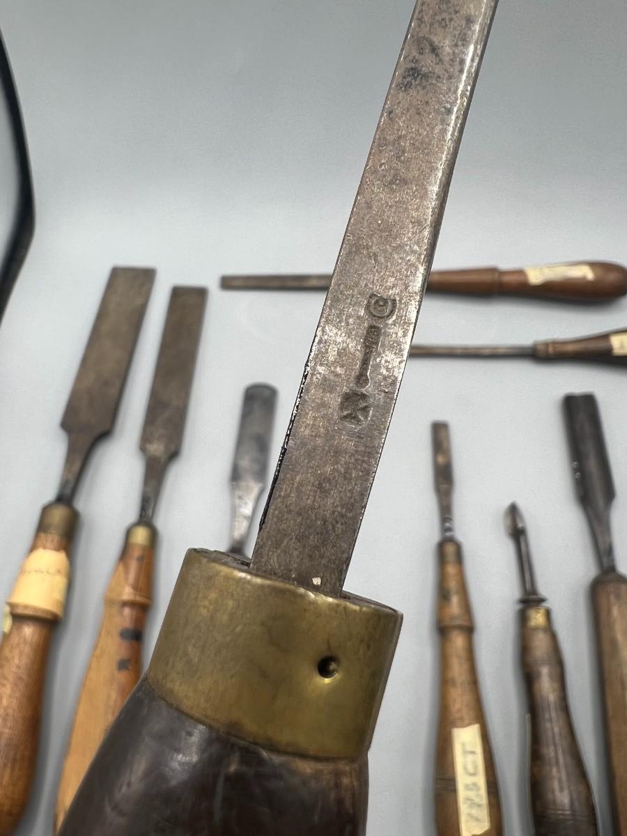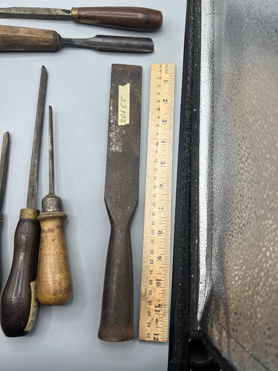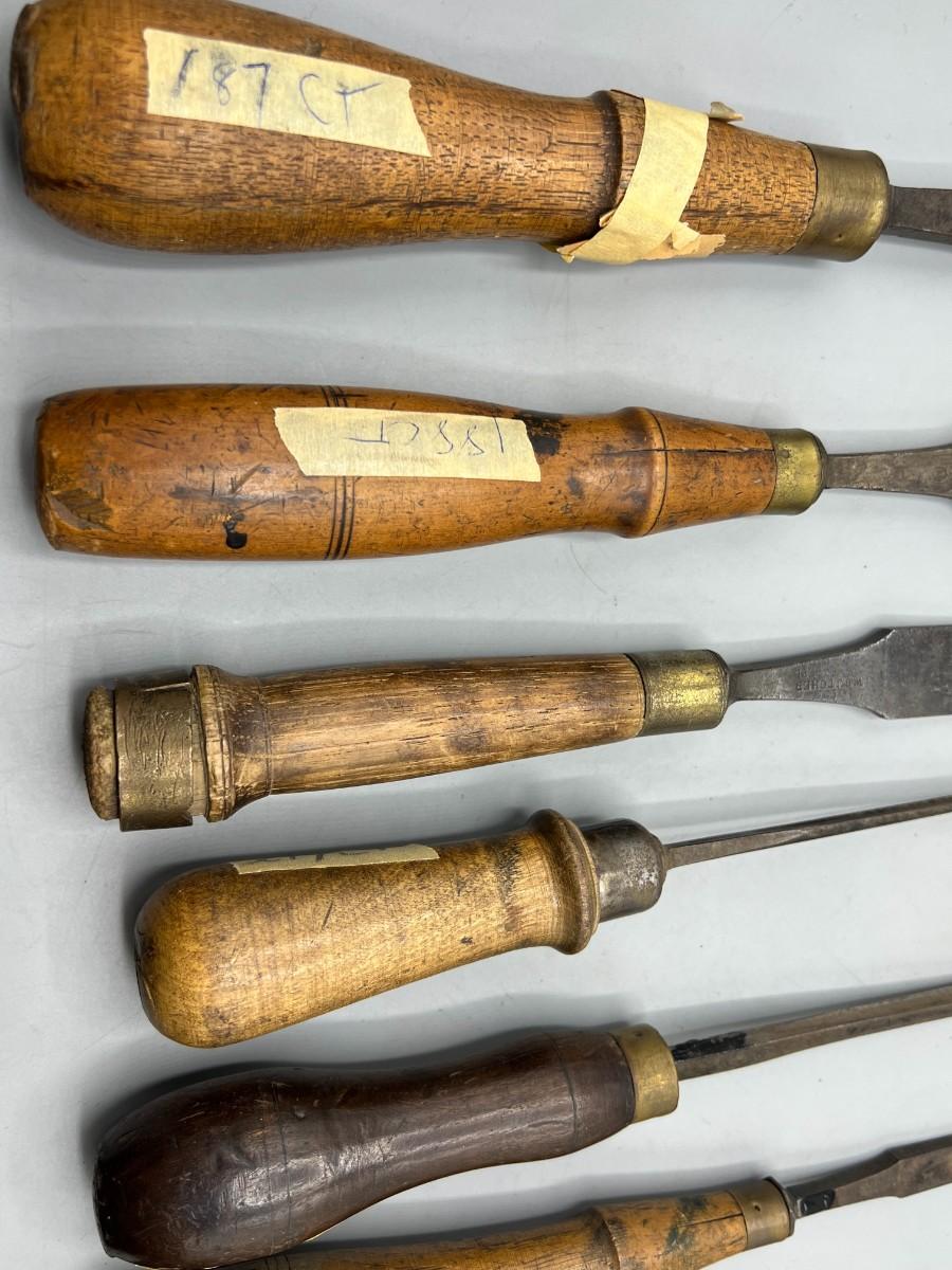 Antique 19th Century Lot of Cast Steel Carpenter Chisel Gouges Makers Mark Museum Pieces Tools