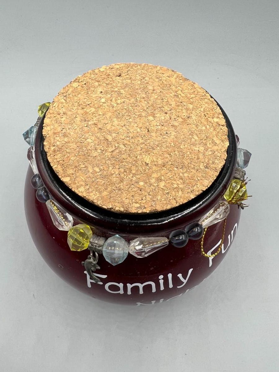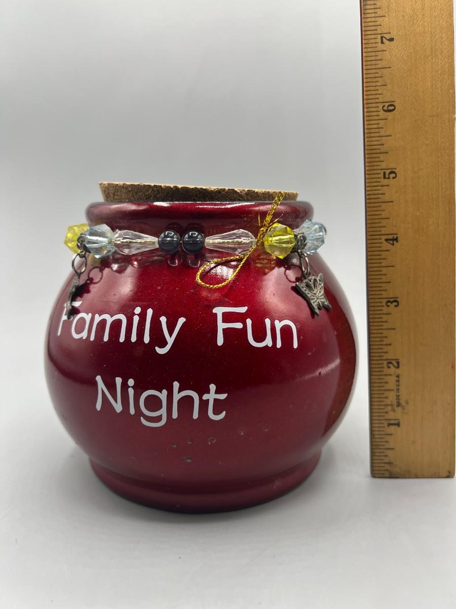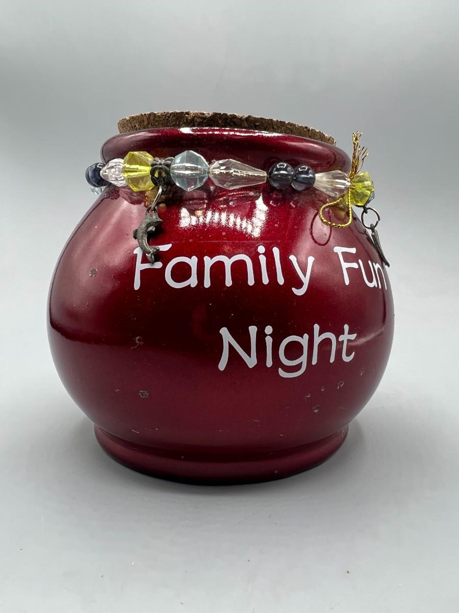 Family Fun Night Round Red Ceramic Game Jar