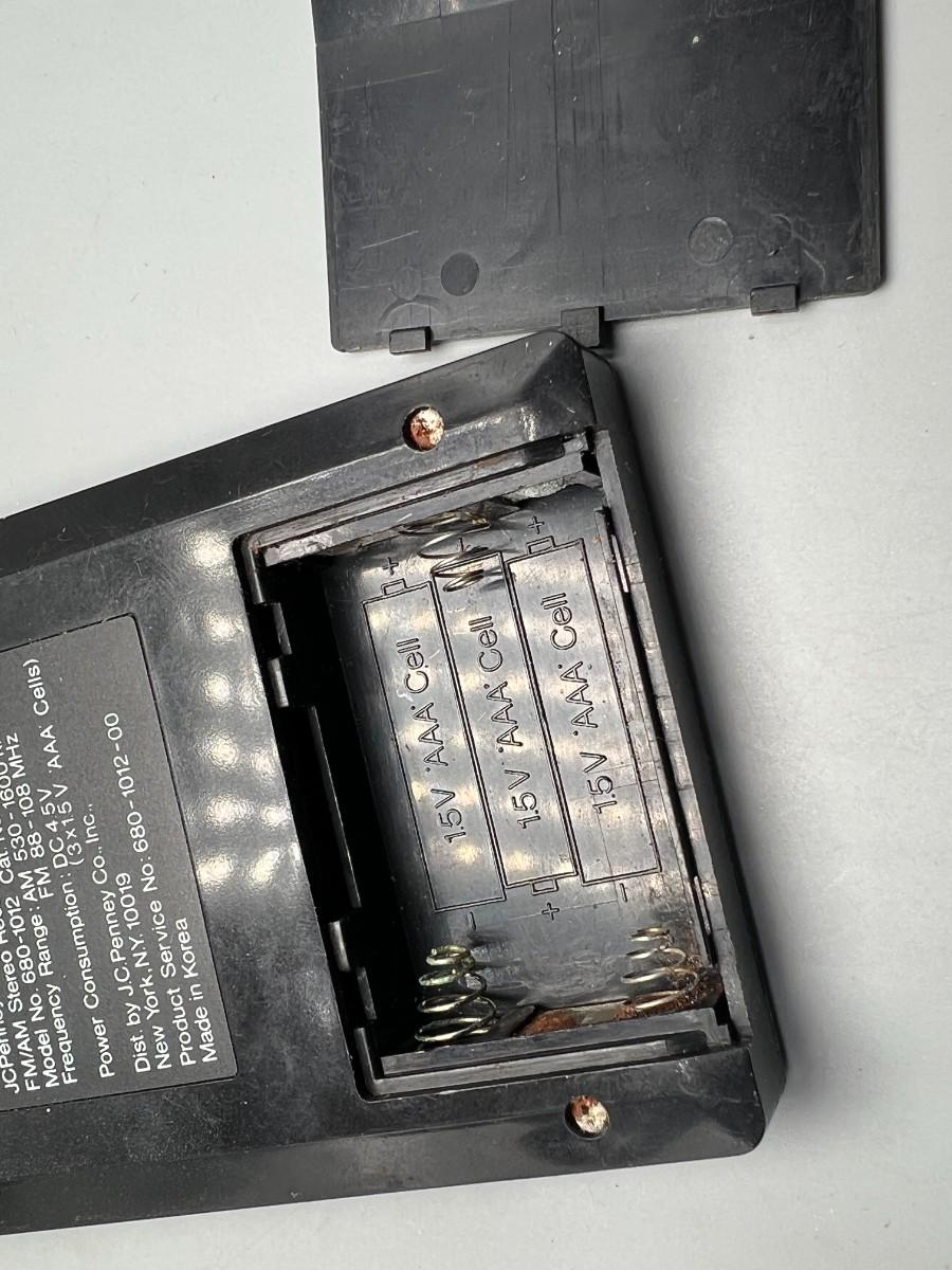 There is some retro wear to the radio, but there is no significant damage and is in overall fair condition. Has not been tested with new batteries, there is some corrosion. Check pictures for more details for sizing.