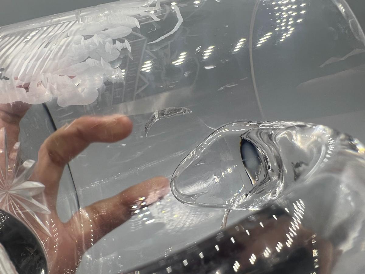 There is some light cracks, but there is no significant damage and is in overall good useable or collectible condition. Check pictures for more details and for sizing.