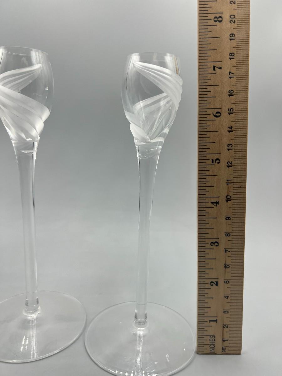 Lot of Lenox Accents Footed Frosted Swirl Design Glass Candlestick Holders