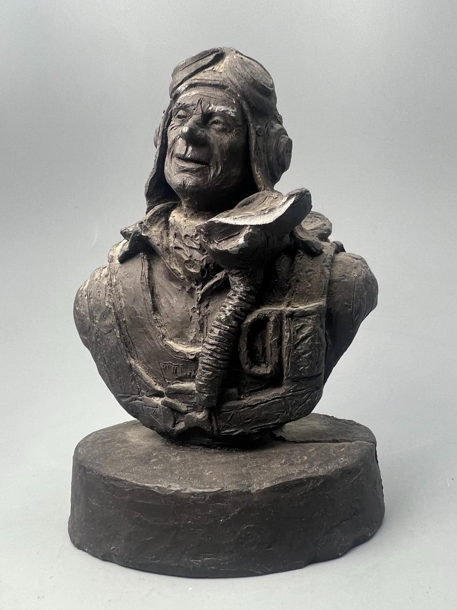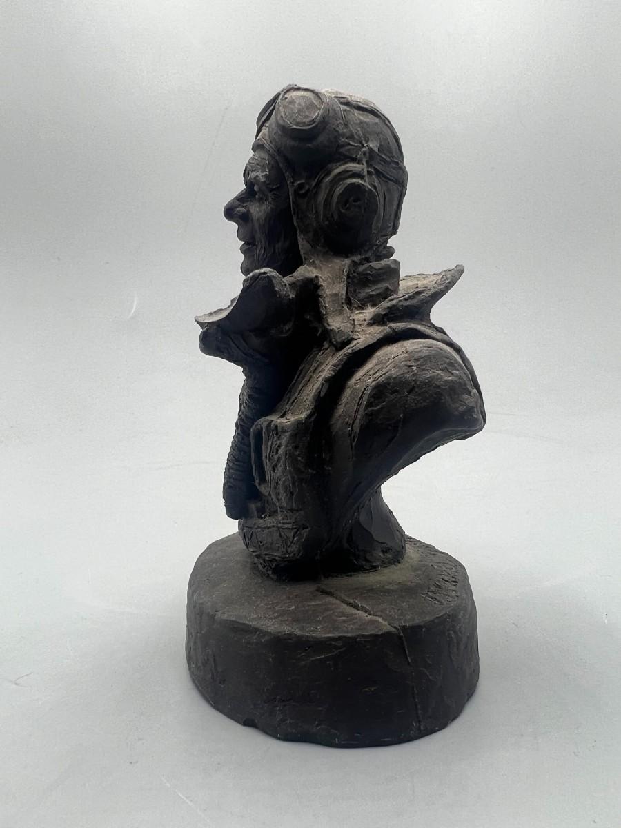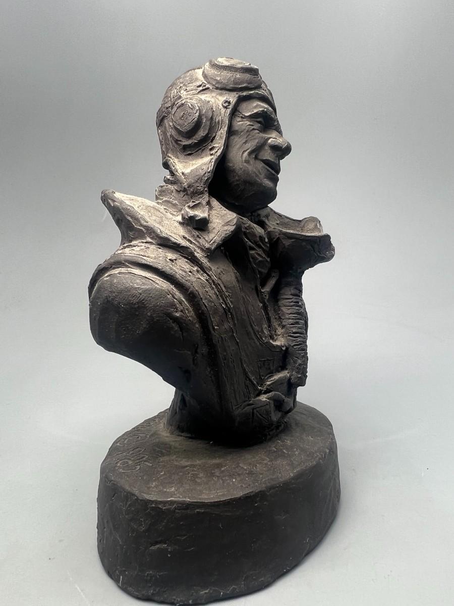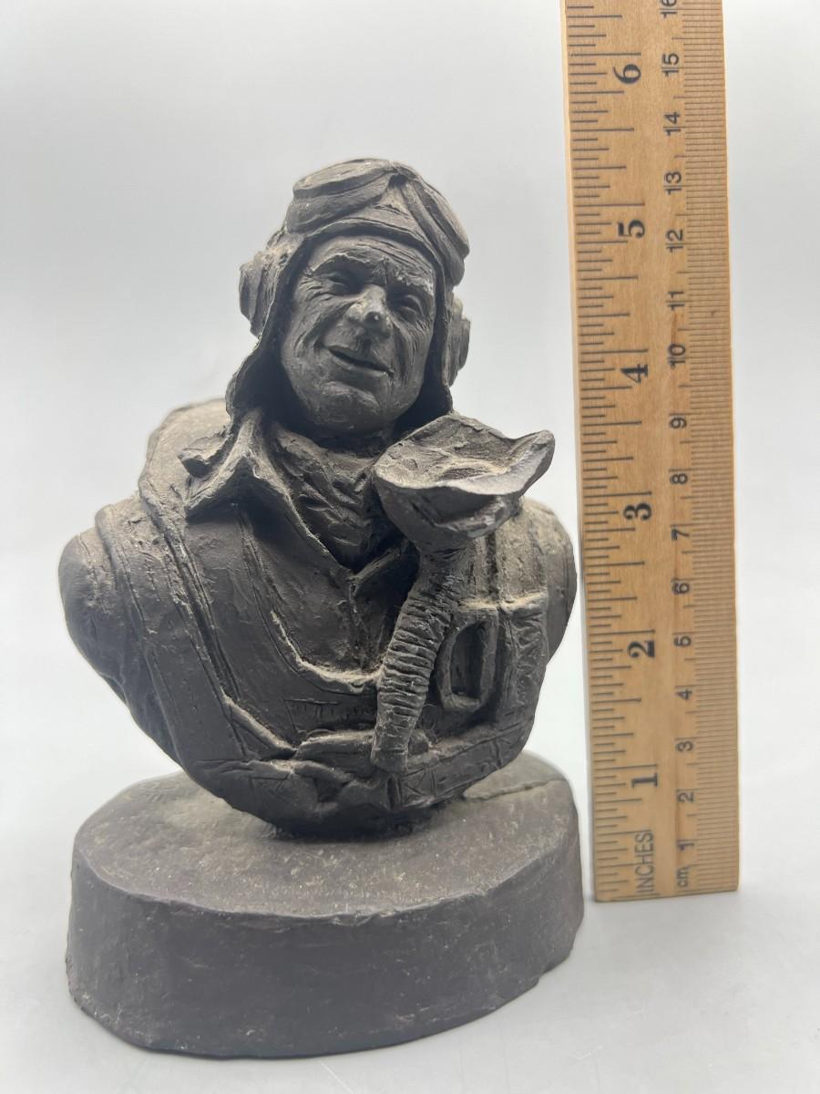 Vintage Michael Garman Signed Military Fighter Pilot Bronzetone Clay Plaster Sculpture