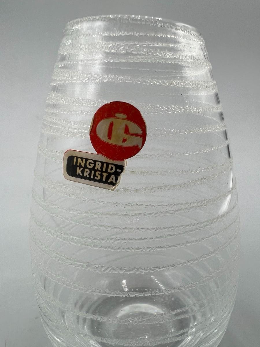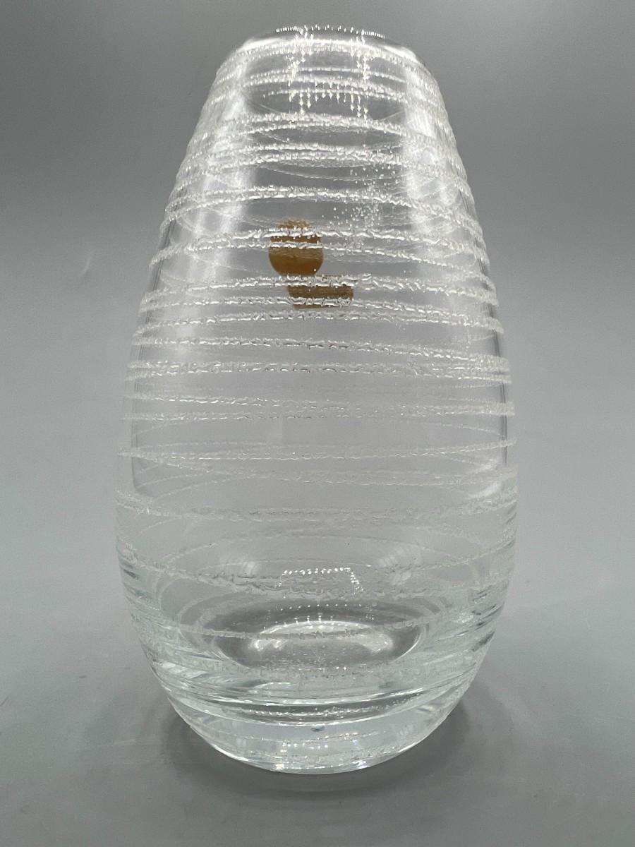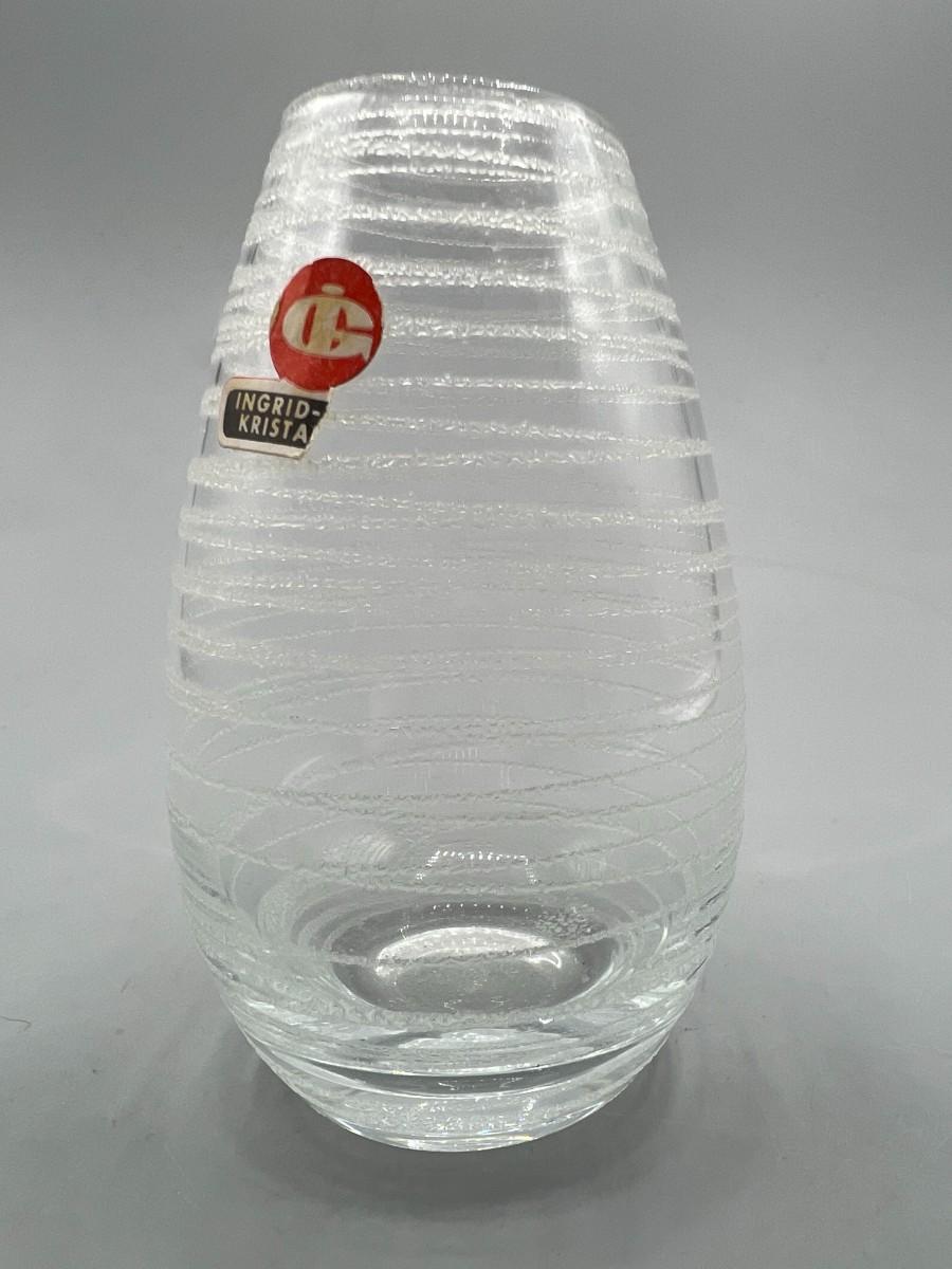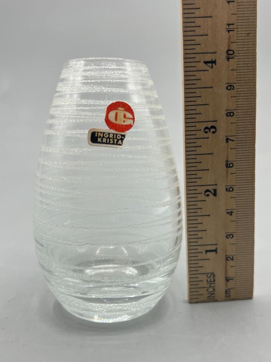 Small Vintage Frosted Line Design Glass MCM Bud Vase