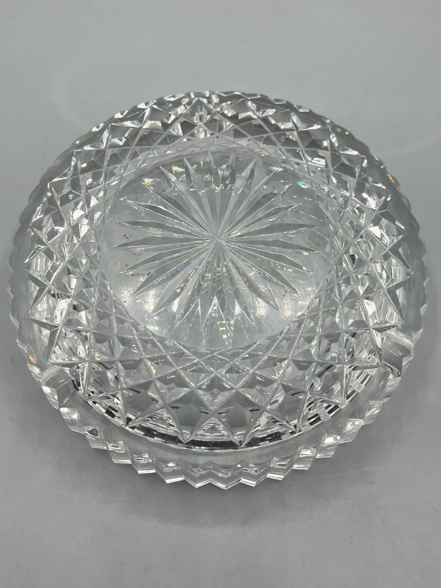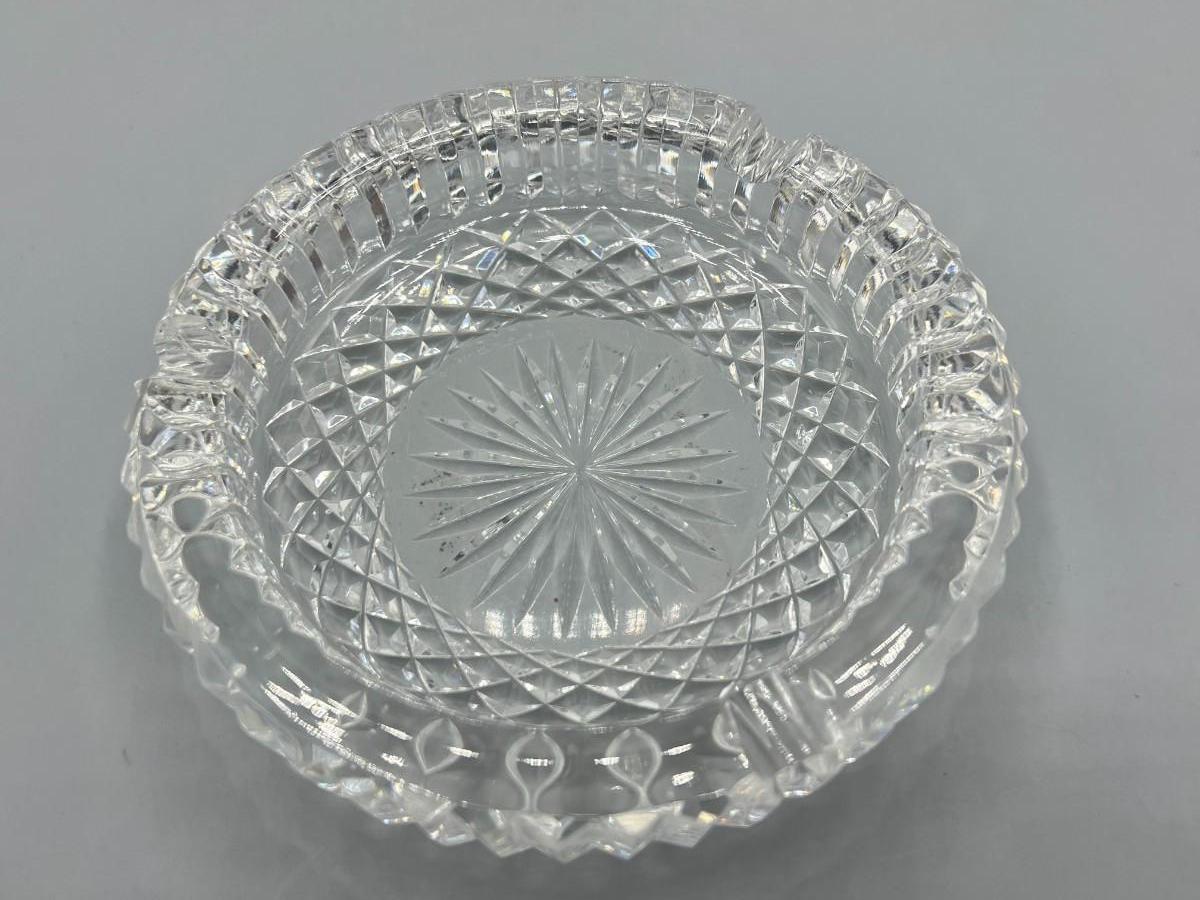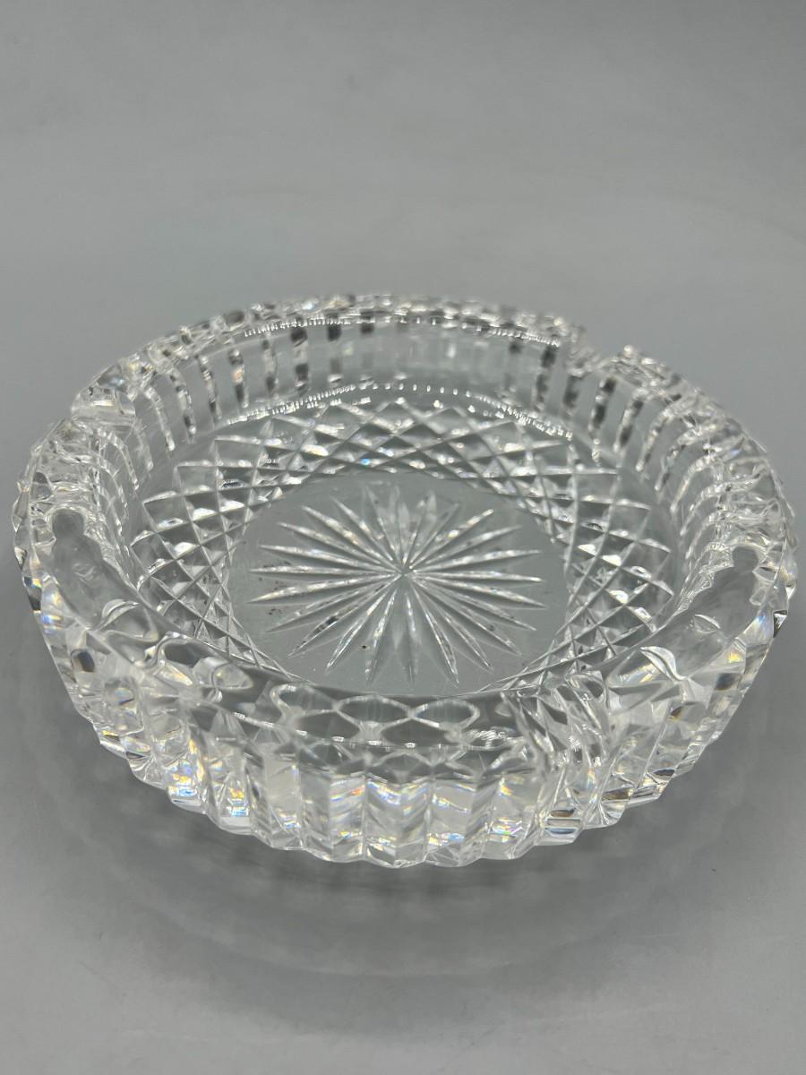 Vintage Crystal Glass Diamond Pattern Mid Century Cigarette Ashtray