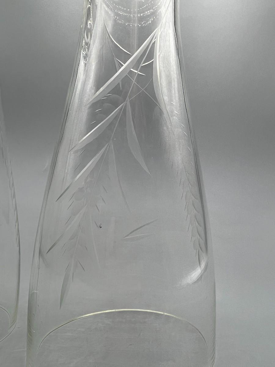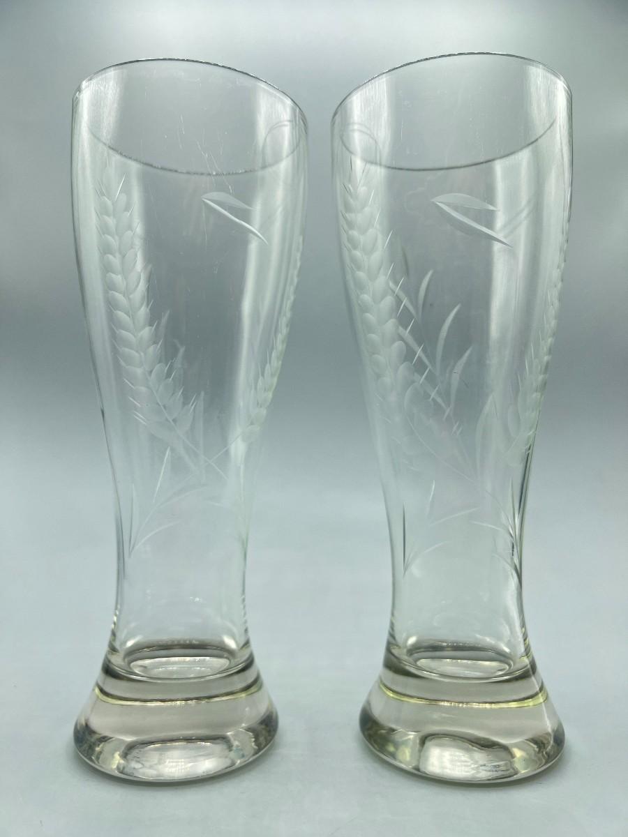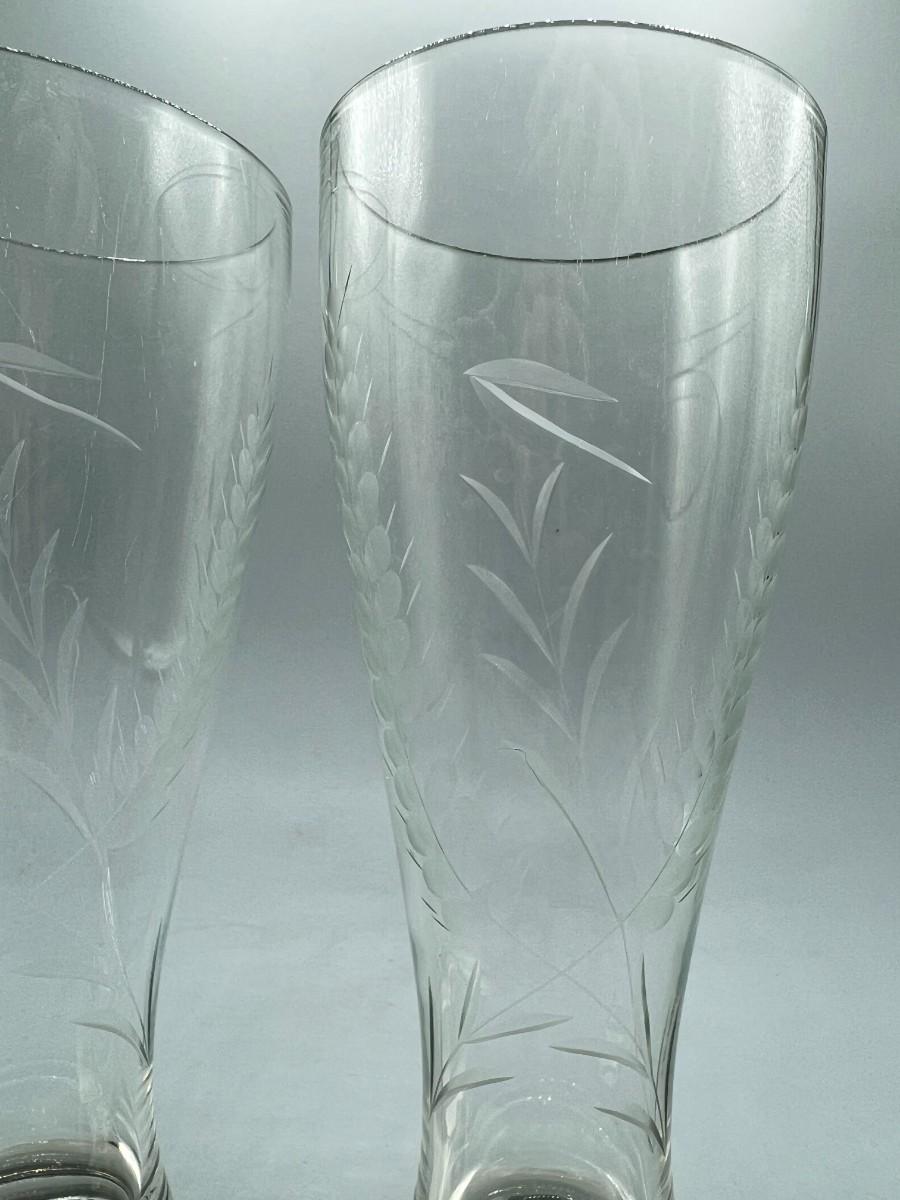 Pair of Retro Tall Glass Thin Leaf Foliage Motif Drinking Glasses