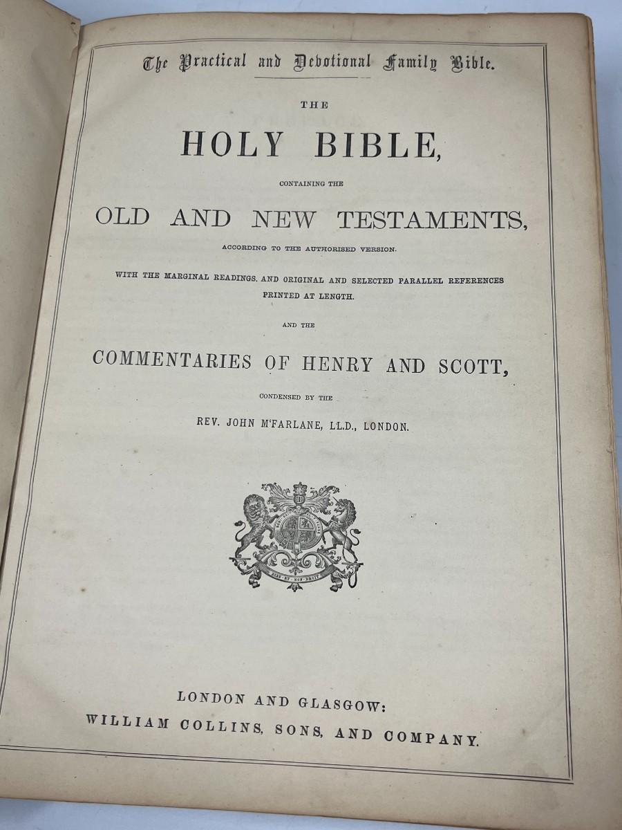 Large Antique The Holy Bible Old & New Testaments The Practical and Devotional Family Bible