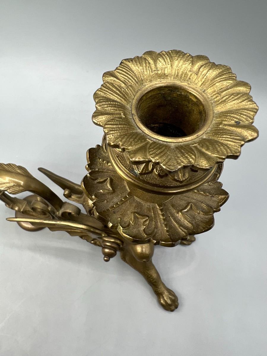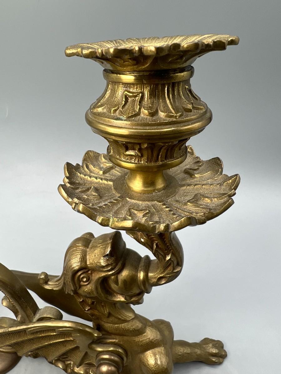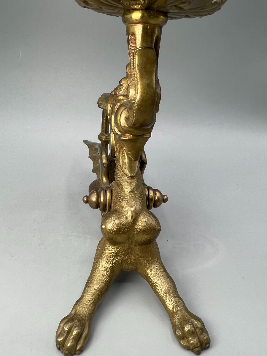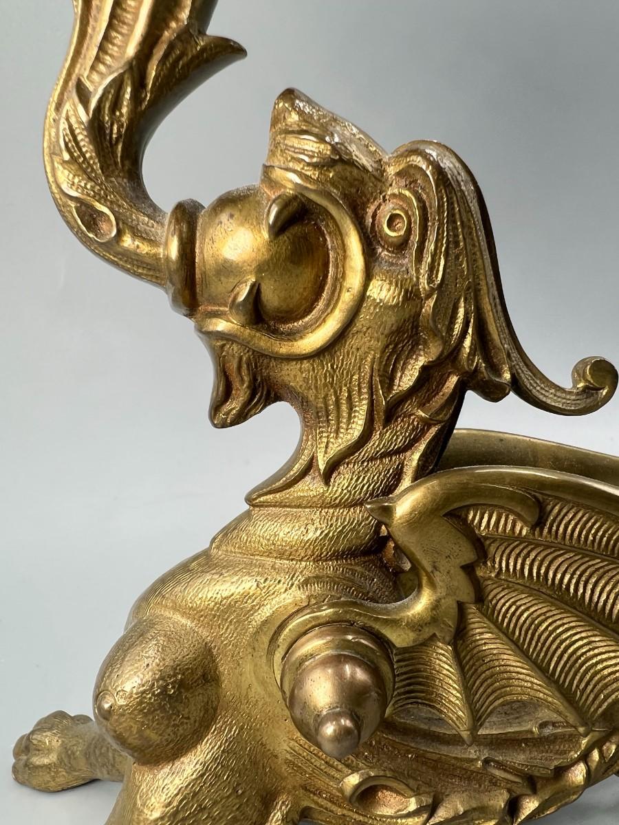 Antique Victorian Gothic Brass Metal Griffin Dragon Winged Lion Holding Candle Sconce in Mouth