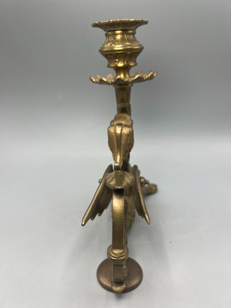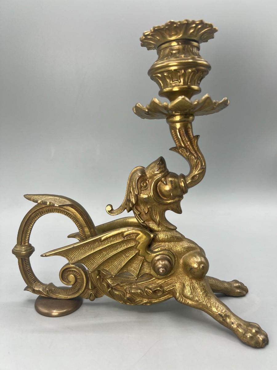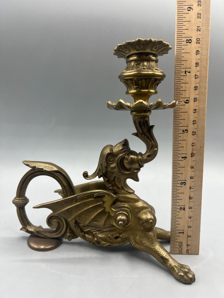 Victorian Gothic Brass Metal Griffin Dragon Winged Lion Holding Candle Scone in Mouth. Displays wonderfully. Highly detailed. About 8" size.