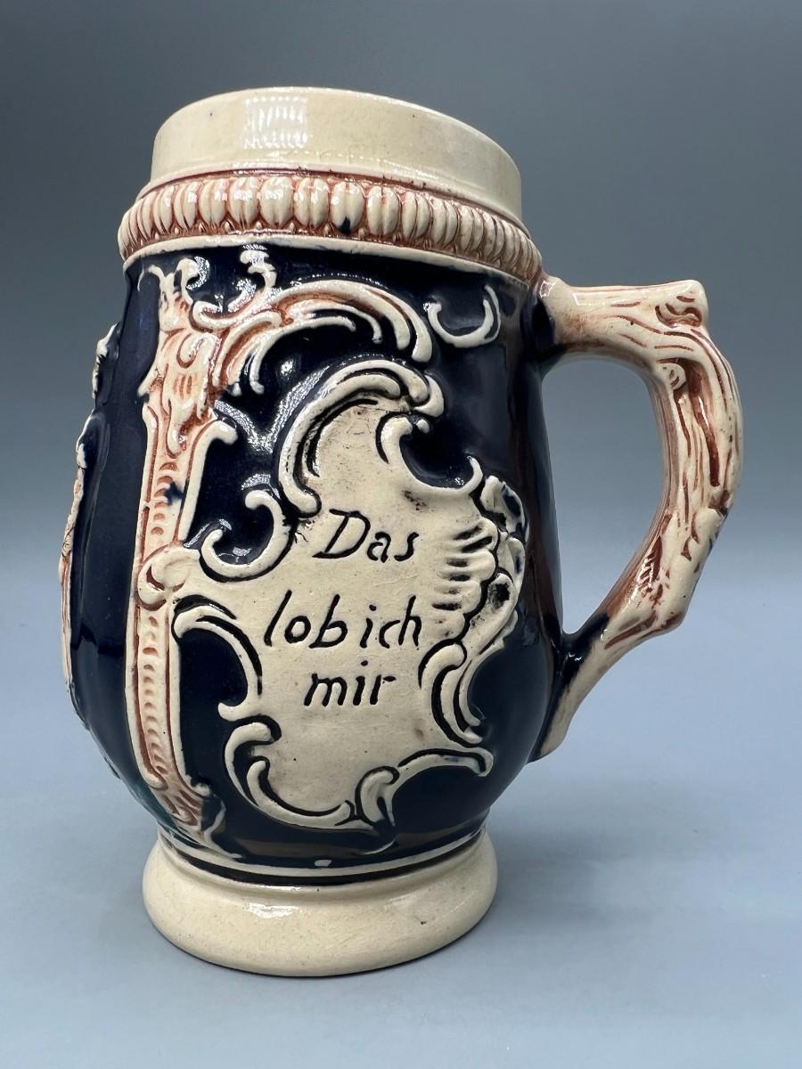 Vintage German Cobalt Beer Stein Pair of Lovers Das Lobich Mir Ein Gutes Bier