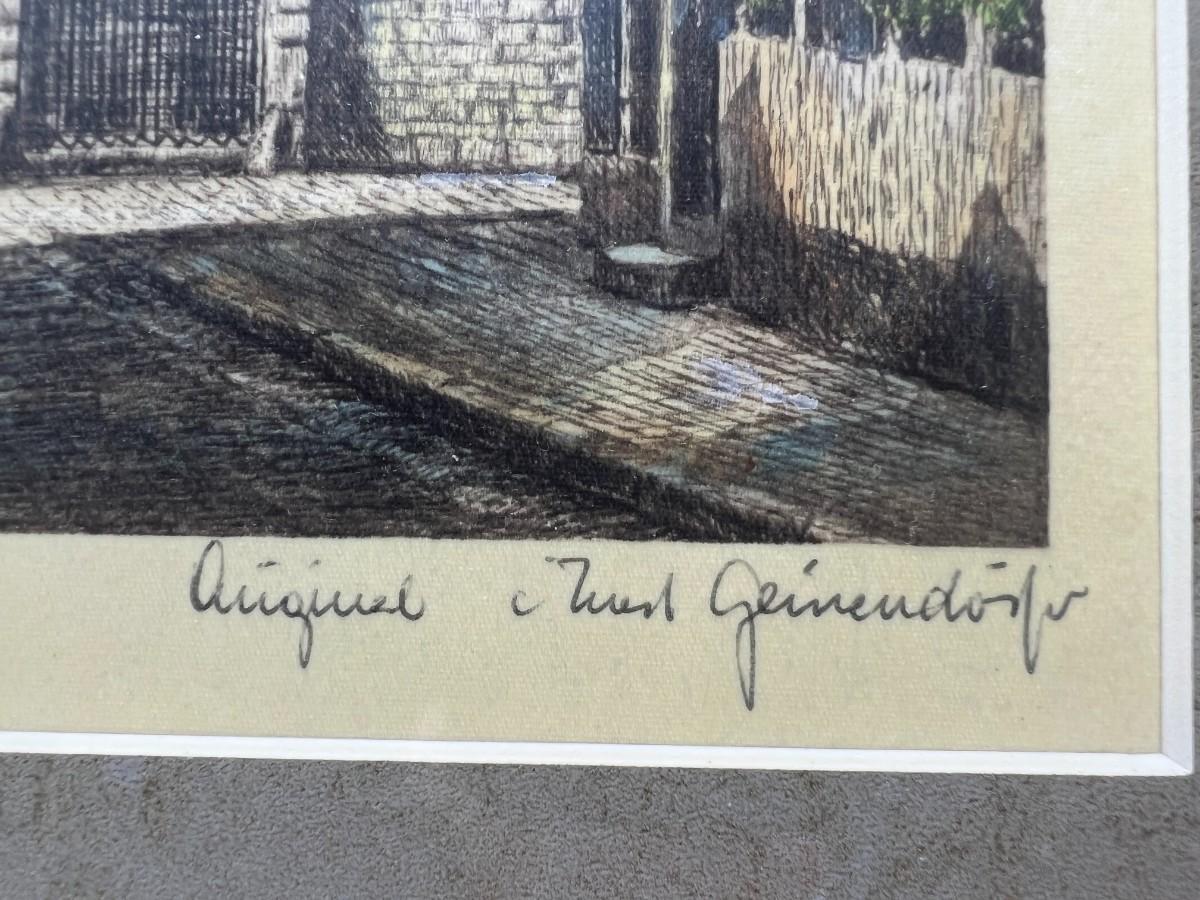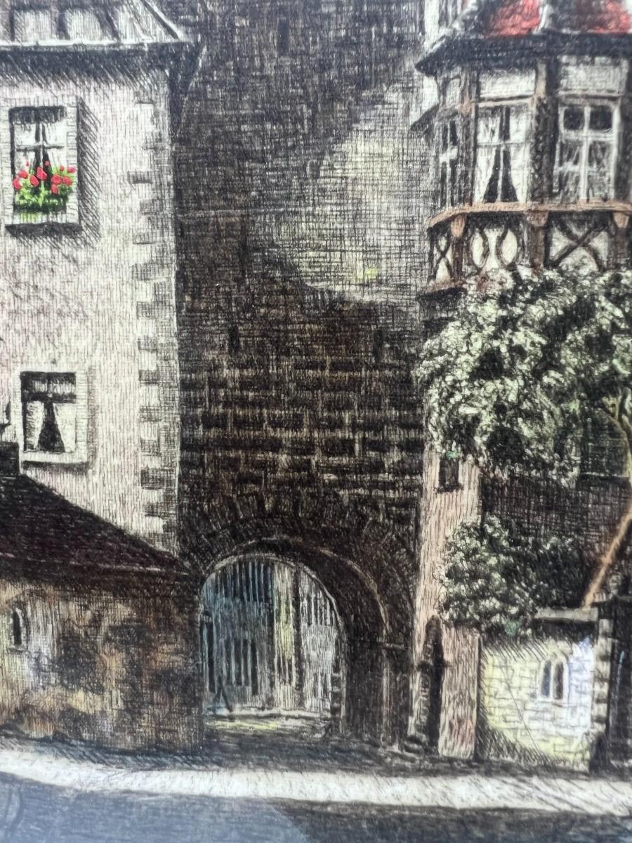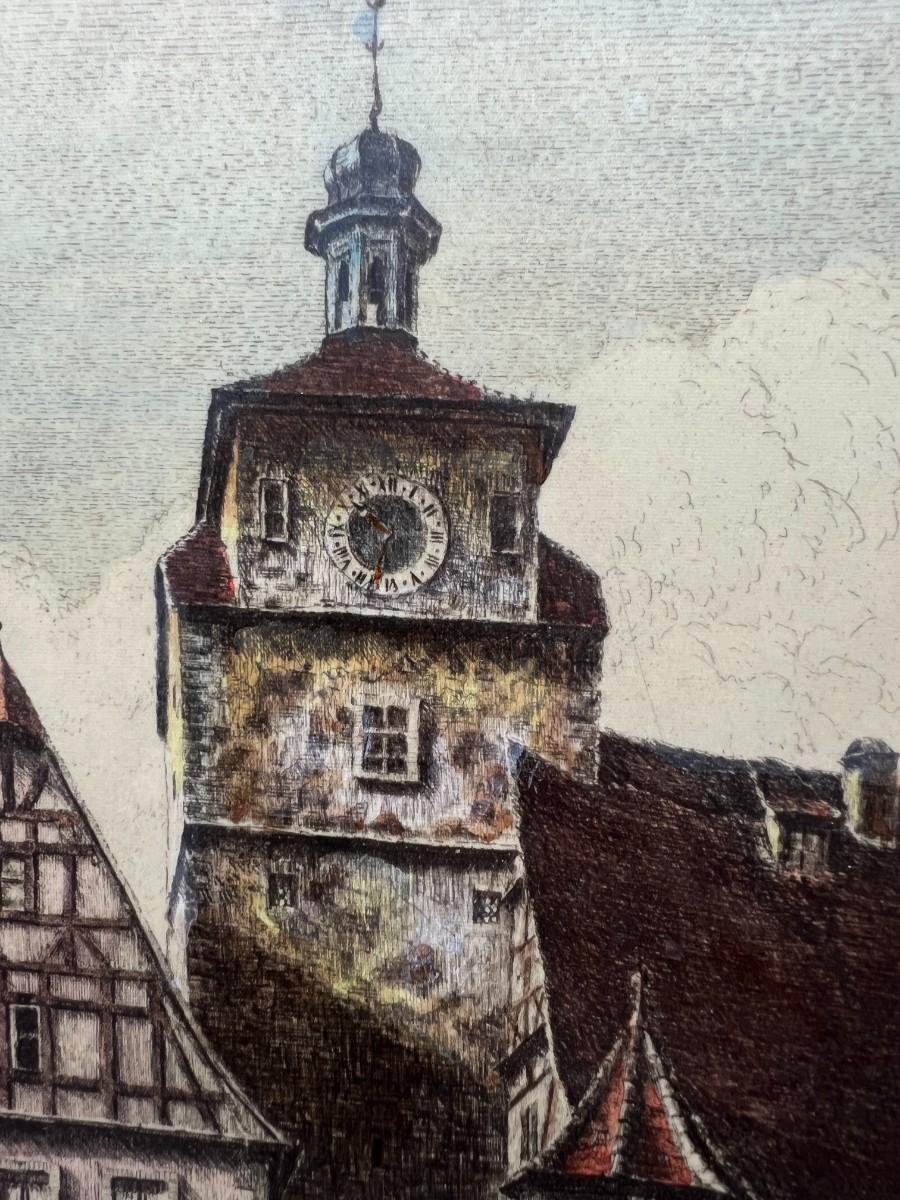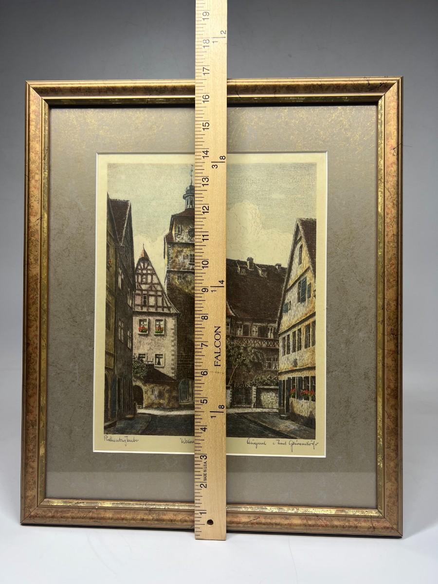 Vintage Signed Art Color Etching German Architecture Rothenberg Tauber Ernst Geissendorfer