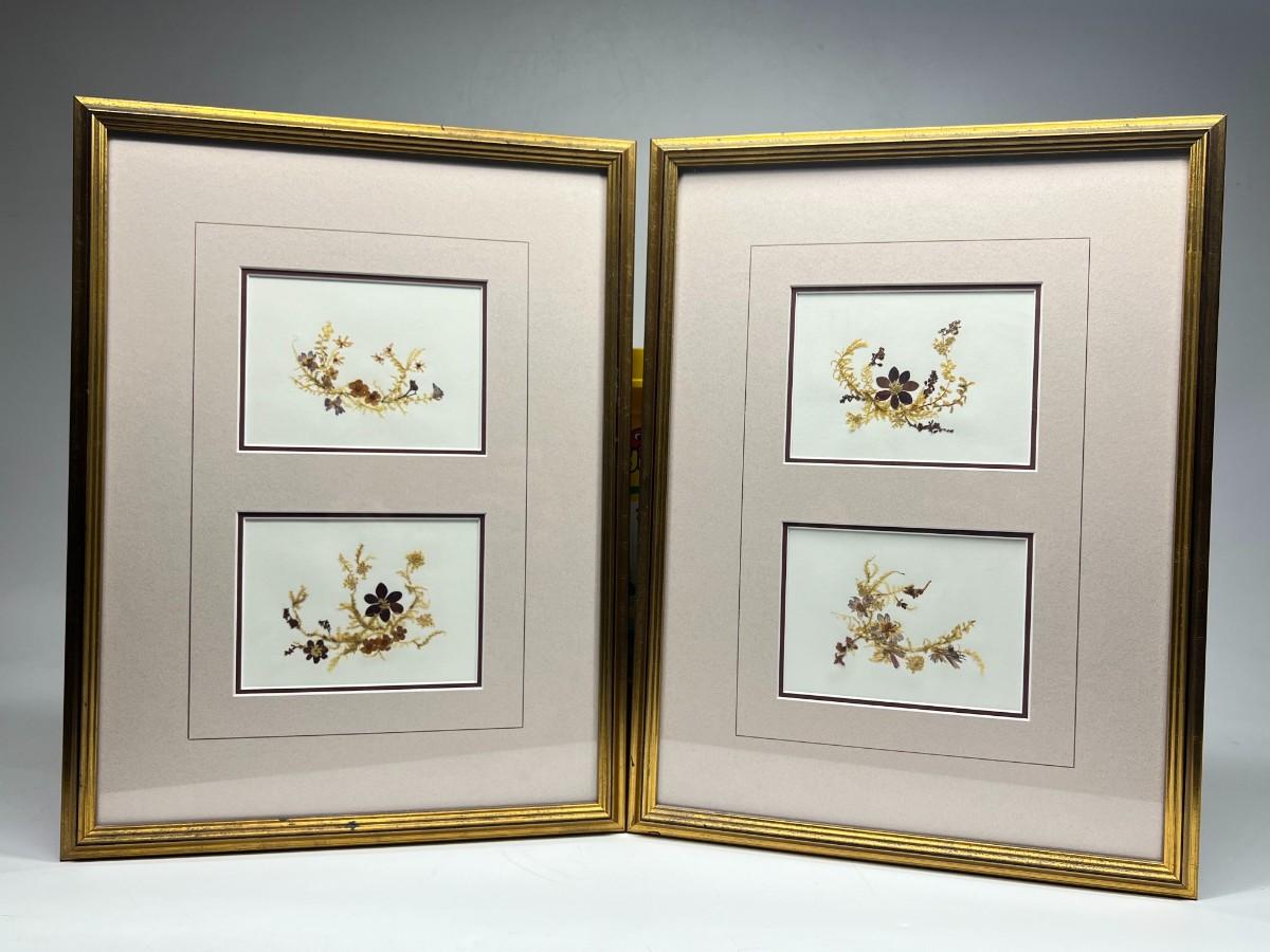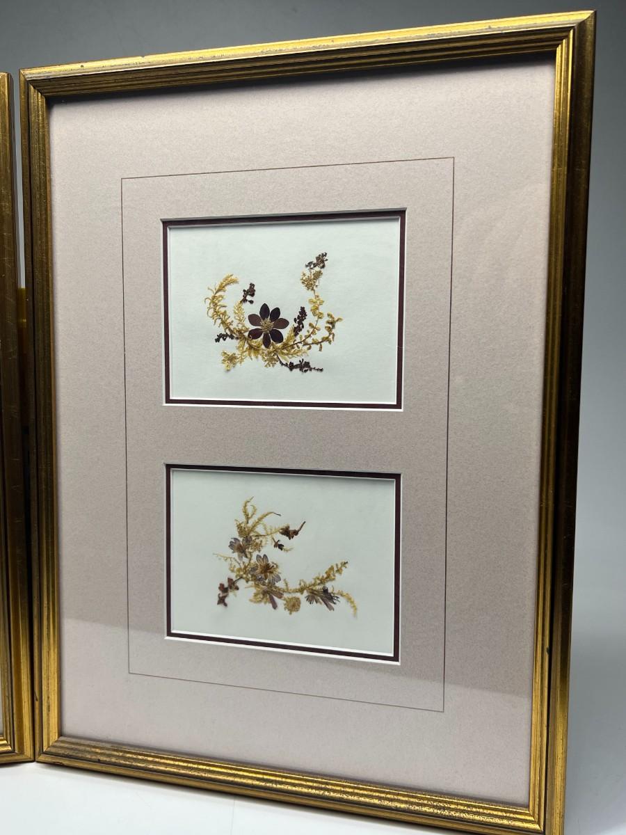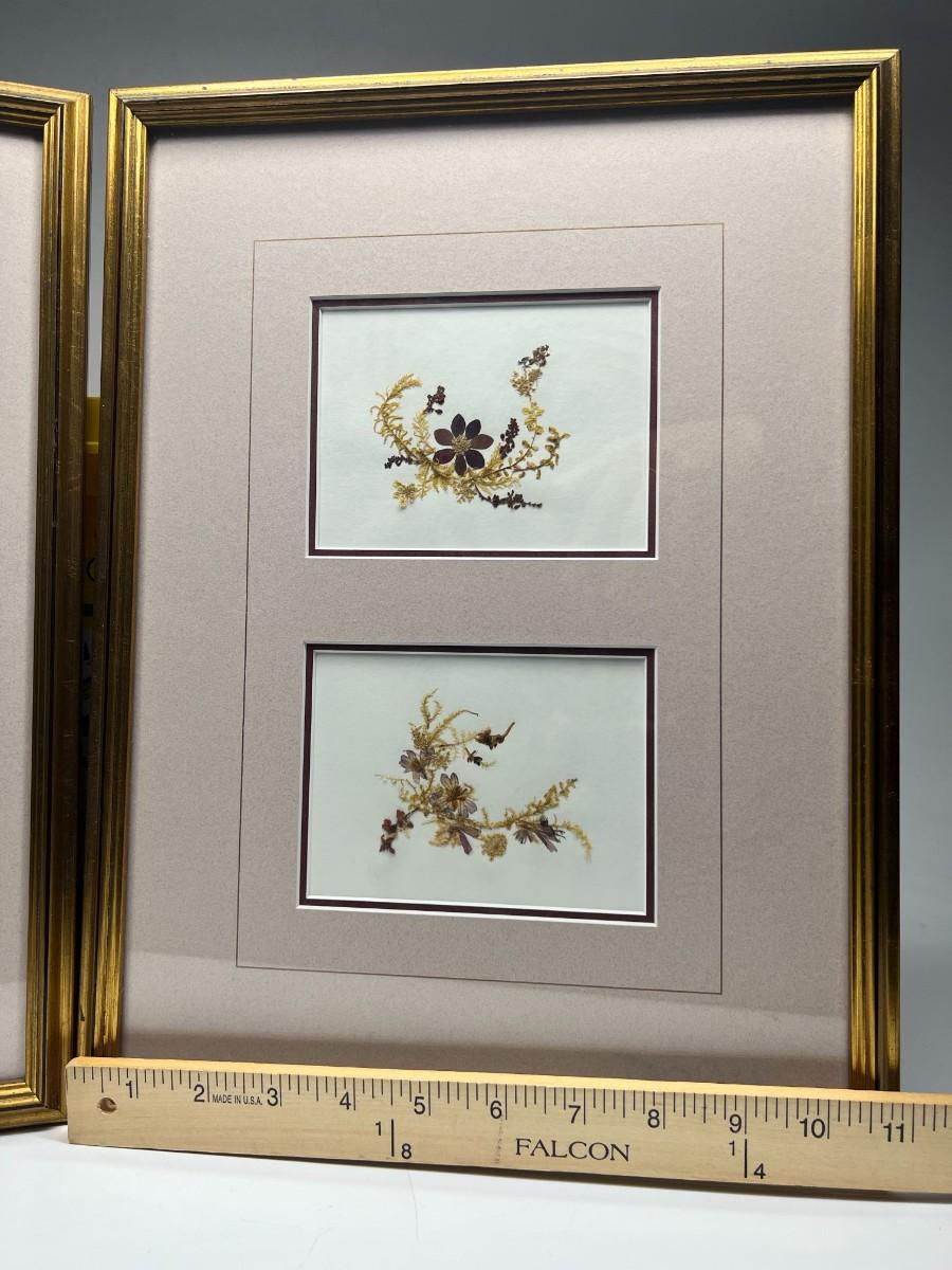 Pair of Retro Framed Real Flower Foliage Cottage Core