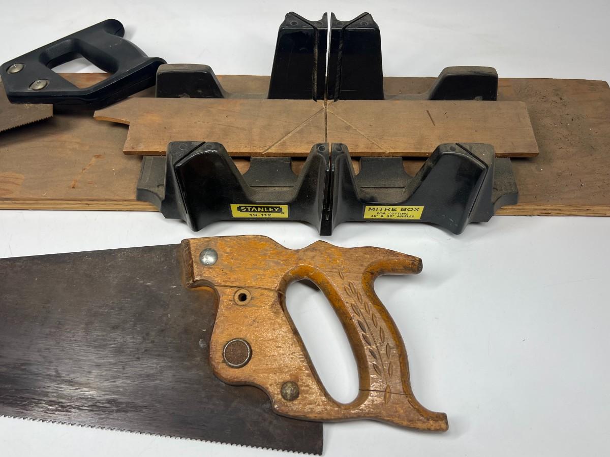 Wood Saw & Stanley Miter Box with Saw. In previously used condition.