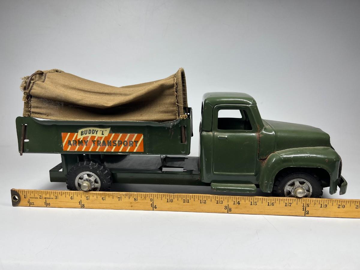 Vintage Buddy L Die Cast Steel Metal Army Military Transport Truck Toy