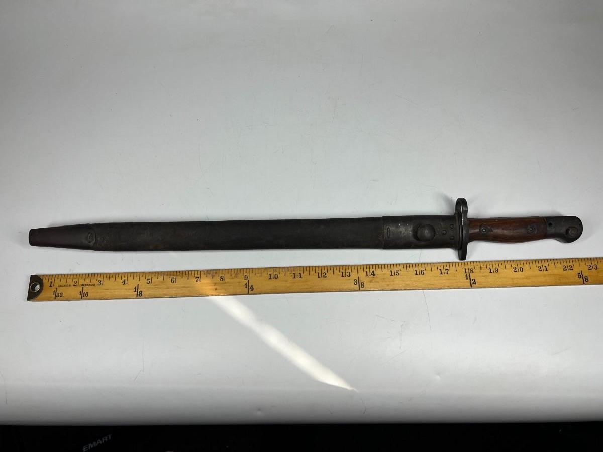 There is some light vintage wear to the bayonet, but there is no significant damage and is in overall good collectible or displayable condition. Check pictures for more details and for sizing.