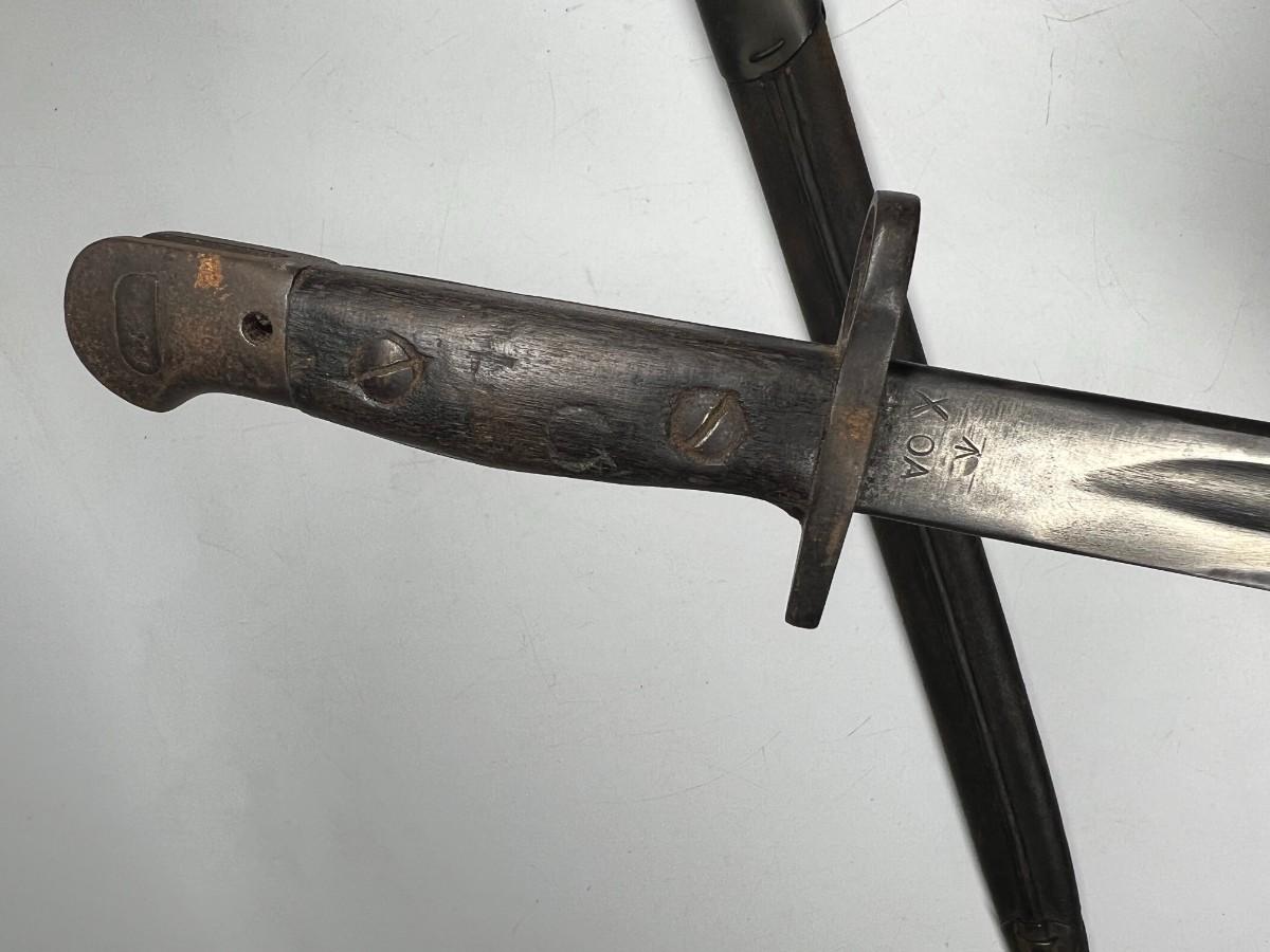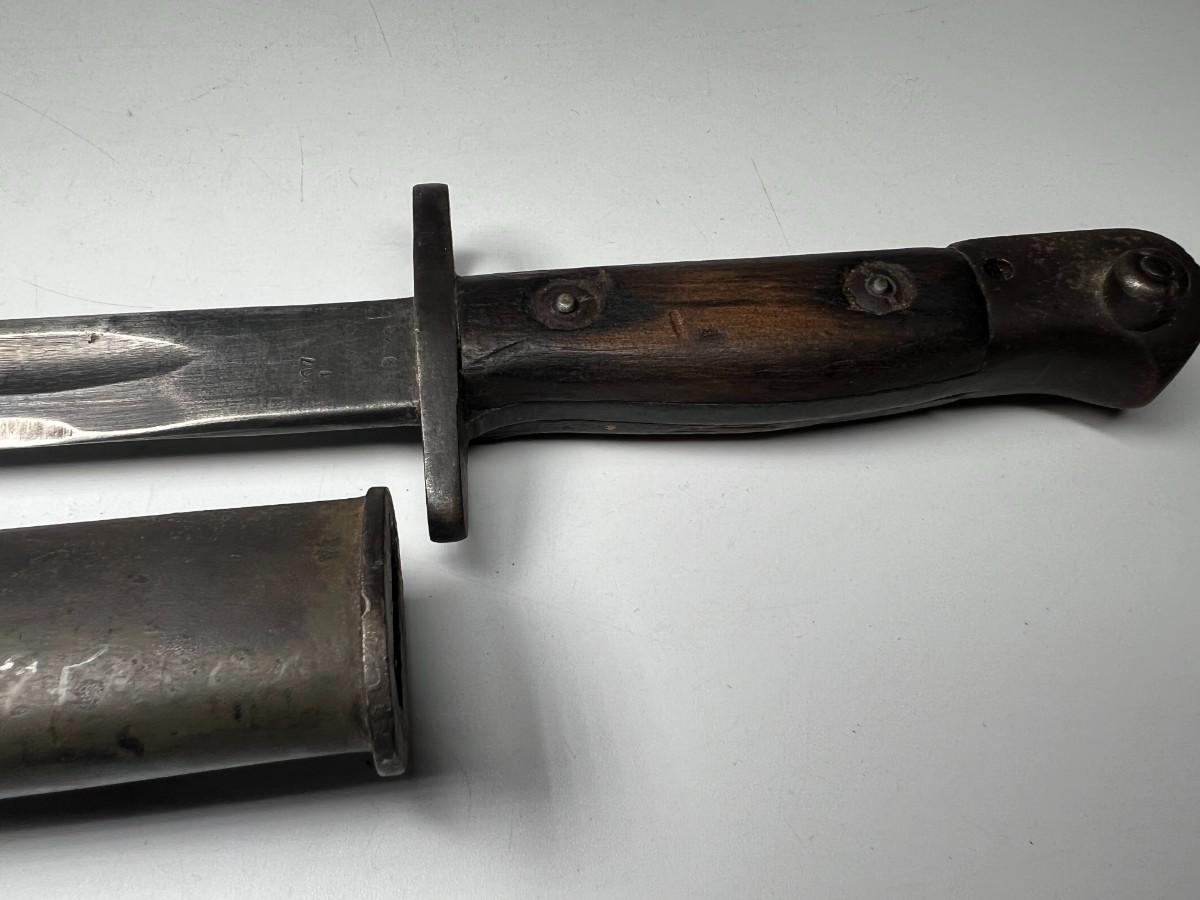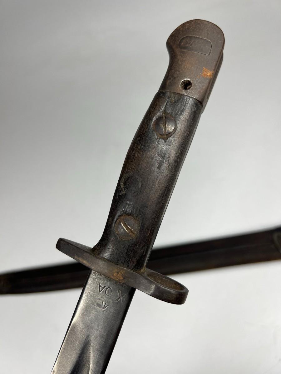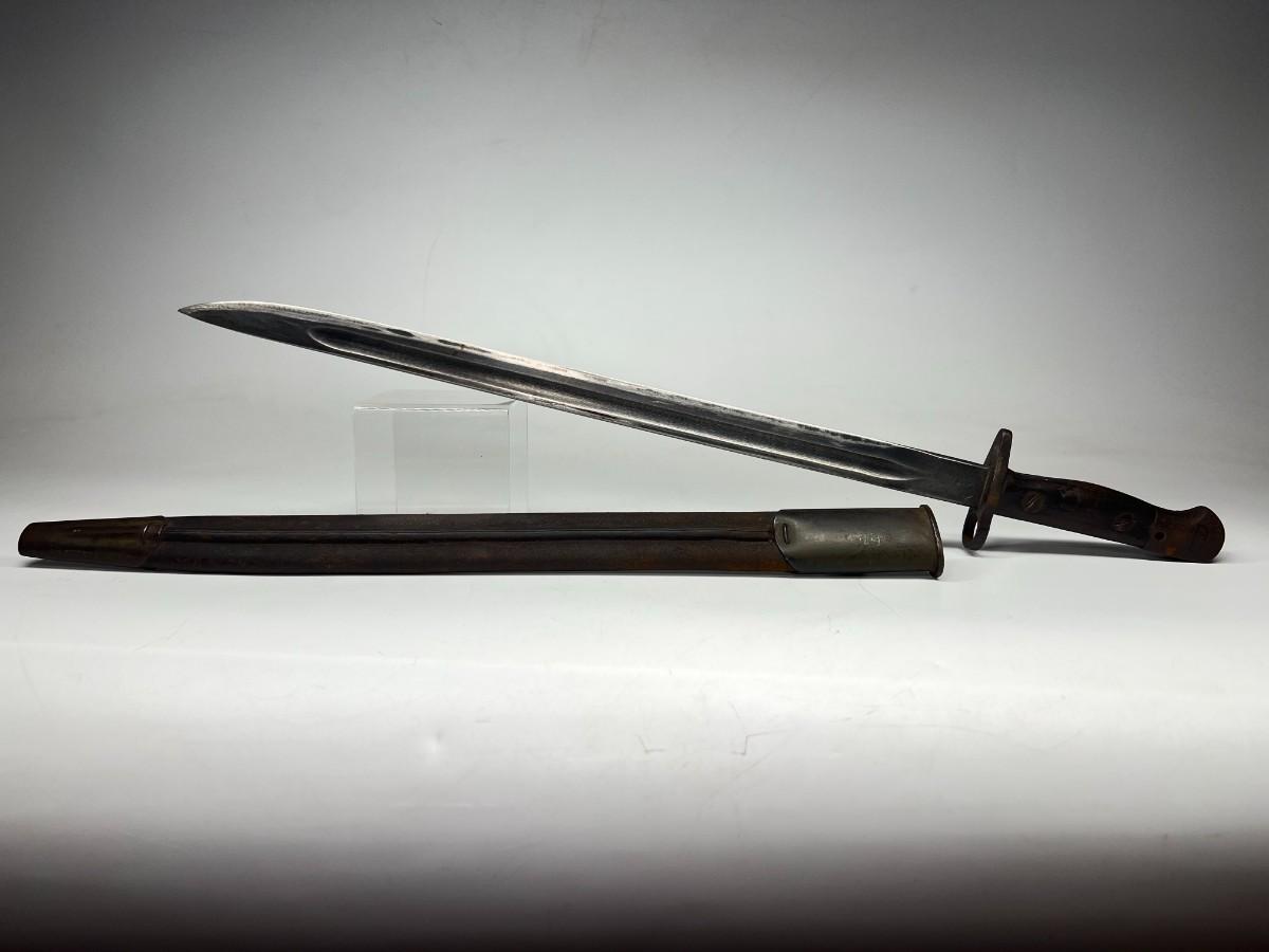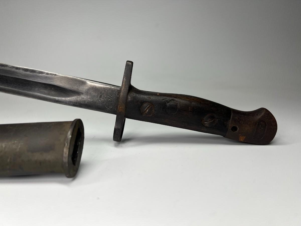 Vintage British Australian Long Military Bayonet Military Memorabilia Stamped XOA Broad Arrow with Sheath