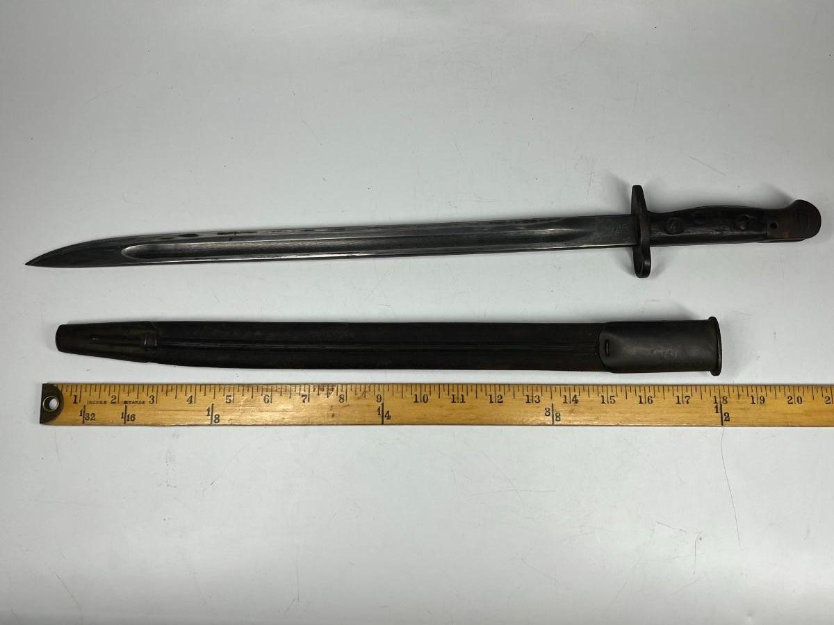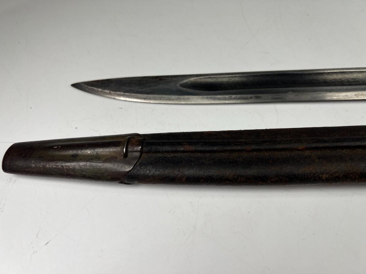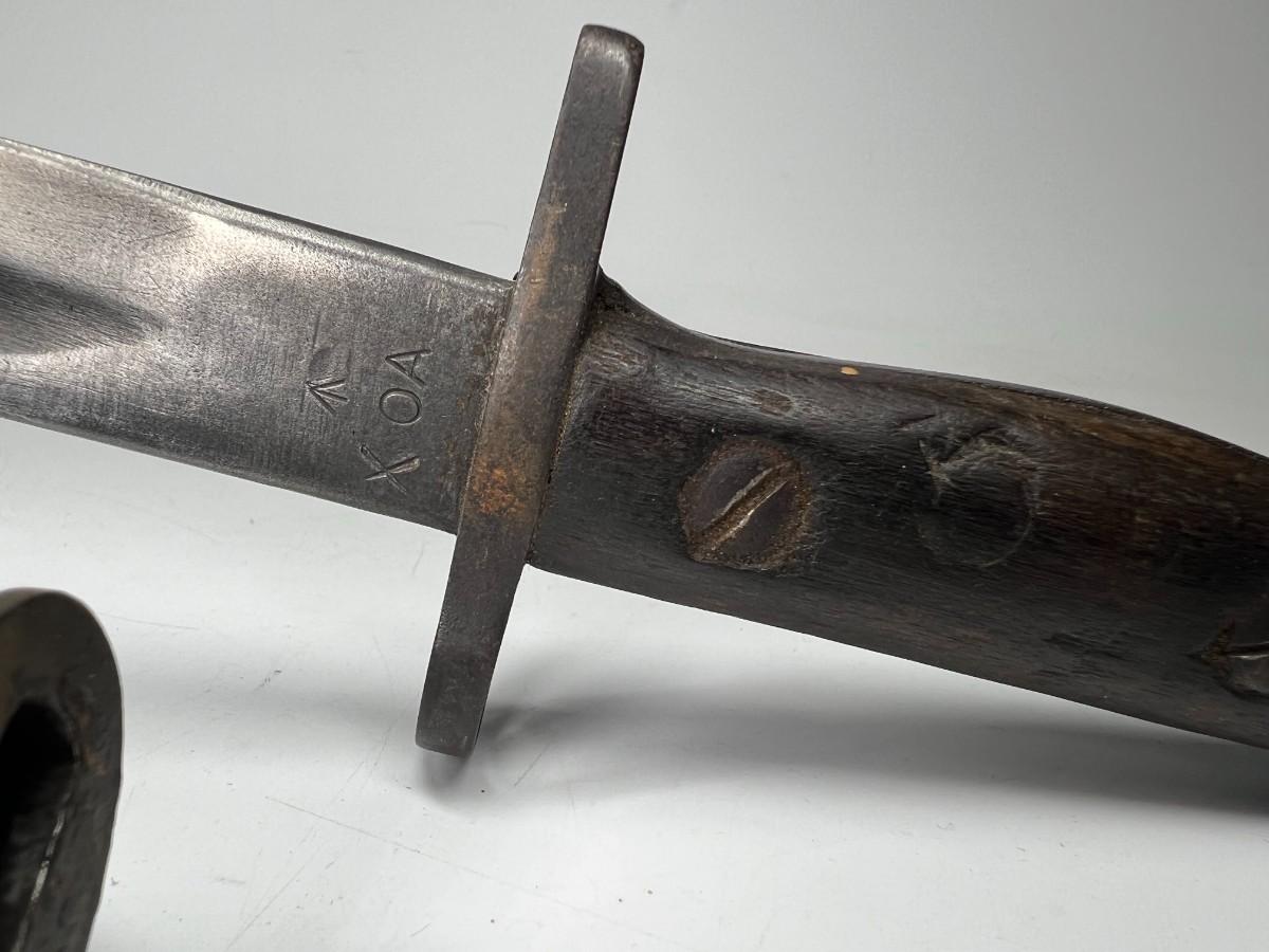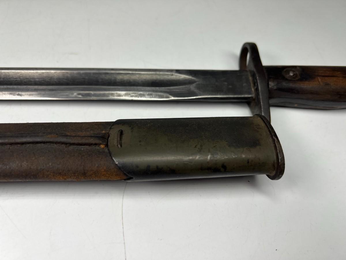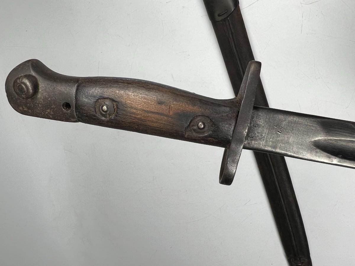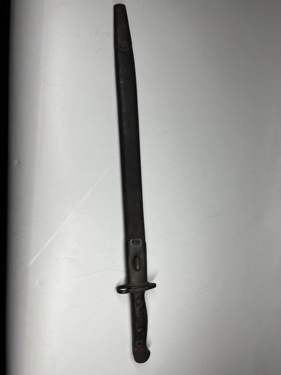 Vintage British Australian Long Military Bayonet Military Memorabilia Stamped XOA Broad Arrow with Sheath