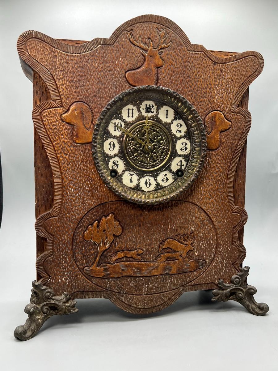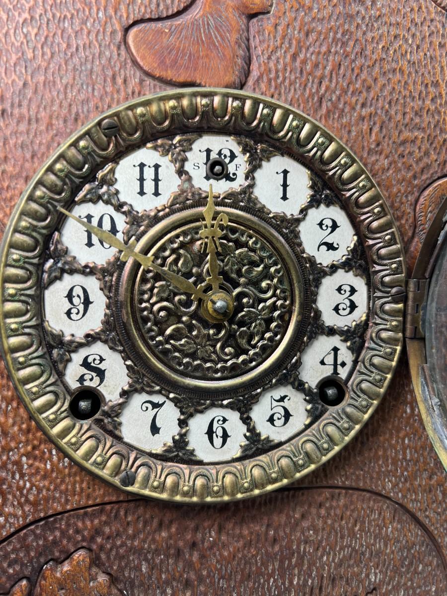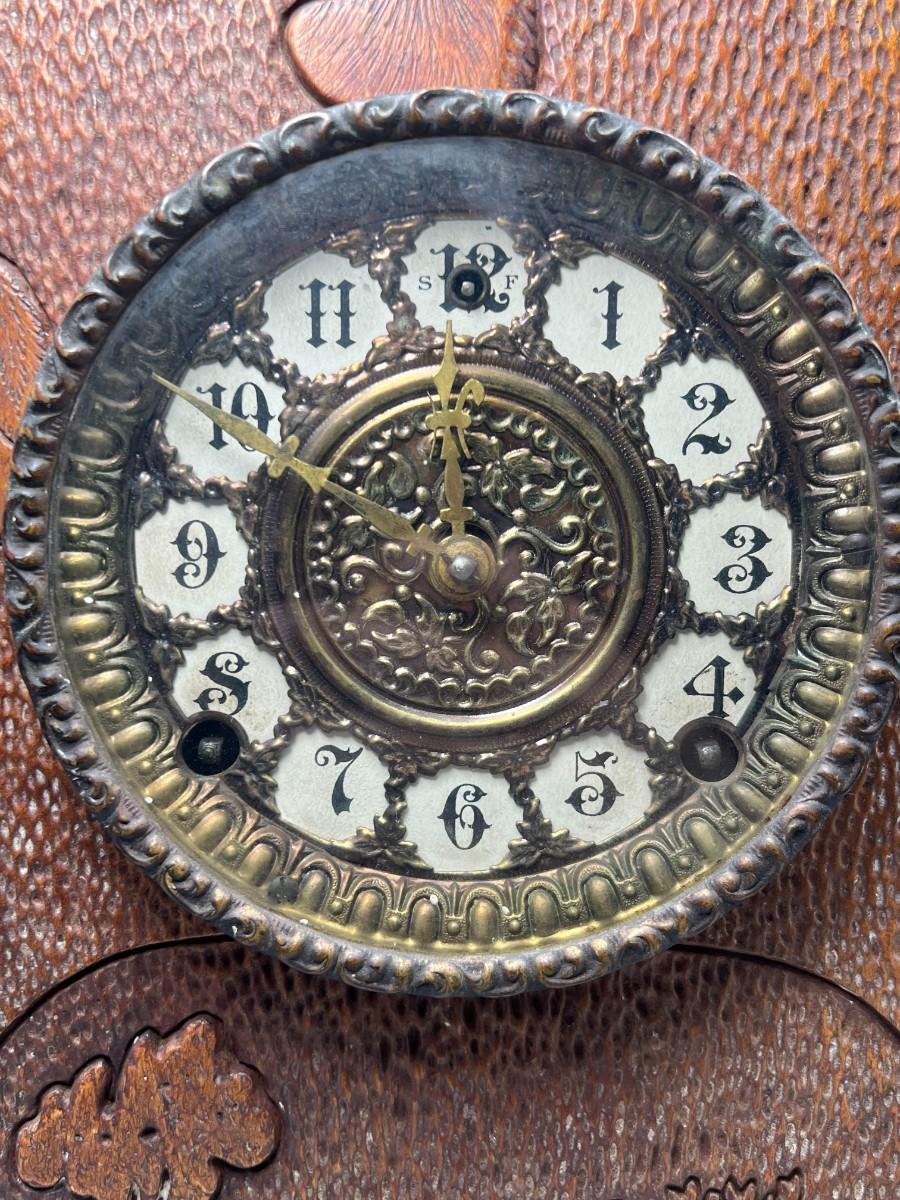 Vintage Carved Wooden Cottagecore French Provisional Cabin Decor Mechanical Mantle Clock with Key