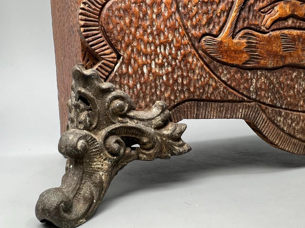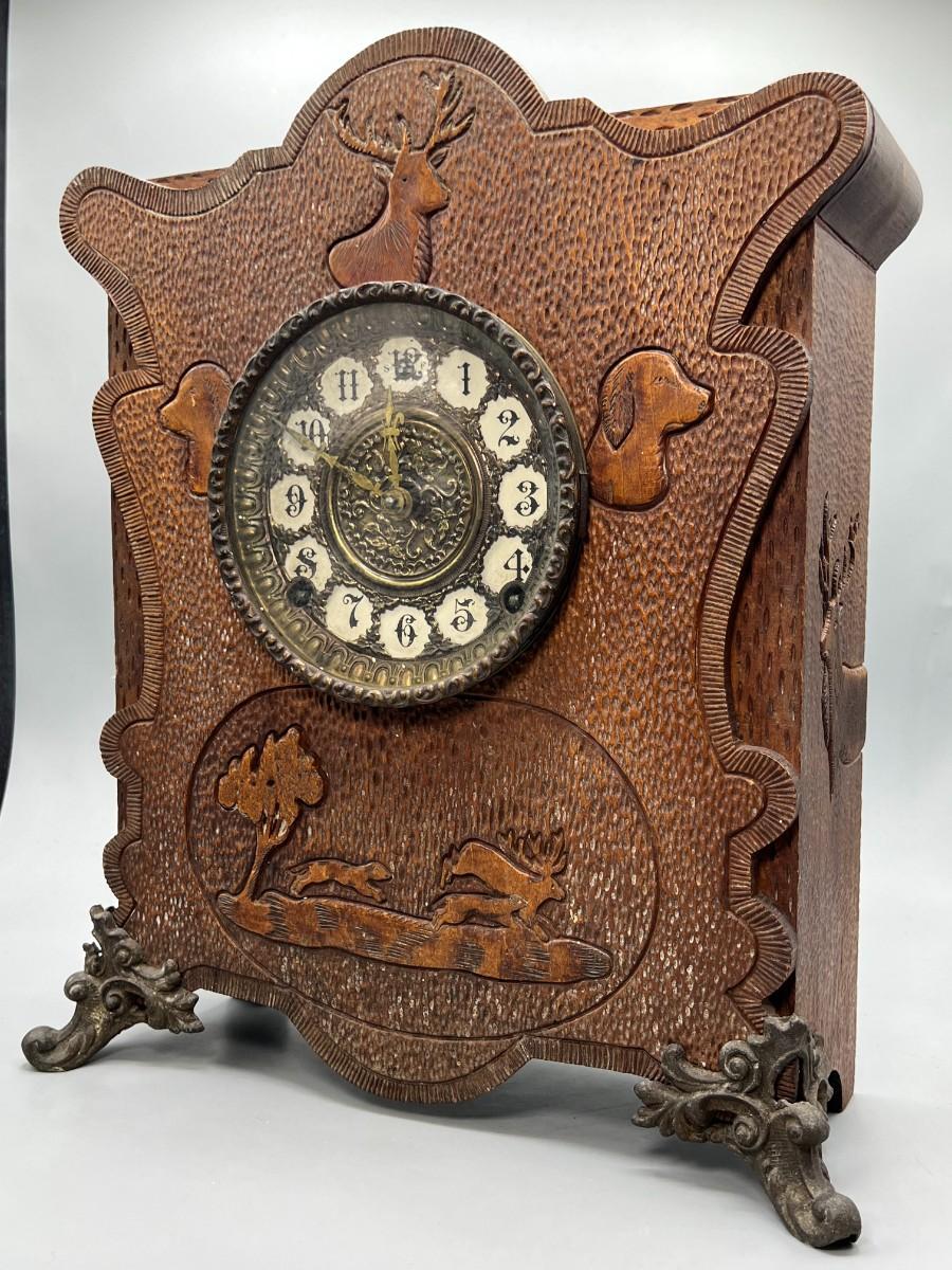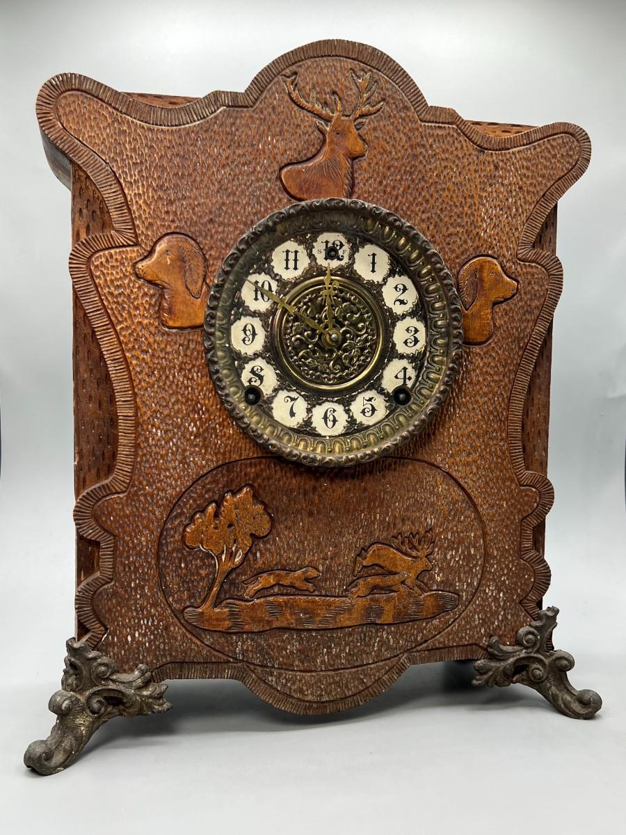 Vintage Carved Wooden Cottagecore French Provisional Cabin Decor Mechanical Mantle Clock with Key
