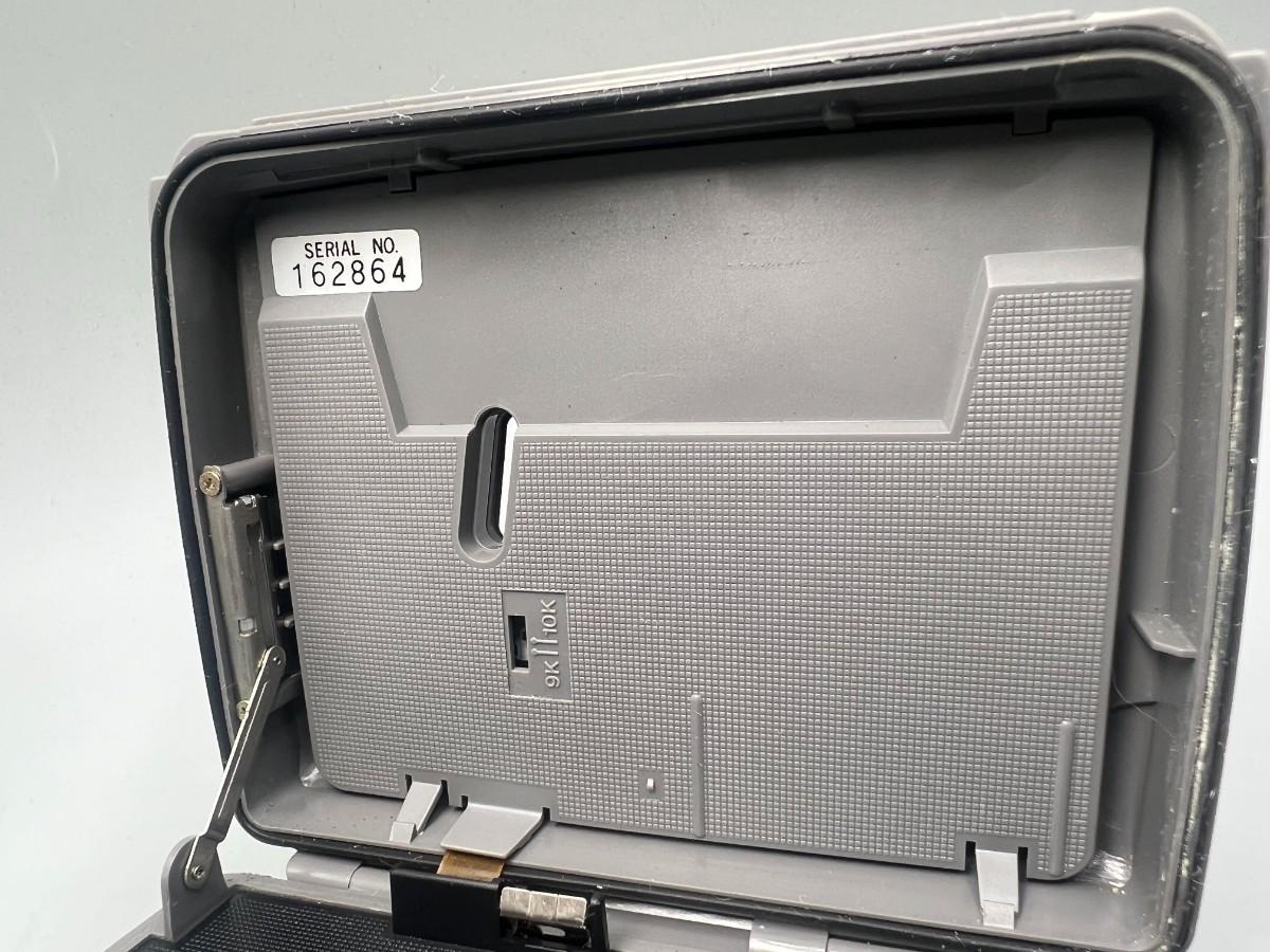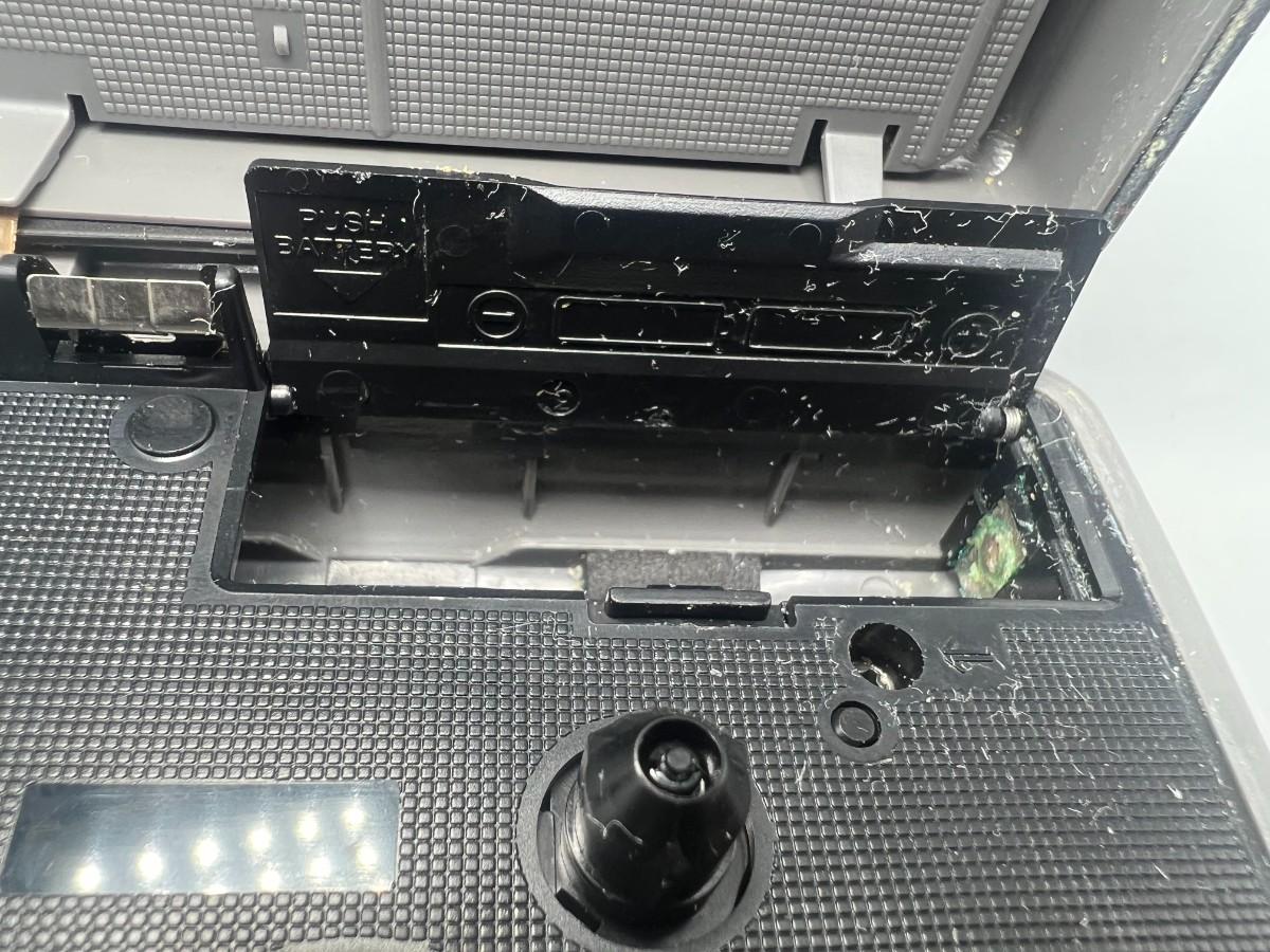 There is retro wear to the cassette player, but there is no significant damage and is in overall fair collectible condition. There is corrosion where the batteries are inserted. When the batteries were taken out the indicator screen turned on then turned off, has not been tested with new batteries.