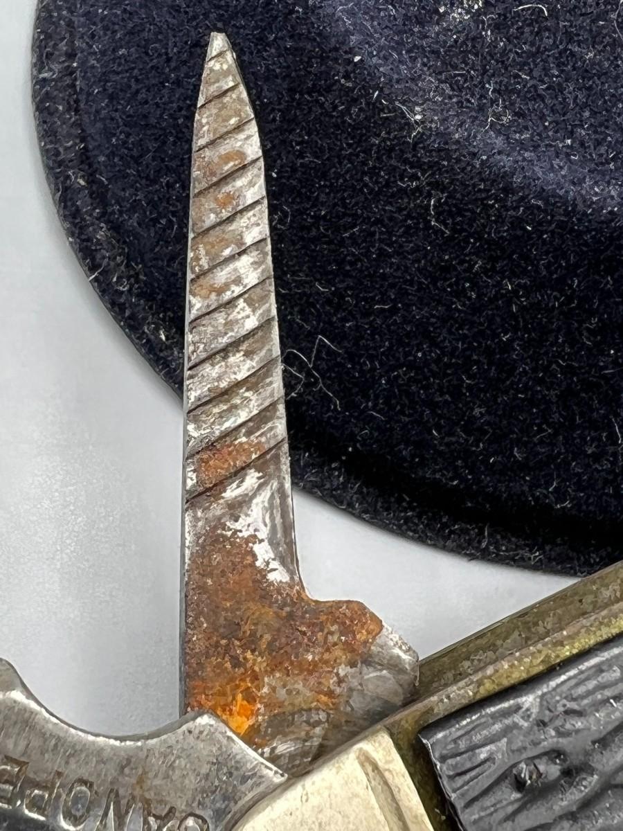 There is noticeable wear to the knife, but there is no significant damage and is in overall good collectible condition. Check pictures for more details and for sizing.