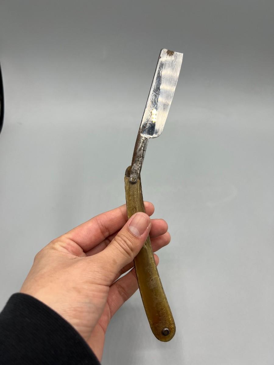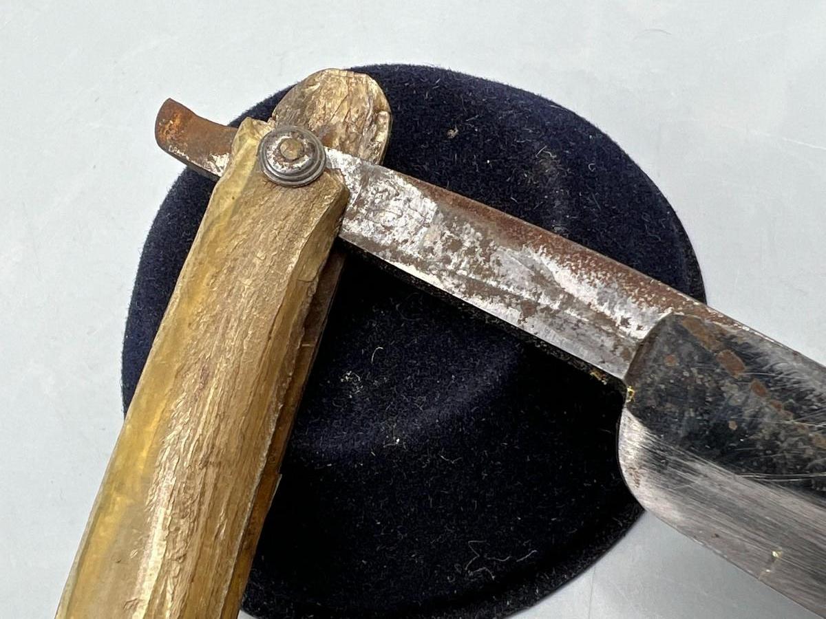 There is vintage wear and use to the razor and handle, but there is no significant damage and is in overall good collectible condition. Check pictures for more details and for sizing.
