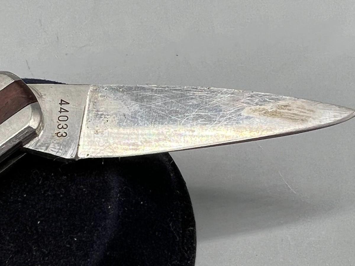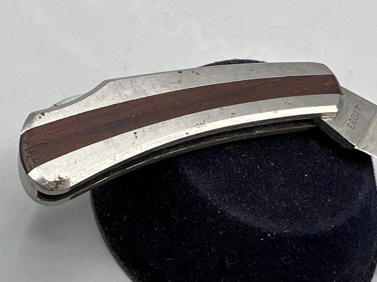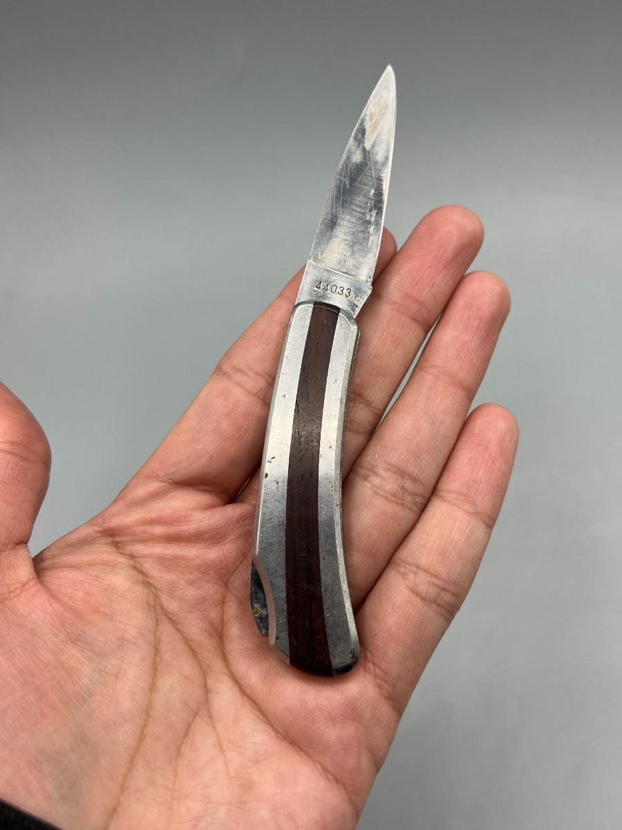 There are signs of wear to the knife, but there is no significant daamage and is in overall good collectible or useable condition. Folds nicley, check pictures for more details and for sizing.