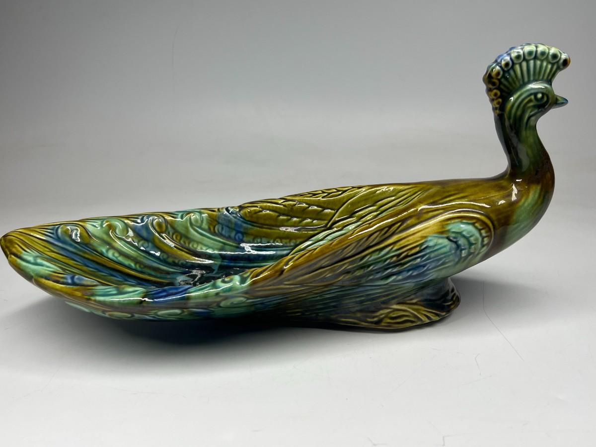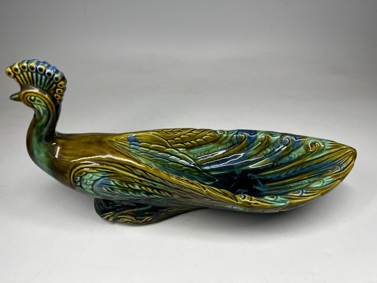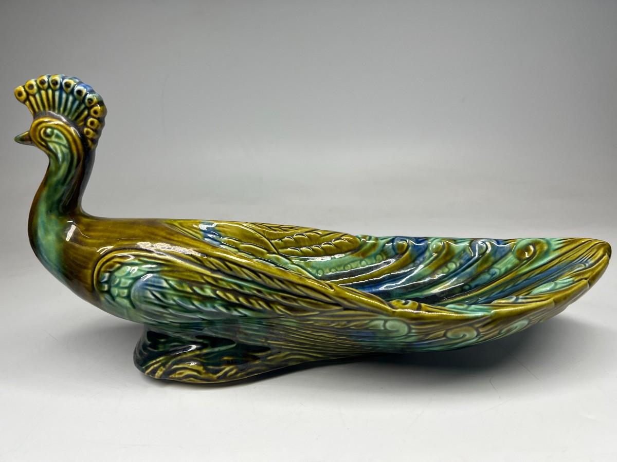 Vintage Ceramic Peacock FIgurine Mid-Century Art Deco Candy Trinket Dish