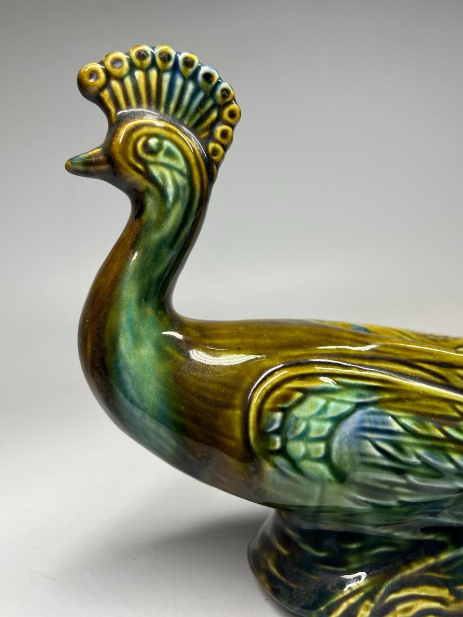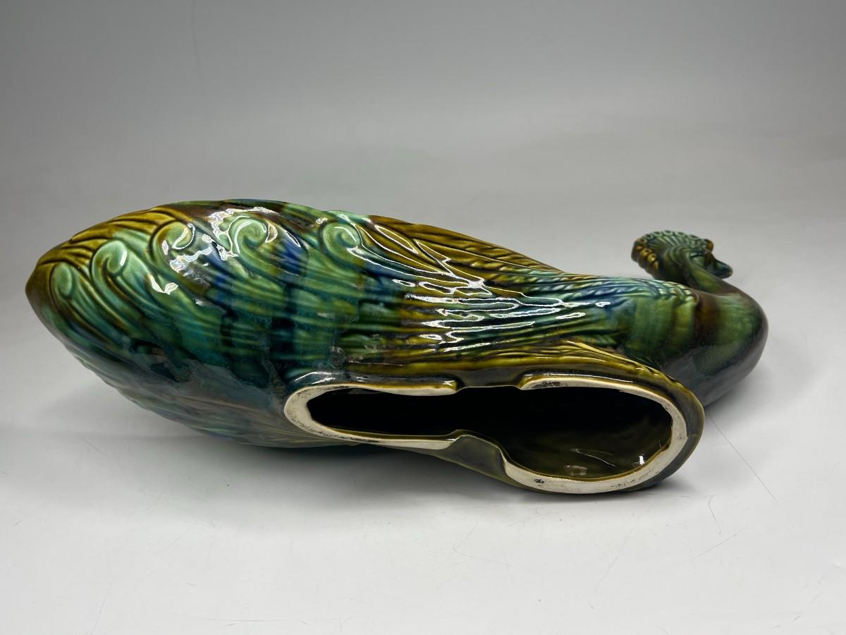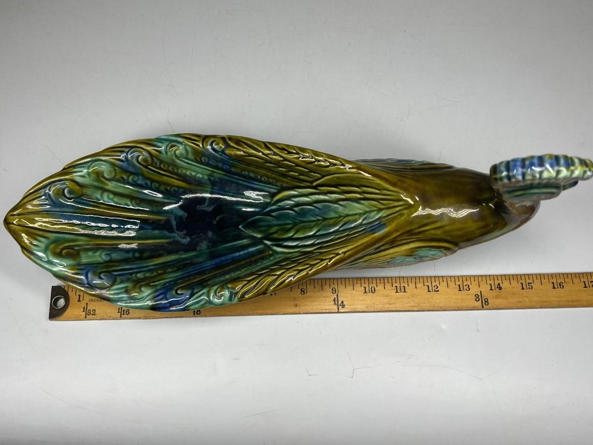 Vintage Ceramic Peacock FIgurine Mid-Century Art Deco Candy Trinket Dish