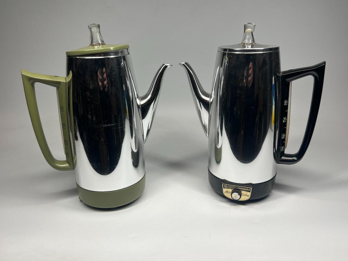 Pair of Vintage Vintage GE General Electric Immersible Coffee Percolators Black & Green