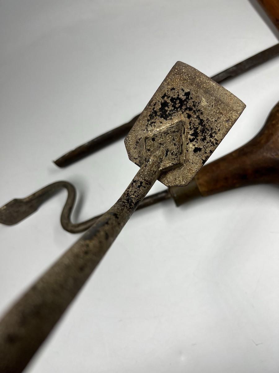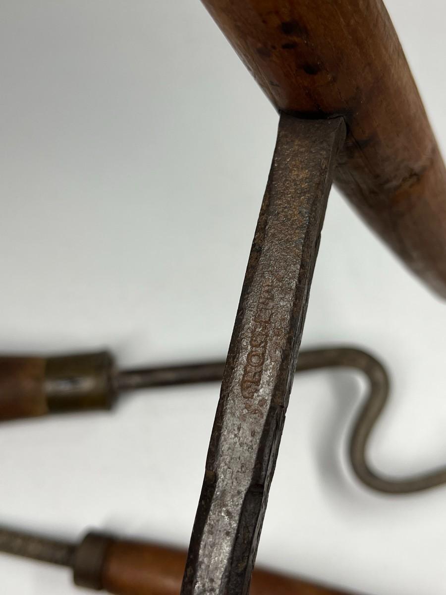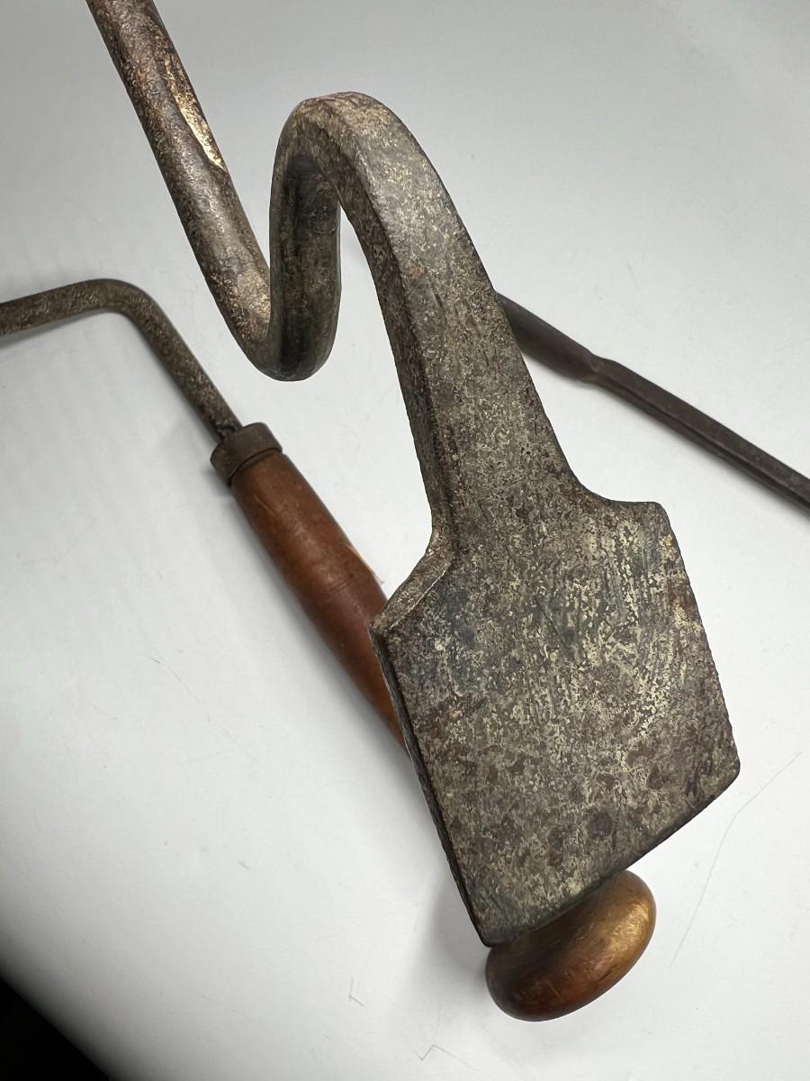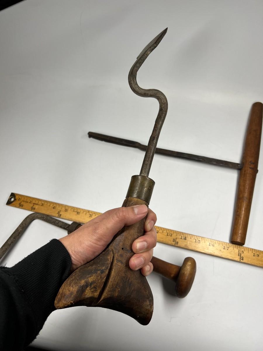 There is antique wear to all of the tools, there is also cracking to some of the wooden handles. Check pictures for more details and for sizing.