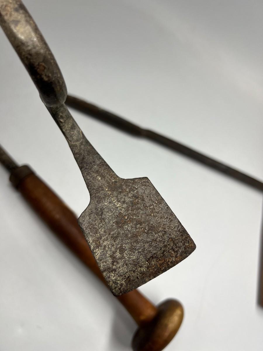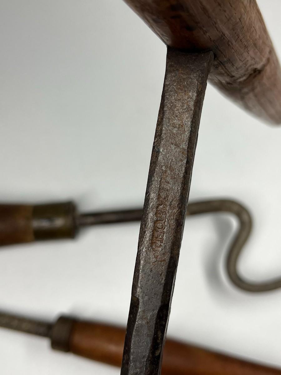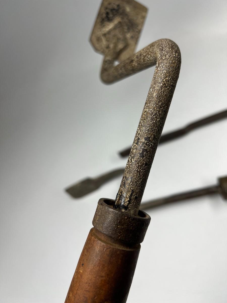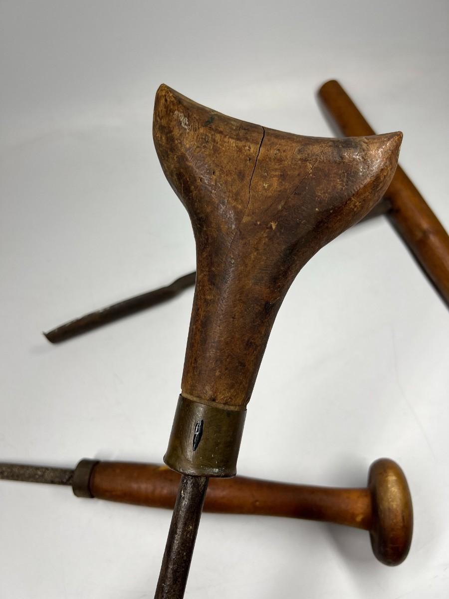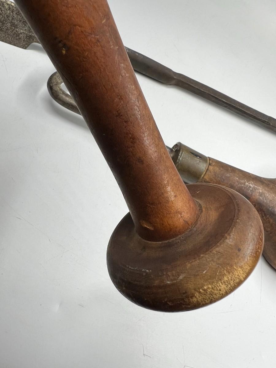 There is antique wear to all of the tools, there is also cracking to some of the wooden handles. Check pictures for more details and for sizing.