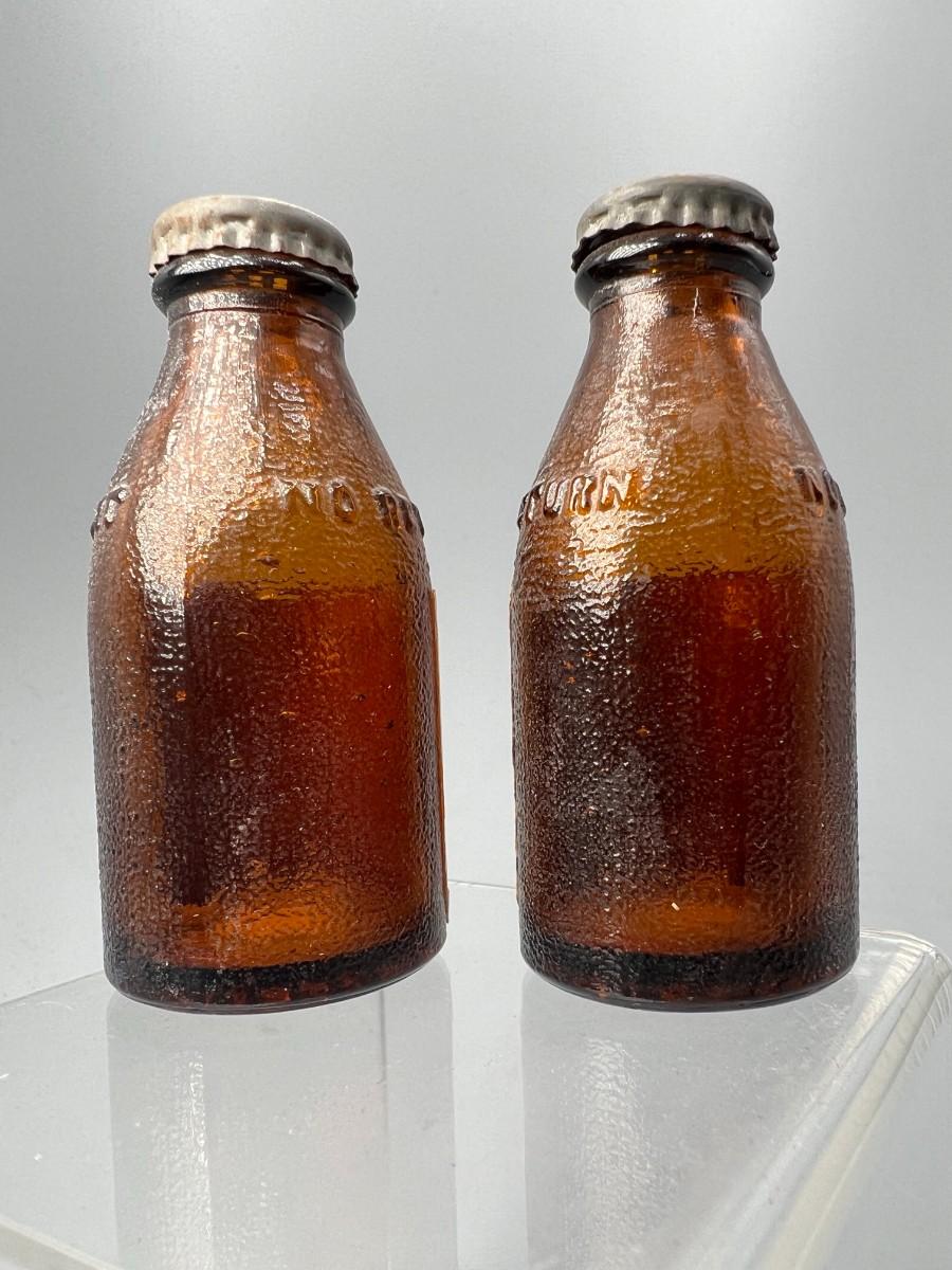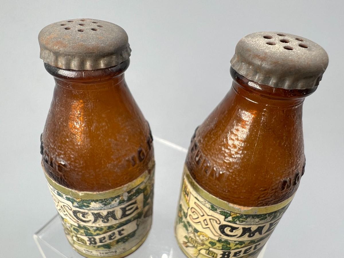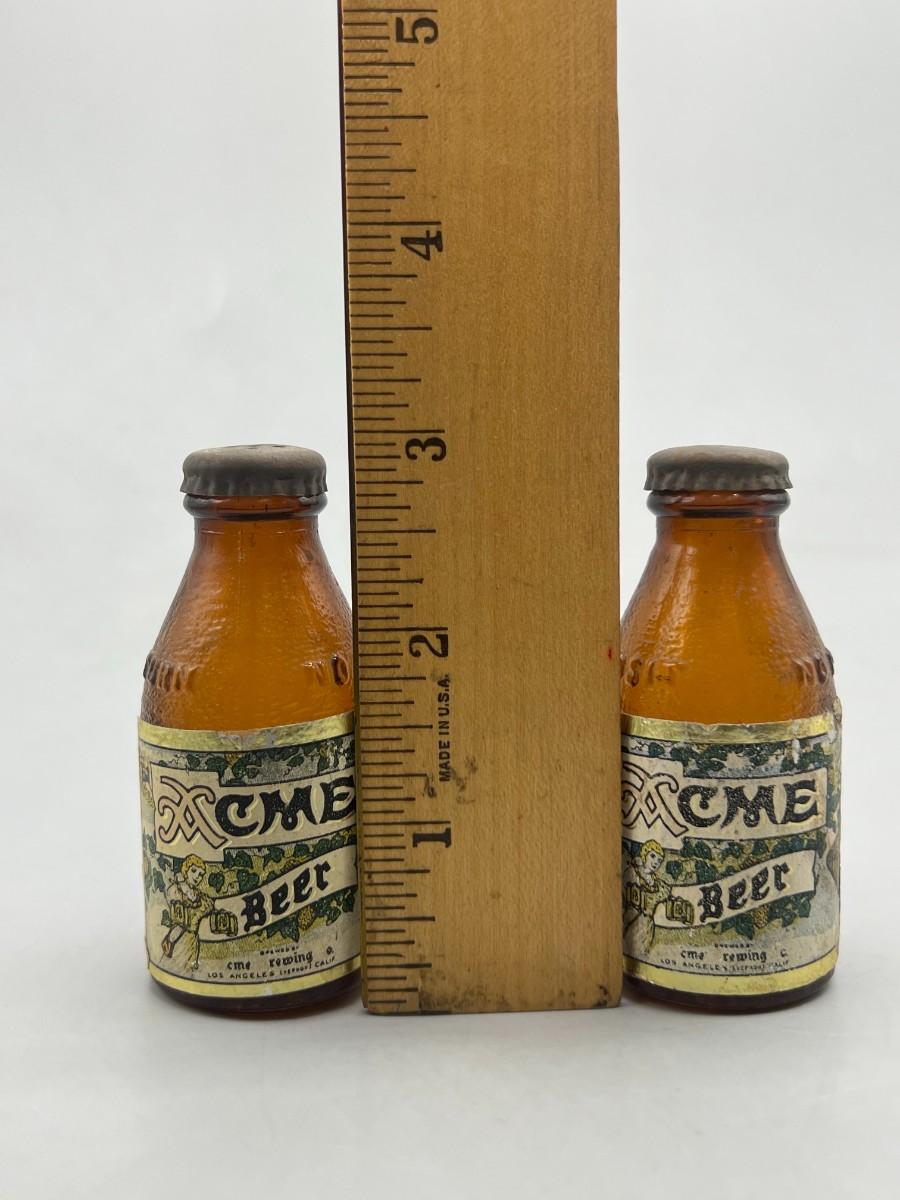 Vintage Novelty Acme Miniature Glass Beer Bottles Salt & Pepper Shakers