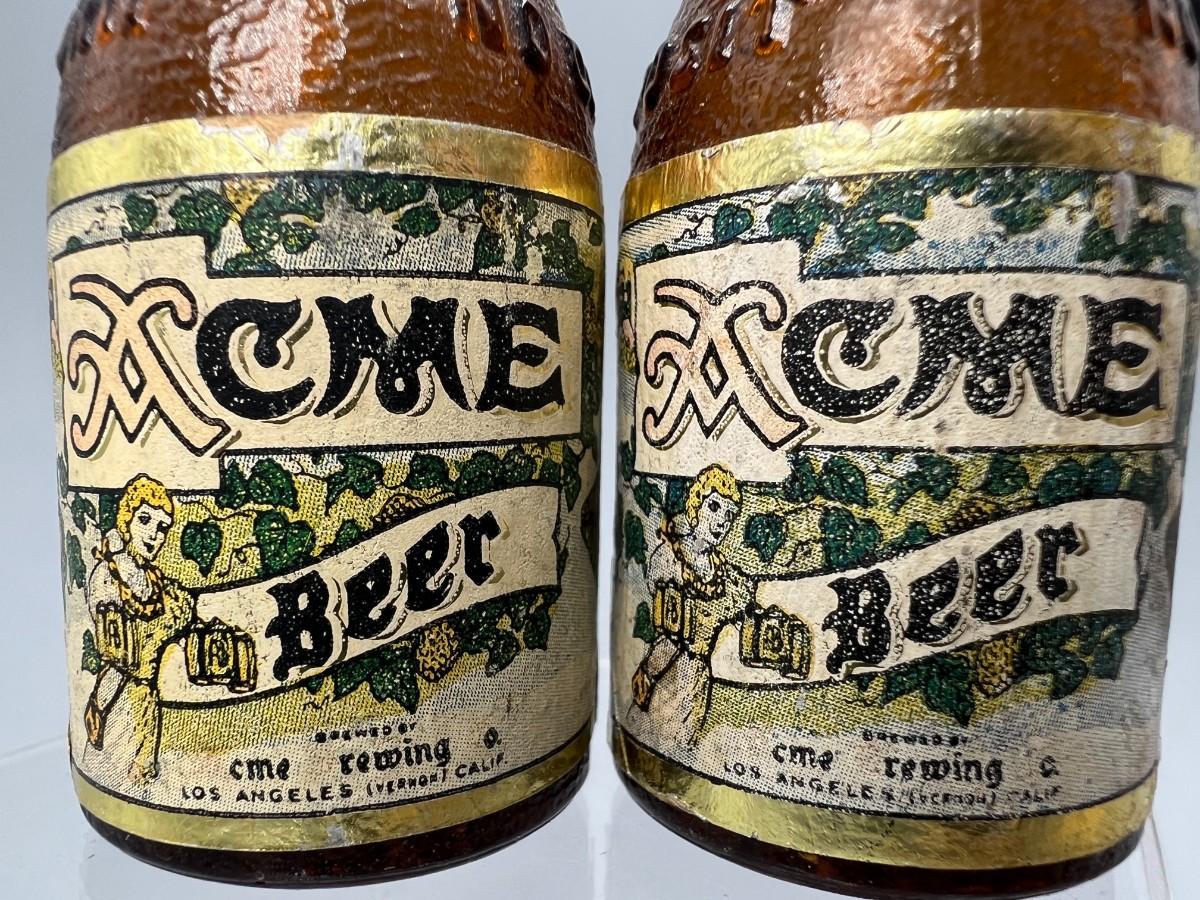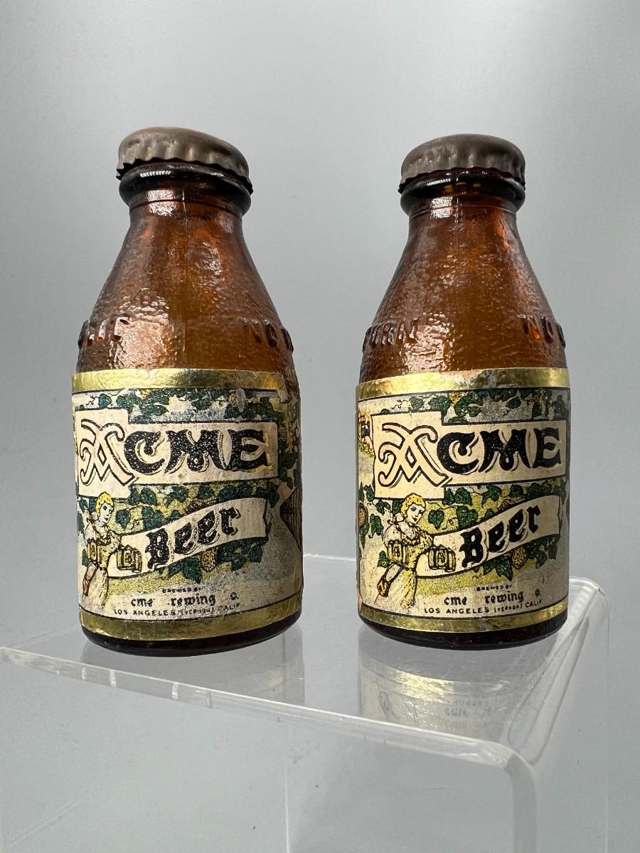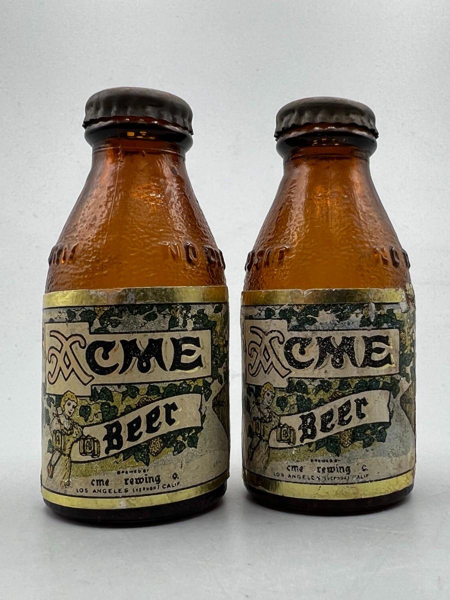 Vintage Novelty Acme Miniature Glass Beer Bottles Salt & Pepper Shakers