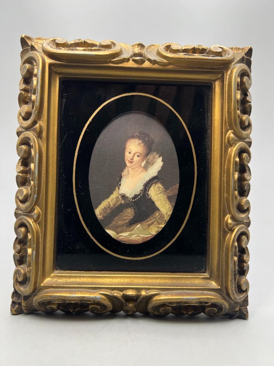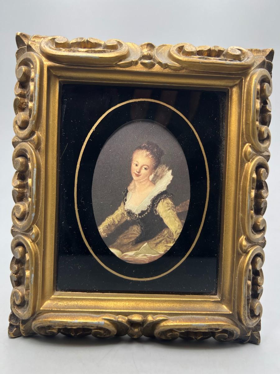 Vintage Framed Victorian Art Print Art Deco Frame The Study by Jean Honore