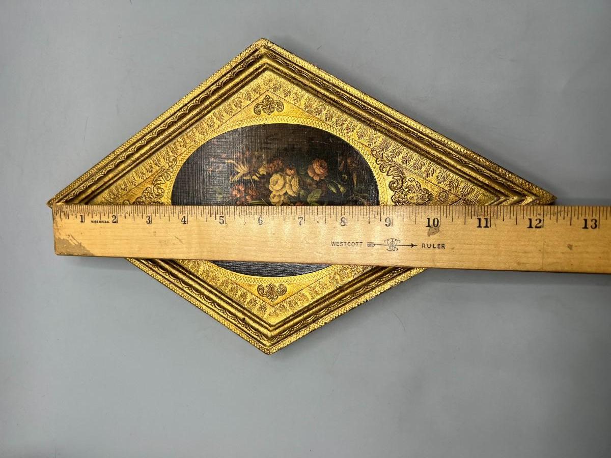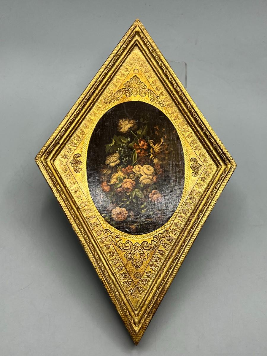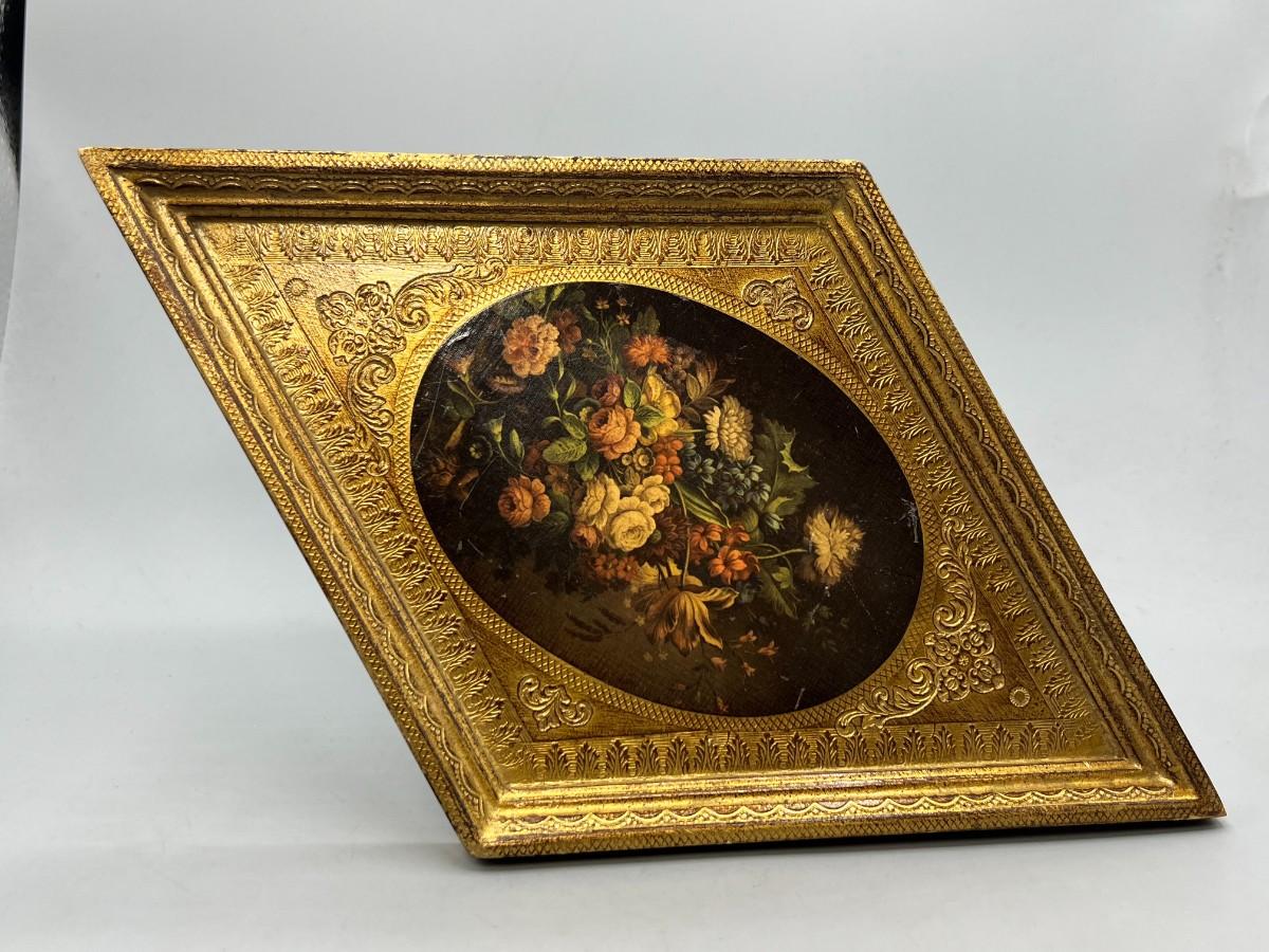 Vintage Gold Gilded Flemish School Flowers G.B. Florence Made in Italy Diamond Framed Artwork